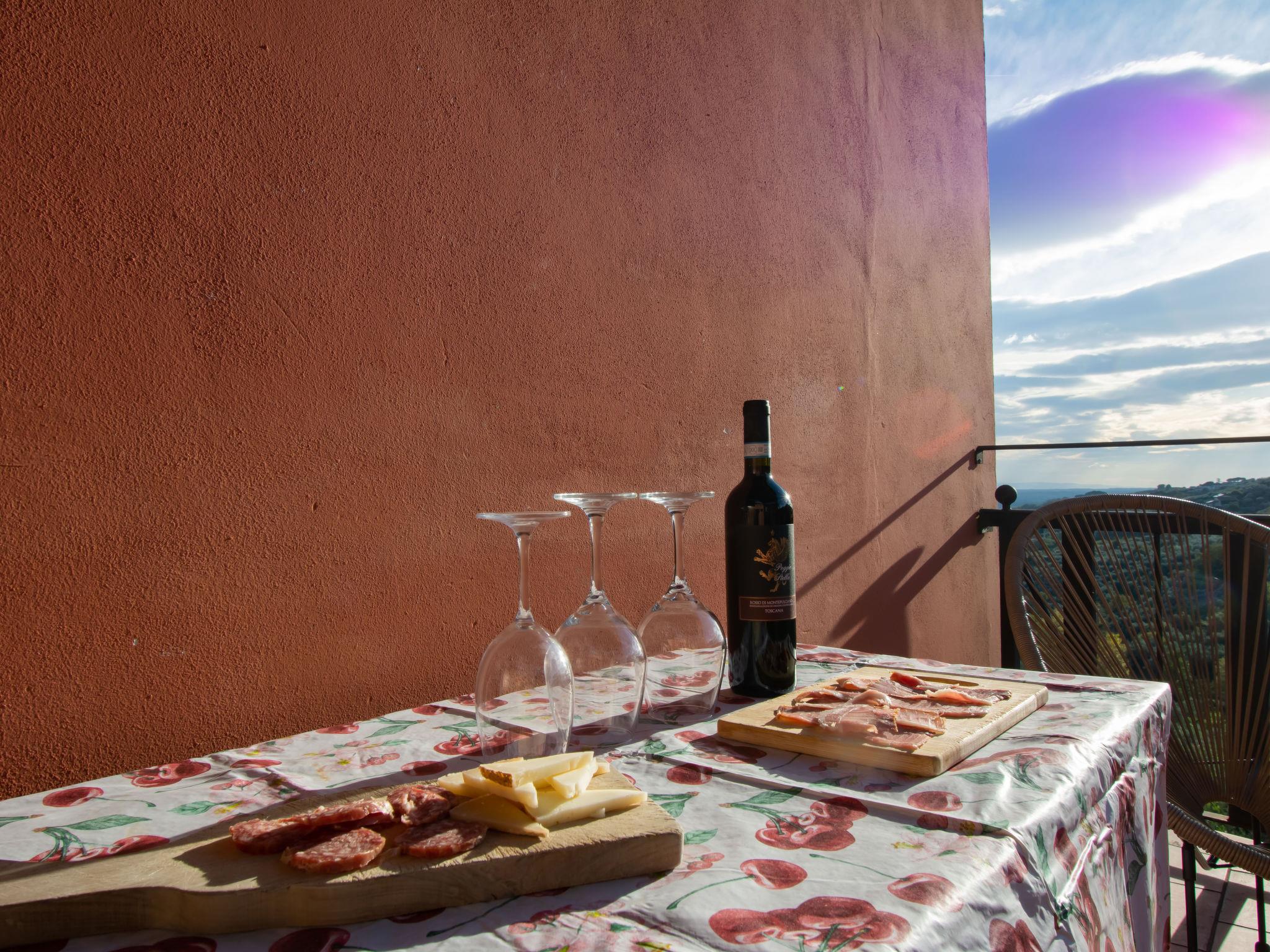 6-room house 110 m2, on the ground floor. Rustic and wooden furniture furnishings: open living room with satellite TV and hi-fi system. 1 room with 1 french bed (160 cm), shower/WC, electric heating and air conditioning. Exit to the garden. 1 room with 1 bed (80 cm). 1 room with 1 french bed (160 cm), electric heating and air conditioning. Open kitchen (oven, dishwasher, 4 gas rings, toaster, kettle, microwave, freezer, electric coffee machine) with dining table, open-hearth fireplace. 2 showers/WC. Upper floor: (exterior staircase), 1 room with 1 french bed (160 cm), electric heating and air conditioning. 1 room with 2 beds (80 cm). 1 room with 1 bed (80 cm). Kitchen-/living room (4 gas rings, freezer) with small dining table, satellite TV. Exit to the terrace. Shower/WC, double hand-basin. Gas heating. Terrace 20 m2, terrace 8 m2. Terrace furniture, barbecue, deck chairs. Beautiful view of the countryside. Facilities: washing machine, iron, children's high chair, baby cot for up to 2 year olds. Internet (WiFi, free). Parking (fenced 3 cars) at the house. Please note: non-smoking house. Maximum 2 pets/ dogs allowed. Smoke alarm, fire extinguisher. No internal connecting door between the separated properties. IT047011C2QDFZ6G4Z
