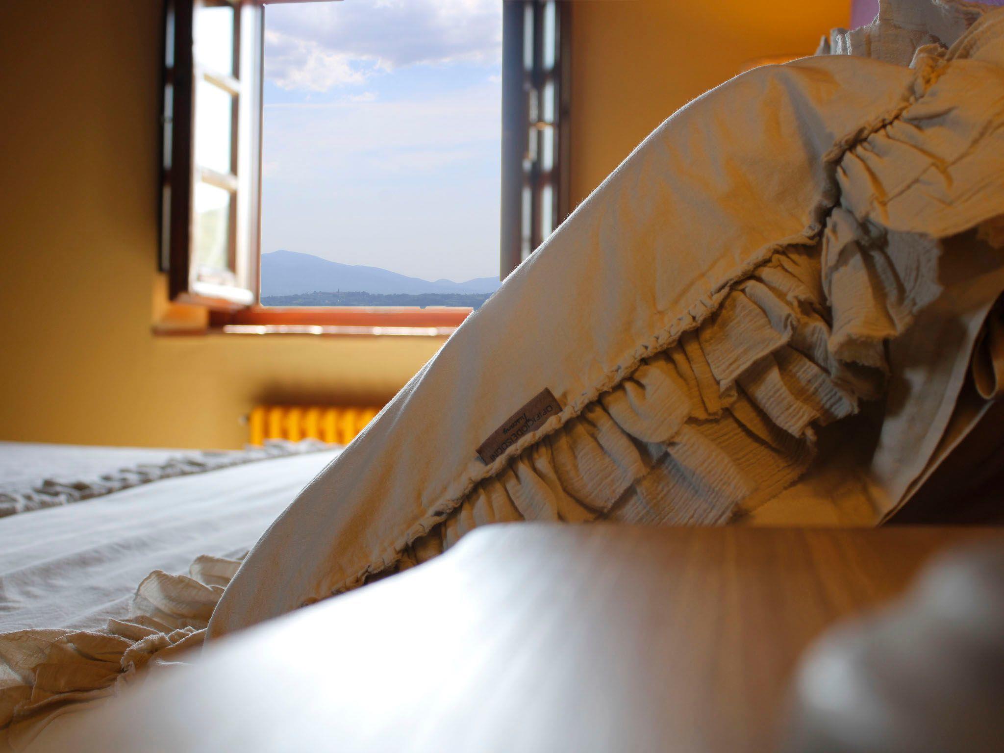 On the ground floor of the main building there’s a large open space with several rooms including a large living room with beamed ceiling, the dining area, an original stone fireplace, a room with a sofa bed for two people and a kitchen fully equipped. All rooms overlook the garden where a magnificent gazebo will welcome you to dine outdoors. On the ground floor there’s the first bathroom and the laundry room. Casa Loretta uses exclusive linen with the refined atmospheres of @opificodeisogni. On the first floor there are 4 bedrooms and 3 bathrooms: 1 bedroom with double bed and private bathroom with whirlpool tub, double sink and shower; 2 double bedrooms and 2 private bathrooms and 1 bedroom with two single beds that can be transformed into a sitting room. CASA LORETTA has windows with mosquitos nets and has a very reliable wifi connection.