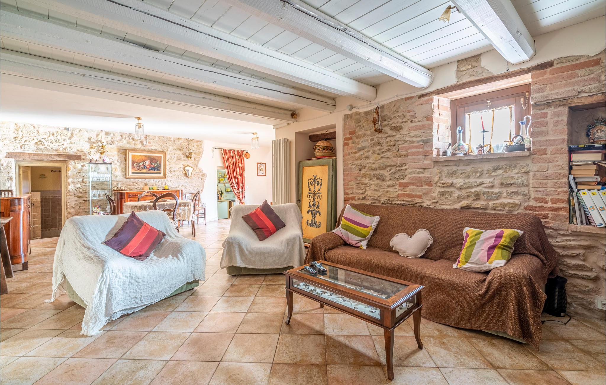 Här kan du koppla av i ett bra läge omgiven av vacker natur. De rustika, mysiga rummen och den attraktiva inredningen med medelhavsfärger gör huset till den perfekta platsen för en avkopplande semester med hela familjen. Exponerade tegelstenar och dekorativa träbjälkar ger semesterhuset sin rustika charm. Efter en härlig semesterdag kan du slå dig ner i sofforna i vardagsrummet, titta på en film tillsammans eller prata långt in på kvällen.