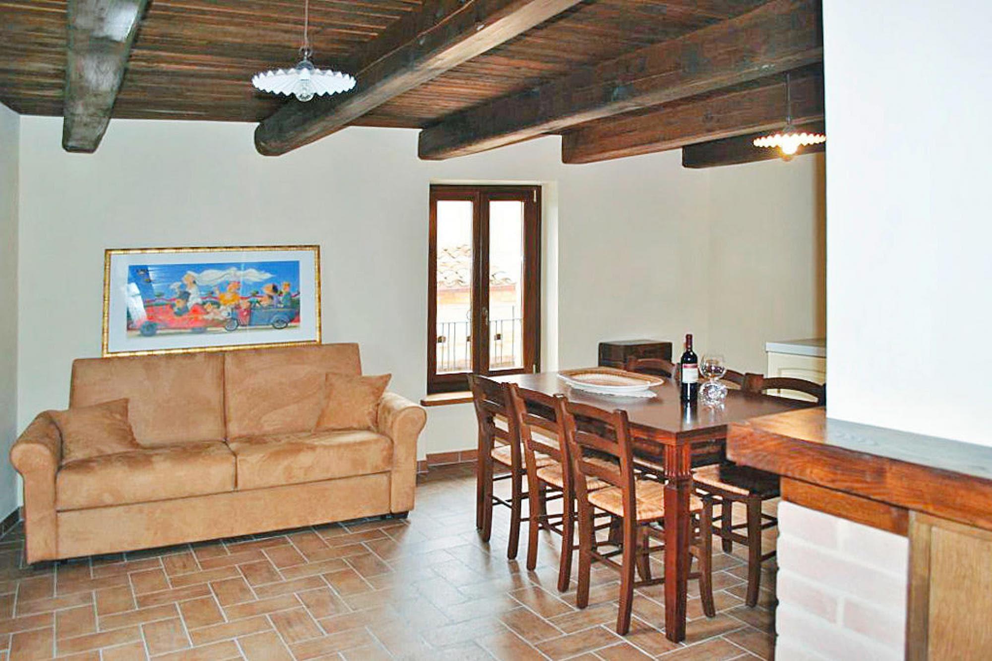 Detta lilla, familjeägda pensionat ligger i nationalparken Monti Sibillini i Collina. Det ligger på en höjd av cirka 750 meter och erbjuder underbar panoramautsikt över landskapet. Lägenheterna har varsamt renoverats i regionens traditionella arkitektoniska stil och är utspridda över huvudbyggnaden i den lilla medeltida byn. Den fantastiska utsikten över skogen, poolens och poolterrassens idealiska läge och de mysiga lägenheterna med egna privata trädgårdar skapar omedelbart en avkopplande och semesterliknande atmosfär. Fördjupa dig i landsbygden, dess människor och dess traditioner genom att besöka det lilla museet på plats med jordbruksföremål. Ditt boende erbjuder: 3 byggnader, 5 lägenheter, reception, Wi-Fi i receptionen, Wi-Fi i poolområdet, gemensam terrass, grillplats. Ytterligare avgifter: vinprovning, matlagningskurser 35 EUR per person. Aktiviteter: Gemensam utomhuspool på 36 kvadratmeter (öppen från början av juni till slutet av september), bubbelpool, utomhusdusch, solarium, solstolar och parasoller. För barn: spelrum i den gemensamma loungen. Mot en avgift: barnpassning/barnomsorg. Höjdpunkter: Wi-Fi. Närliggande aktiviteter: Officiella vandringsleder: 5 km Infernaccio, 12 km Monte Monaco och Lago Pilato. Rörlighet: Ej lämplig för personer med nedsatt rörlighet.