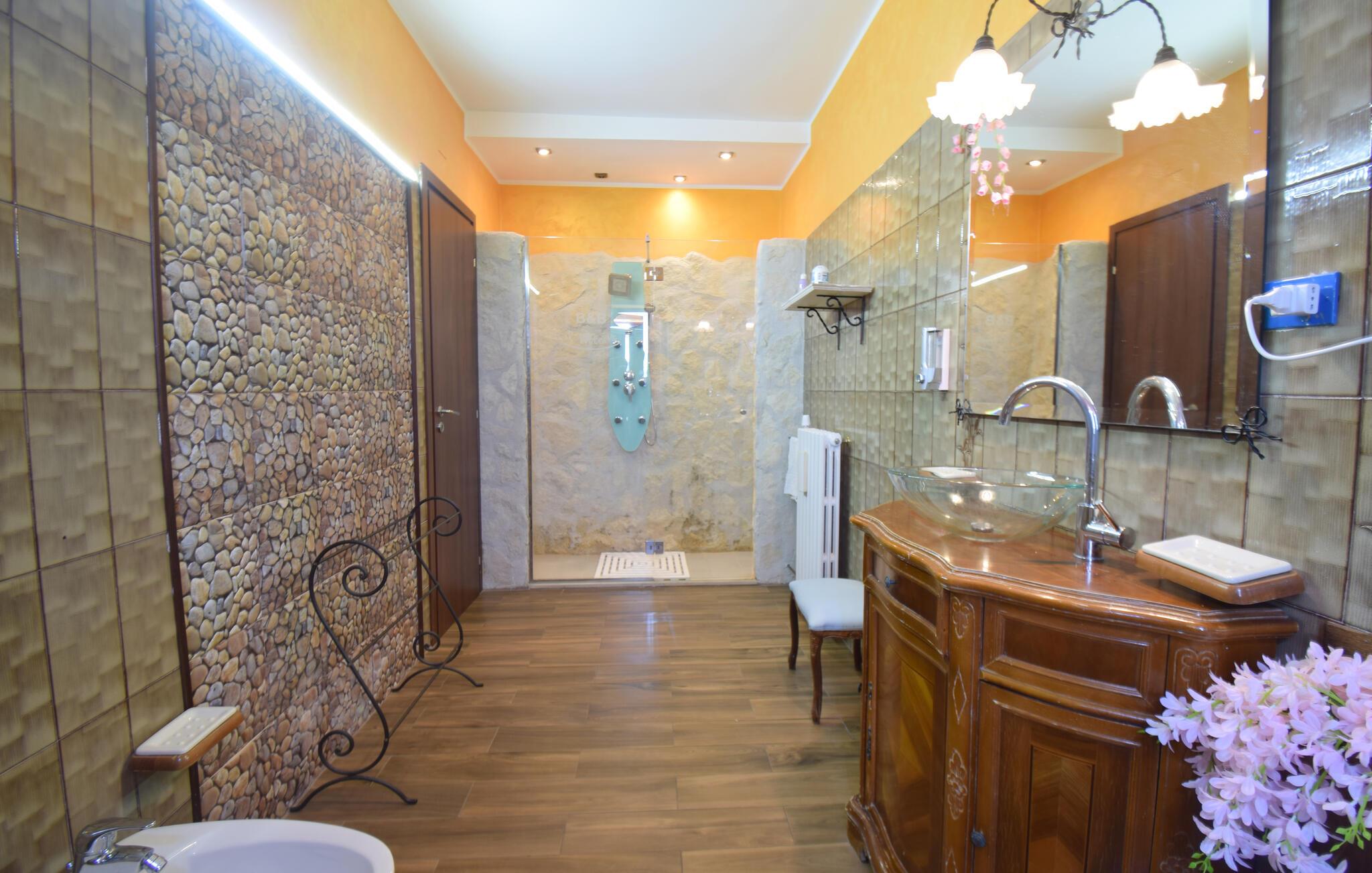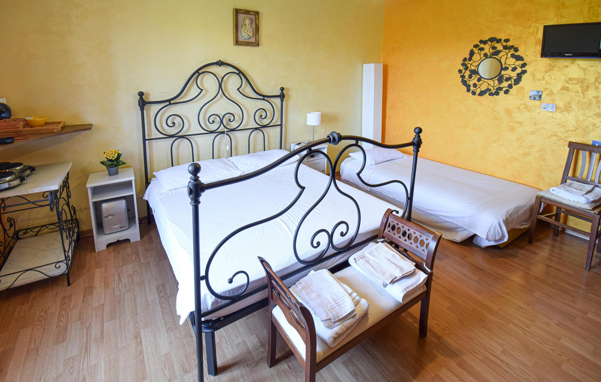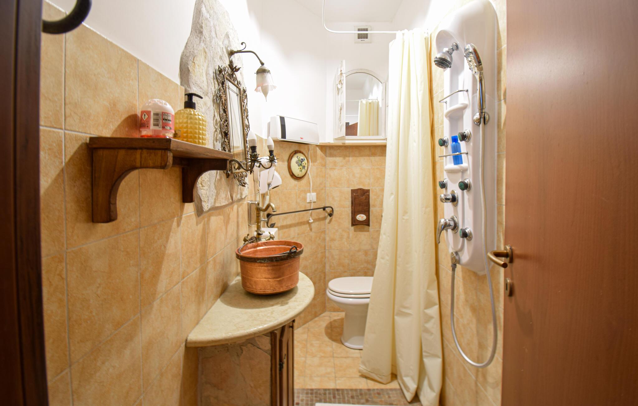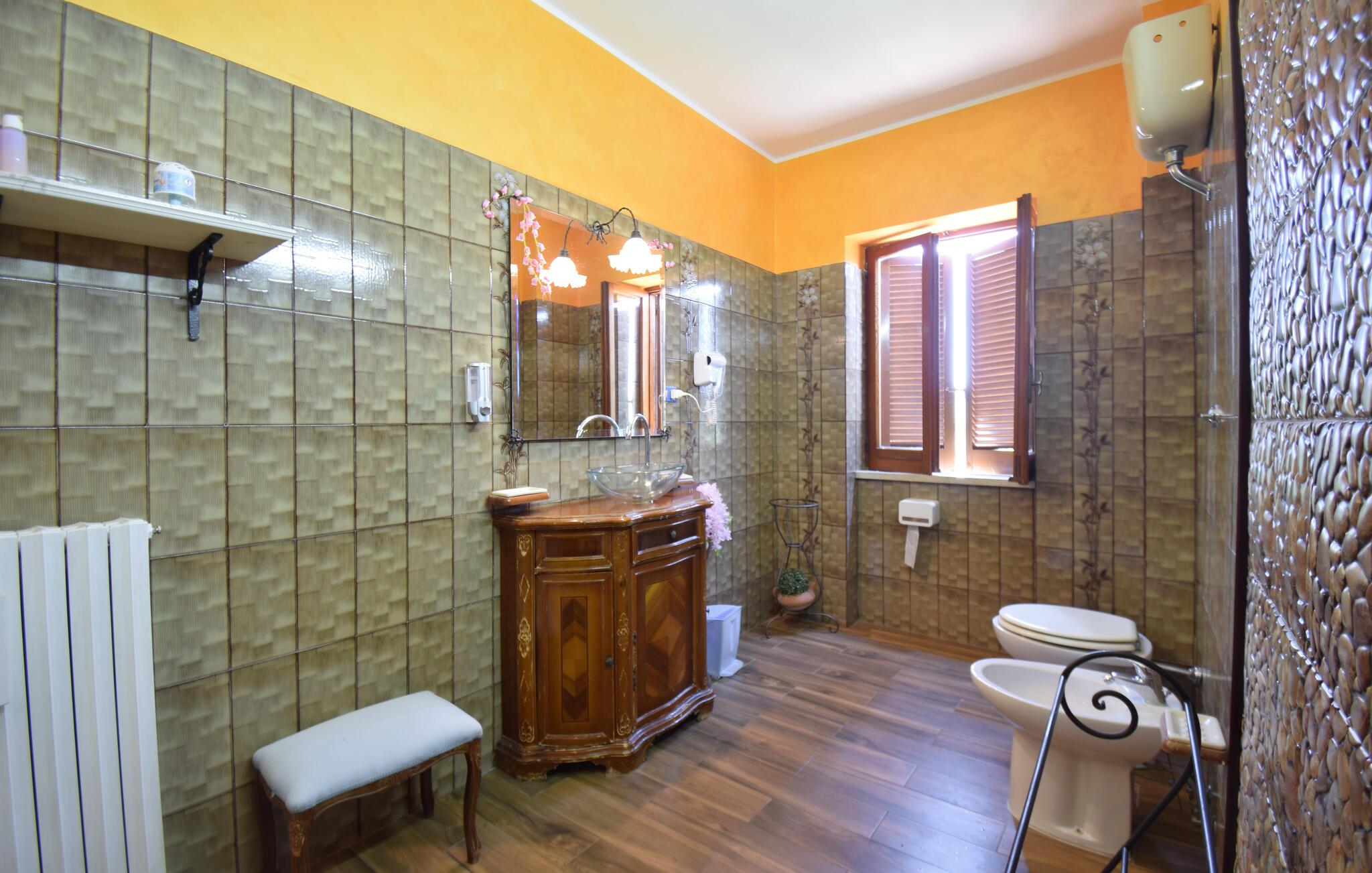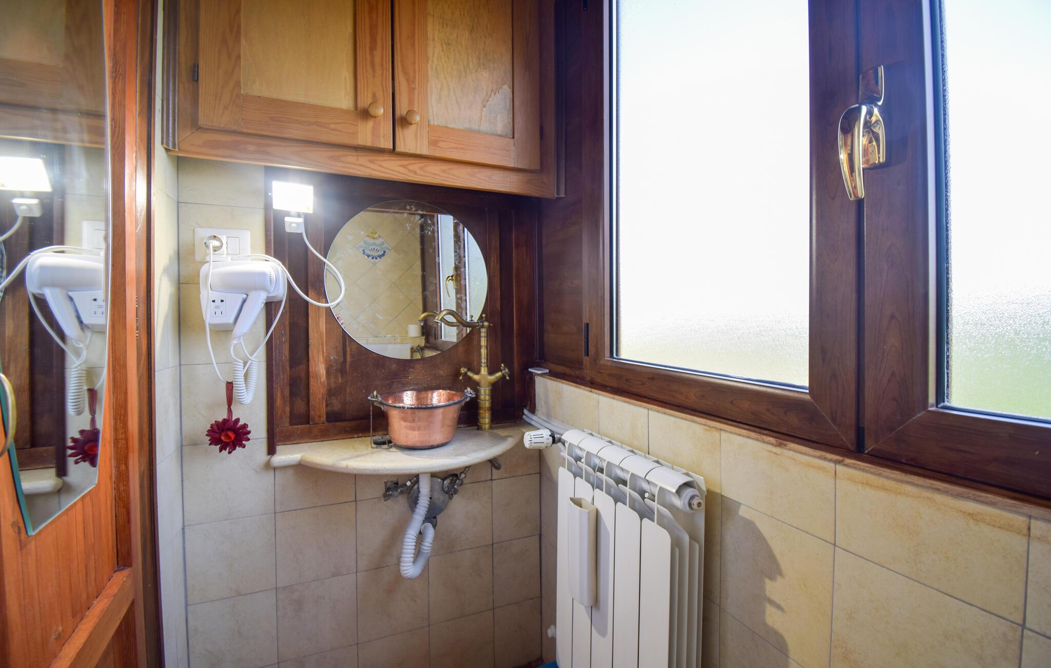 Med gott om utrymme och en charmig, traditionellt inredd interiör välkomnar denna bekväma semesterlägenhet dig. Här kan du laga läckra pastarätter och planera dina utflykter under trevliga måltider. Efter en aktiv dag kan du koppla av i bubbelpoolen, njuta av en rolig spelkväll med dina nära och kära eller streama en film.