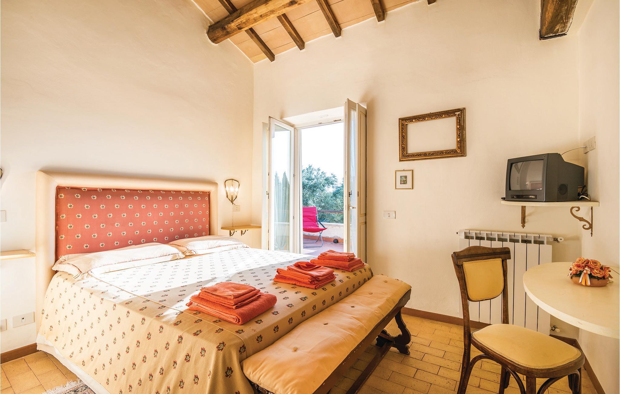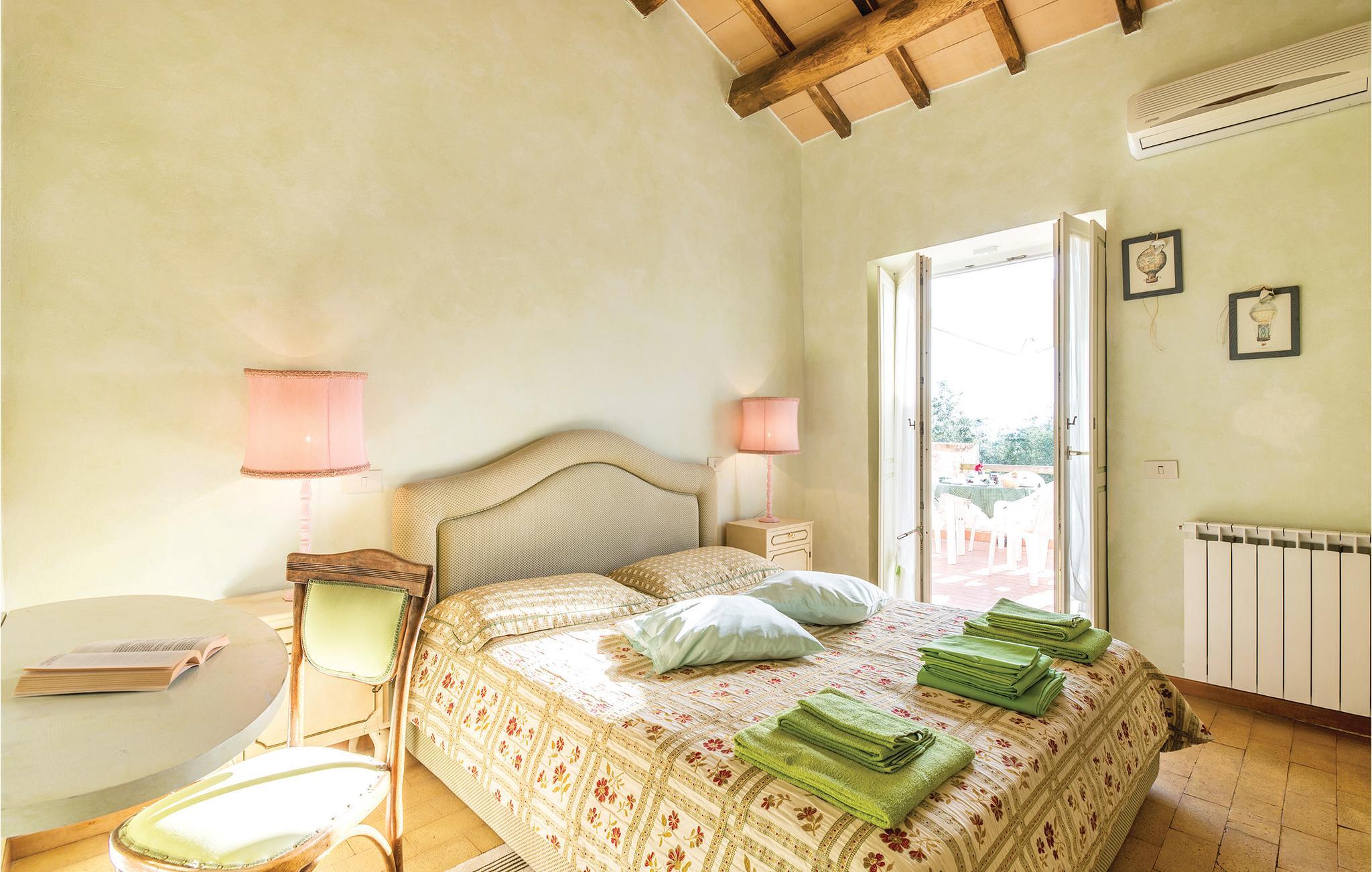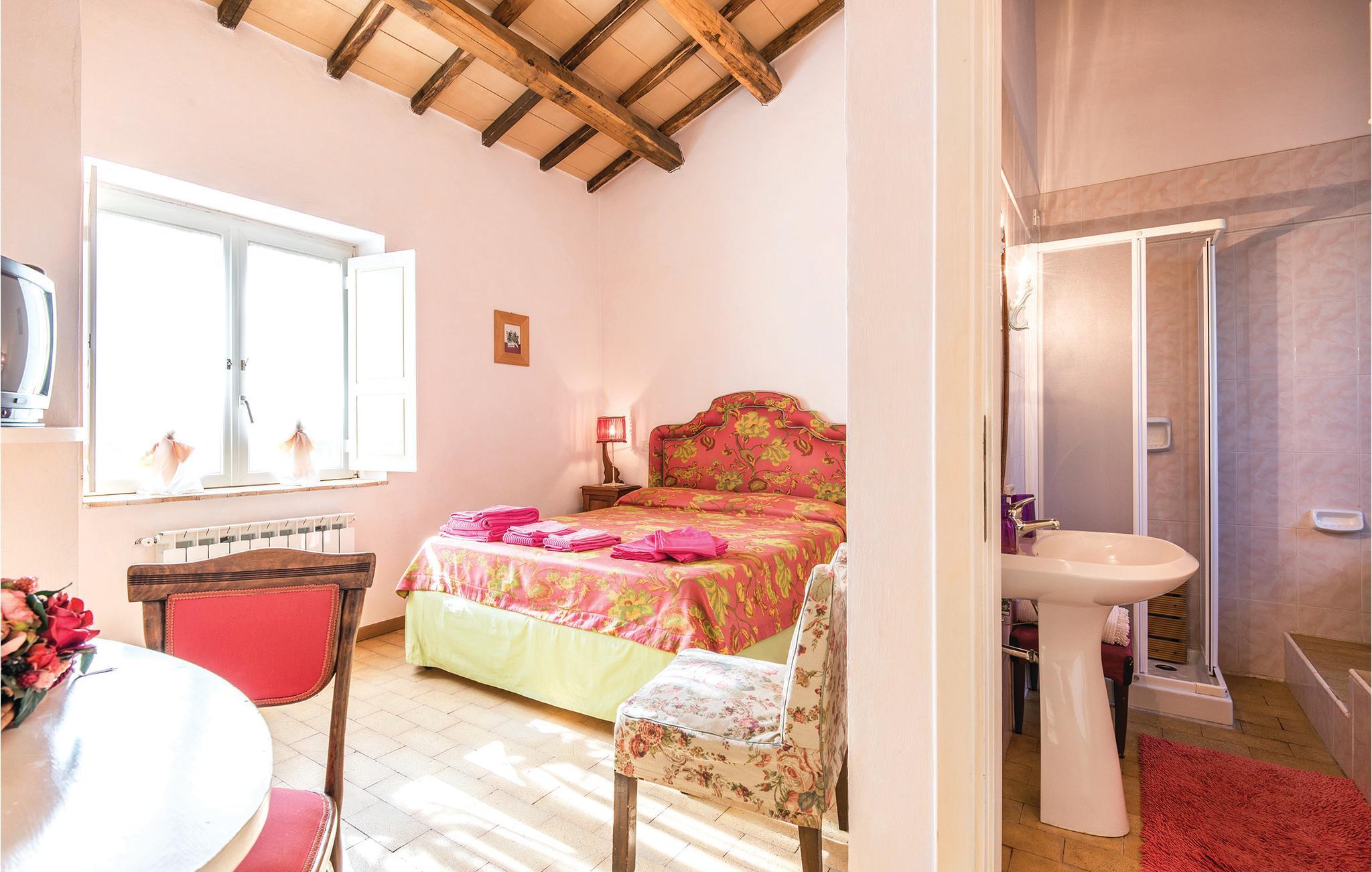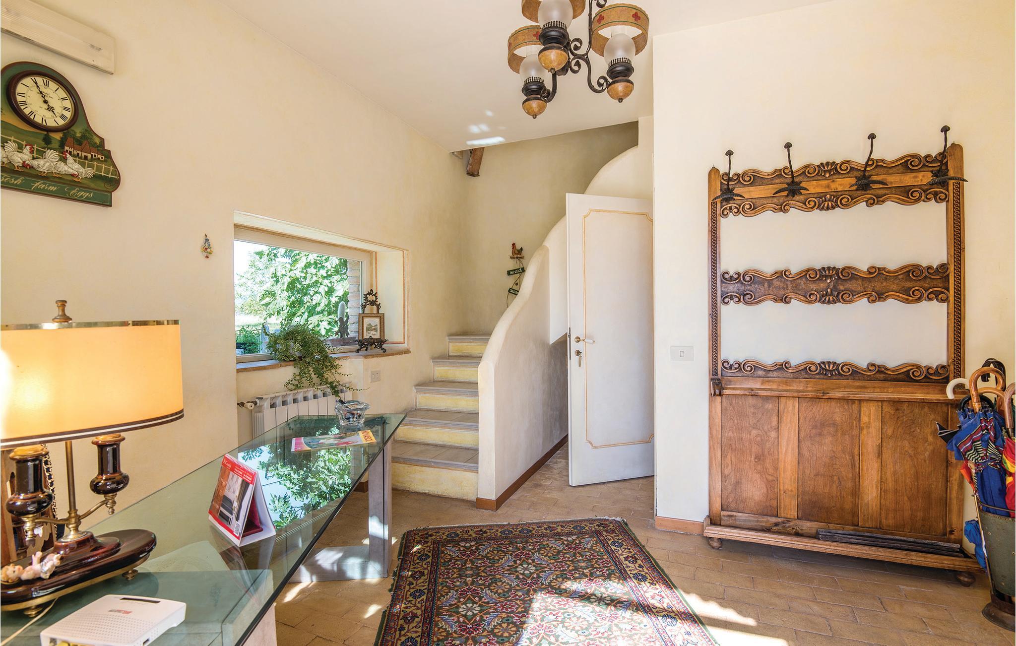 Detta vackra 1800-tals lantställe ligger i utkanten av den pittoreska byn Monteleone Sabino, i Sabinebergen, mellan Turano- och Farfa-dalarna. Det ligger mycket nära ruinerna av den arkeologiska platsen "Trebula Mutuesca", en av de viktigaste i Lazio-regionen. Huset är smakfullt inrett och har typiska drag från bondgårdarna i området, till exempel träbjälkar, sten- eller kakelgolv och öppen spis. Trädgården med sin vackra pool och delvis skuggade områden inbjuder till avkoppling. Njut av panoramautsikten över Sabina-dalarna och Benediktinkyrkan Santa Vittoria (150 m). Denna villa är en idealisk plats för civila och religiösa bröllop. På begäran är det faktiskt möjligt att organisera bröllop och catering. Två sovrum har tillgång till en terrass med utsikt över trädgården.