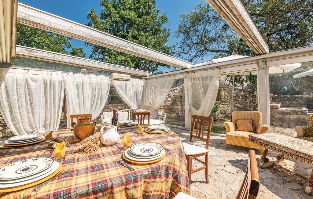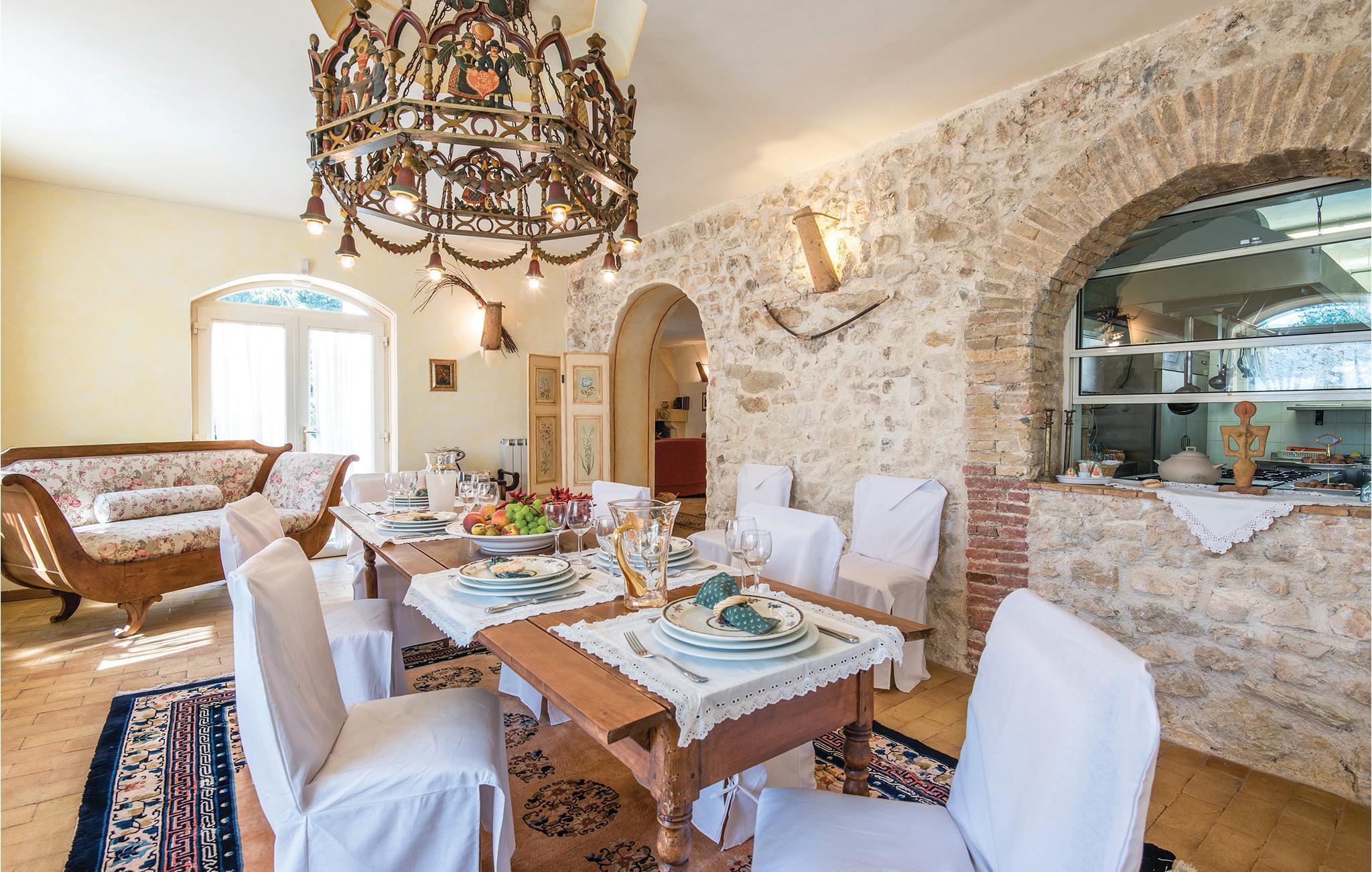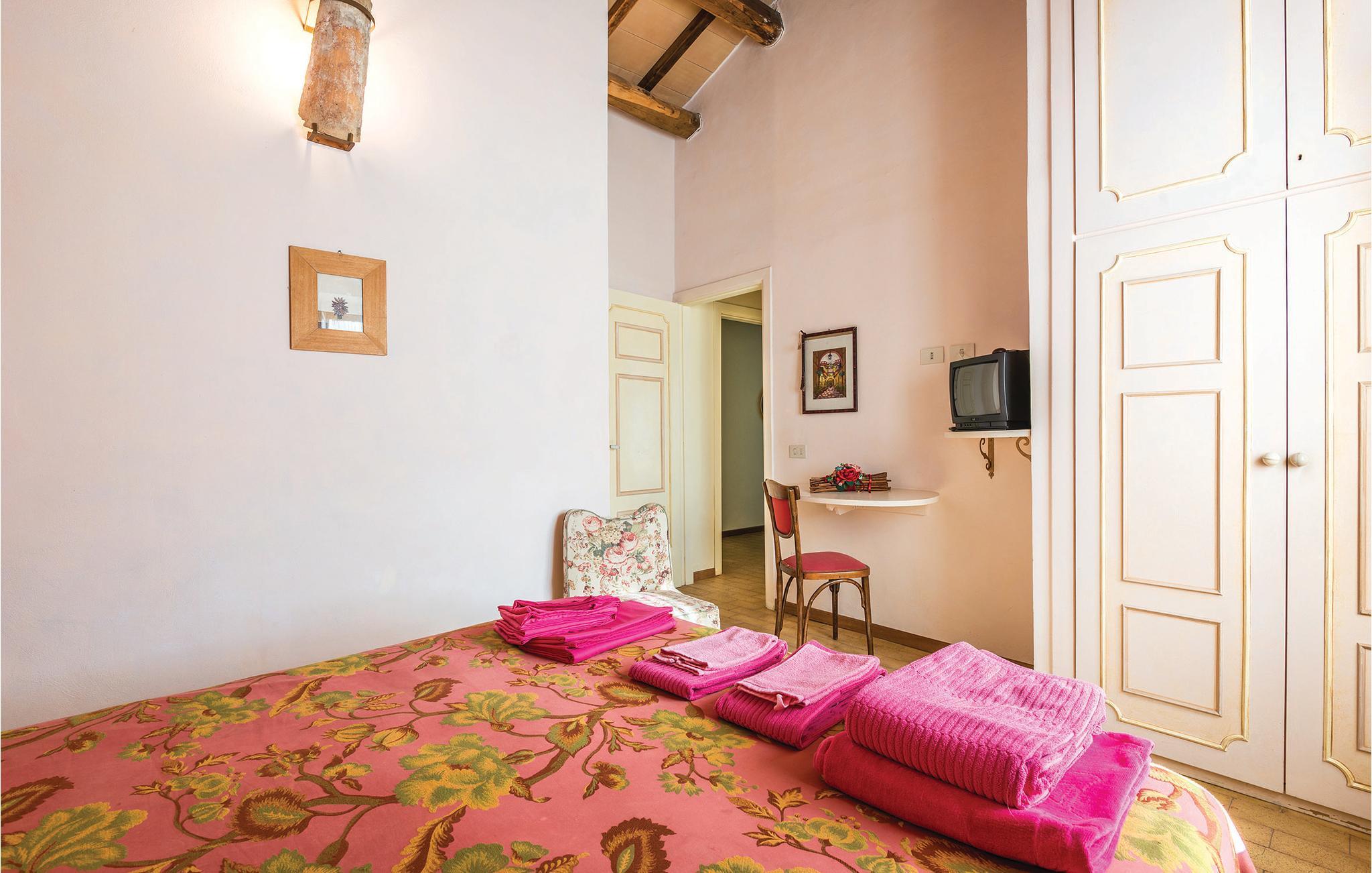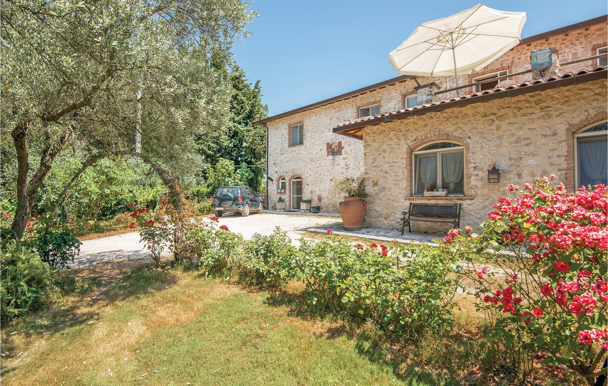Detta vackra 1800-tals lantställe ligger i utkanten av den pittoreska byn Monteleone Sabino, i Sabinebergen, mellan Turano- och Farfa-dalarna. Det ligger mycket nära ruinerna av den arkeologiska platsen "Trebula Mutuesca", en av de viktigaste i Lazio-regionen. Huset är smakfullt inrett och har typiska drag från bondgårdarna i området, till exempel träbjälkar, sten- eller kakelgolv och öppen spis. Trädgården med sin vackra pool och delvis skuggade områden inbjuder till avkoppling. Njut av panoramautsikten över Sabina-dalarna och Benediktinkyrkan Santa Vittoria (150 m). Denna villa är en idealisk plats för civila och religiösa bröllop. På begäran är det faktiskt möjligt att organisera bröllop och catering. Två sovrum har tillgång till en terrass med utsikt över trädgården.