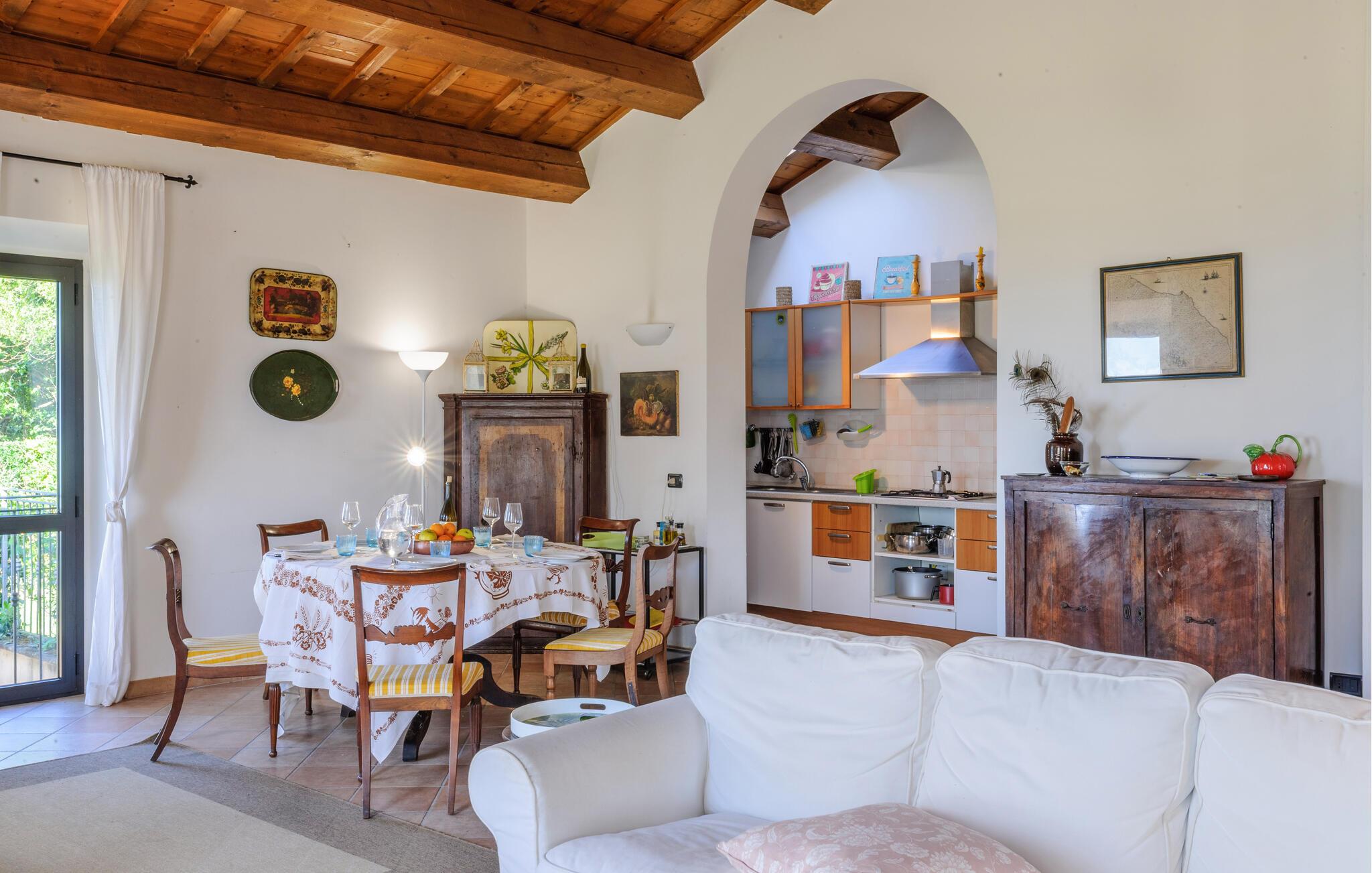 Tillbringa en drömsemester i detta förtrollande semesterhus i Montemarciano. De ljusa rummen och de höga trätaken skapar en varm och inbjudande atmosfär. Njut av måltiderna tillsammans i den mysiga matplatsen, som är harmoniskt ansluten till köket. Låt dig inspireras av charmen i de traditionella möblerna och känn dig som hemma. Gå ut på terrassen och koppla av med en mysig frukost i det fria medan du låter blicken vandra över den kärleksfullt skötta trädgården. Dra nytta av de lugna omgivningarna för avkopplande timmar utomhus och lyssna på lövens prasslande.