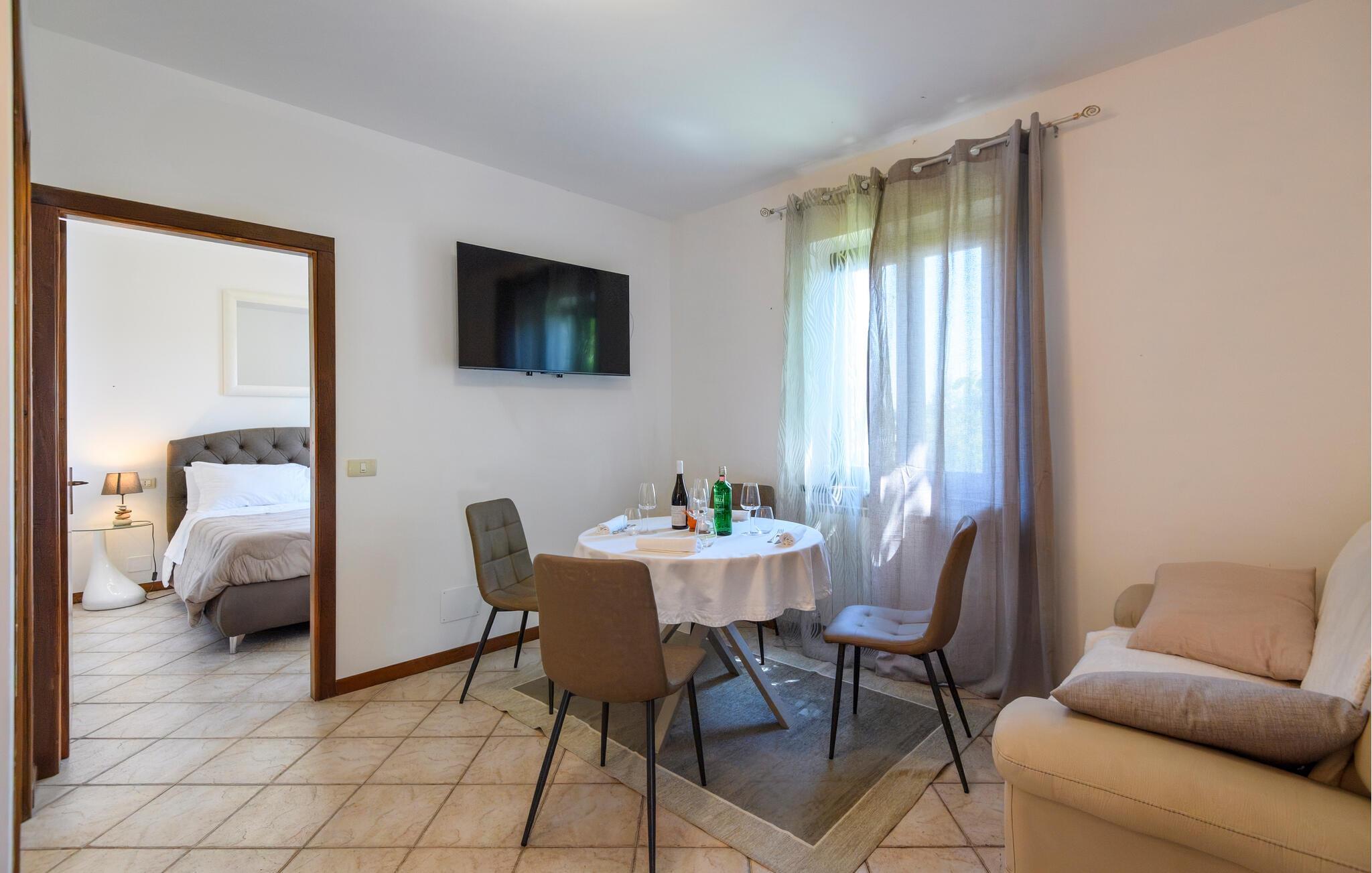Semesterlägenheten erbjuder den perfekta miljön för en avkopplande semester i lantliga omgivningar. Ni bor i ett naturstenshus med gemensam pool och gemensam bastu. Stig in i det ljusa vardagsrummet med soffa, TV och matbord. Njut av dina måltider här eller koppla av med en film efter en utflykt. Tillaga enklare måltider i det lilla pentryt.