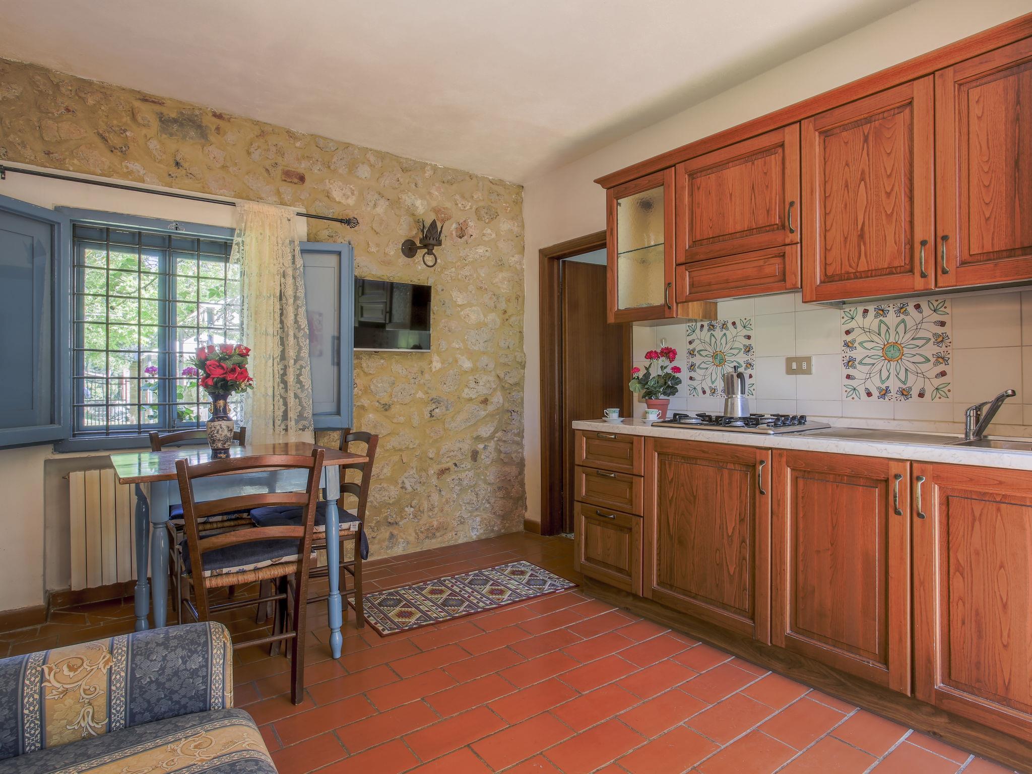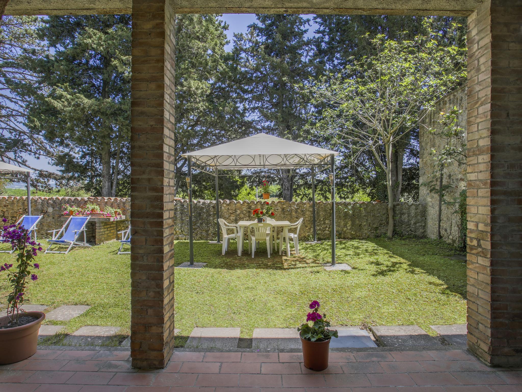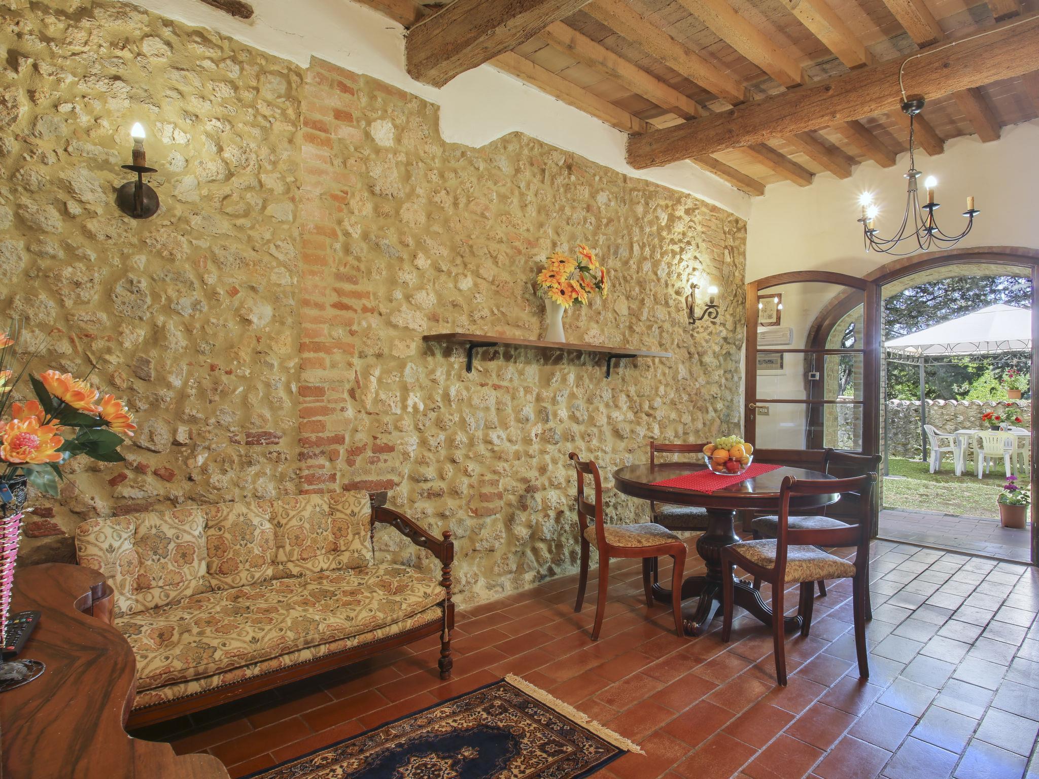 Monteriggioni: Rustic farmhouse "Fattoria Petraglia", detached from the 15th century, surrounded by trees, meadows and vineyards. 5 apartments in the property. 2.2 km from the centre of Monteriggioni, 12 km from the centre of Siena, 33 km from the centre of San Gimignano, in a quiet, sunny position, 90 km from the sea, in the countryside. Private: natural state property 50 ha, natural garden, meadow, swimming pool (10 x 15 m, seasonal availability: 01.May. - 10.Oct.). Outdoor shower, pergola, terrace, garden furniture, barbecue, pool maintenance by the owner/gardener. In the house: washing machine (extra). 100 m long motor access (via unmade road). Parking on the premises. Grocery 2.2 km, supermarket 12 km, bus stop 2.2 km, railway station "Siena" 12 km. Nearby attractions: Castellina in Chianti 20 km, Radda in Chianti 24 km, Montalcino 45 km, Volterra 50 km, Firenze 70 km. Please note: baby equipment (included). Groups of teenagers on request only.