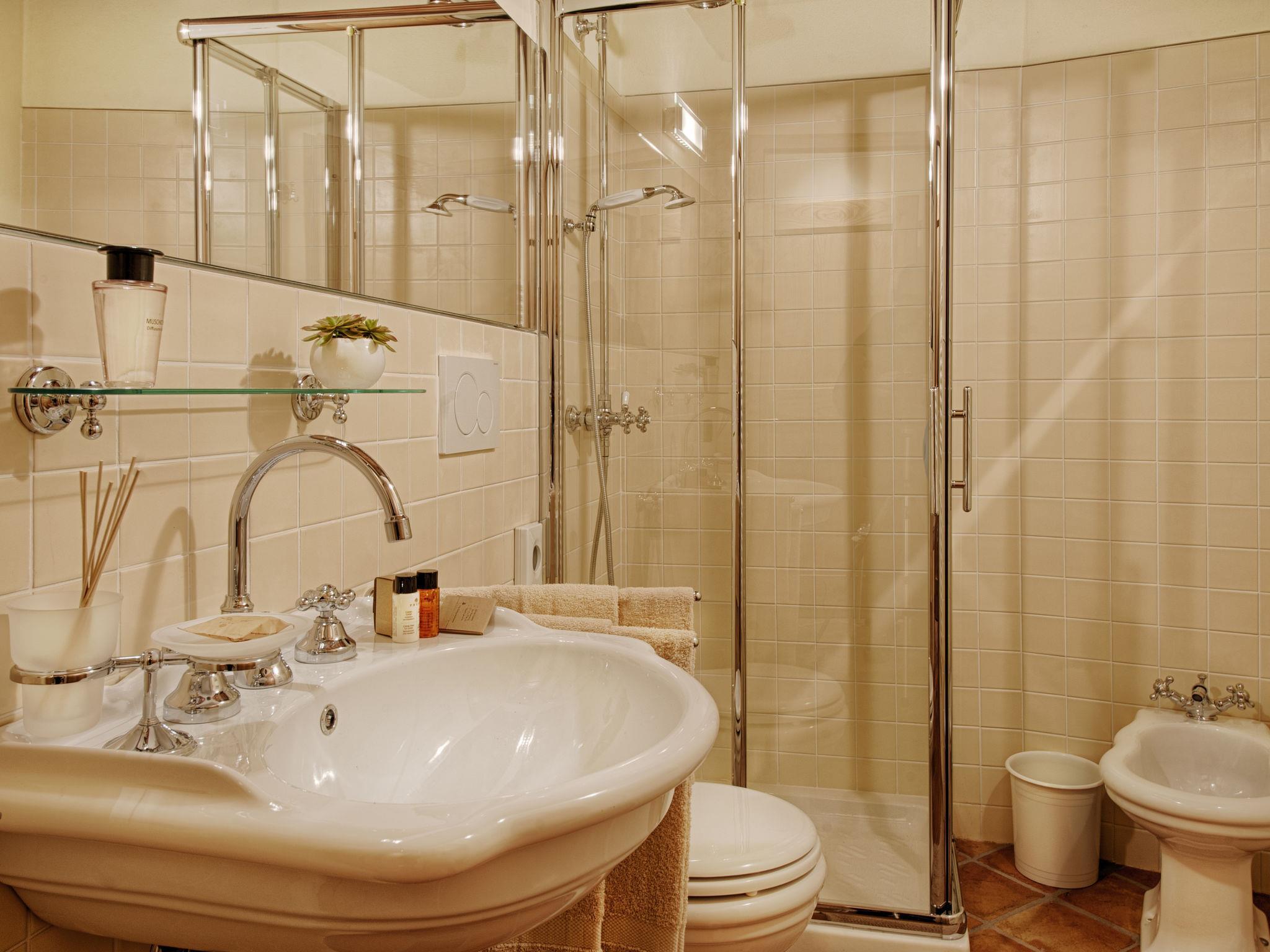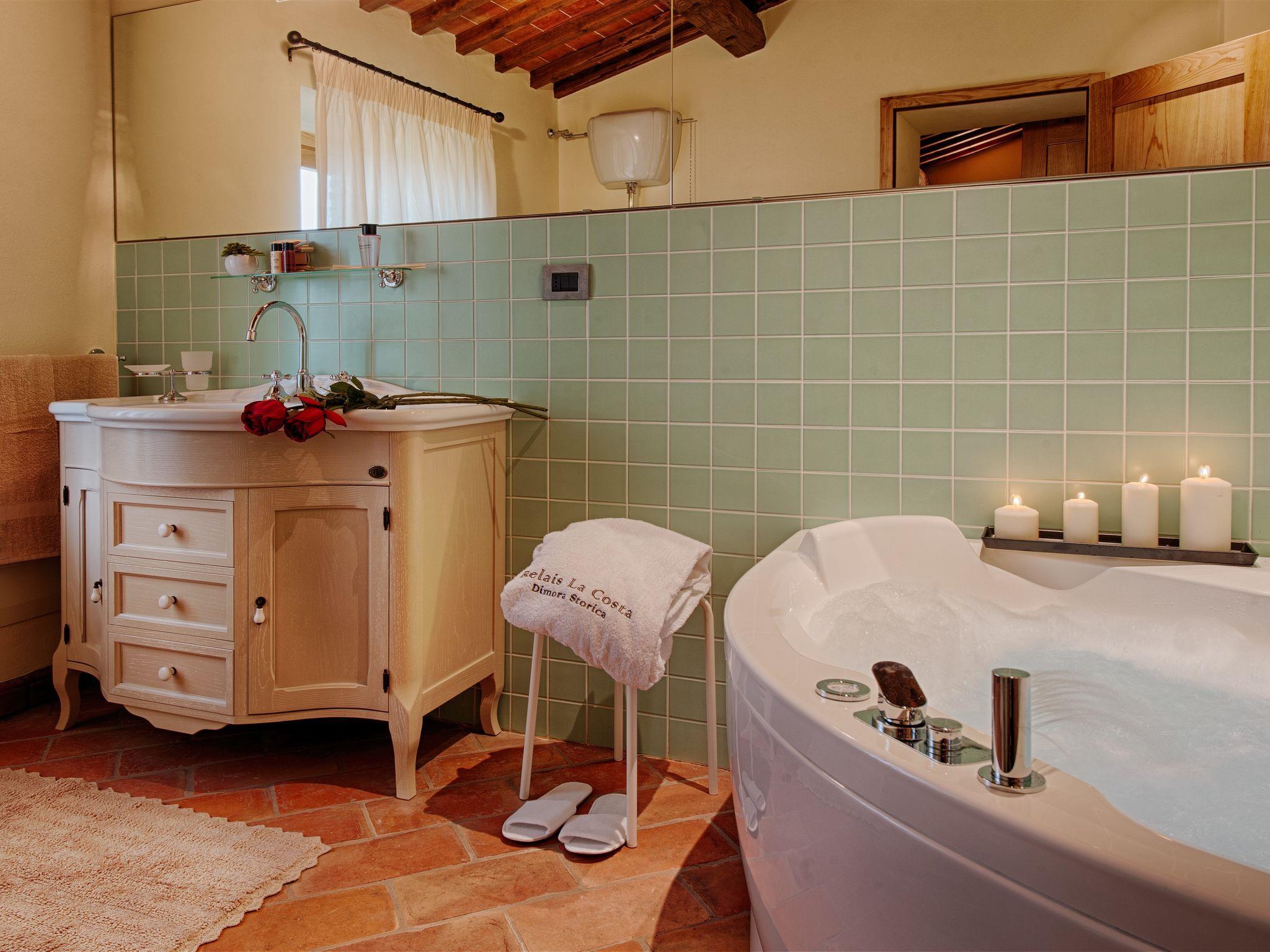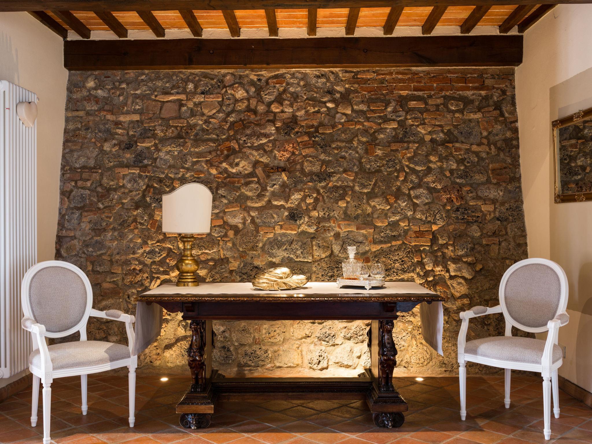 "Relais La Costa", 22-room cottage 700 m2 on 3 levels. Spacious, fully renovated, tasteful and stylish furnishings: large living room with open-hearth fireplace and TV (flat screen), air conditioning. Exit to the patio. Living room with TV (flat screen), air conditioning. Exit to the patio. Dining room with open-hearth fireplace and TV (flat screen), air conditioning. Exit to the patio. Living room with TV (flat screen), air conditioning. Exit to the patio. 4 double bedrooms, each room with air conditioning. Kitchen (oven, dishwasher, Gas stove, 4 gas rings, toaster, kettle, microwave, electric coffee machine). 5 showers/bidet/WC. On the lower ground floor: 3 showers, 2 sep. WC's, hydro massage bath, Sauna. Upper floor: (steep stair). Living room with 1 double sofabed and TV (flat screen), air conditioning. Open gallery with 1 double sofabed. 2 double bedrooms, each room with shower/bidet/WC and air conditioning. 4 double bedrooms, each room with air conditioning. 4 showers/bidet/WC. Gas heating, air-conditioning. Natural stone floors. 2 terraces, patio. Terrace furniture, barbecue, deck chairs, covered balcony, box-room. Marvellous panoramic view of the countryside and Siena. Facilities: washing machine, dryer, children's high chair, baby cot for up to 2 year olds, hair dryer. Internet (WiFi, free). Parking (fenced). Please note: non-smokers only. Smoke alarm, fire extinguisher. No internal connecting door between the separated properties. No internal connecting door between the floors. The pool mentioned in the description is for private use. Property consists of 7 units on different level, eauch of them with living room, bedroom and bathroom. IT052016B9IXL2R6T4