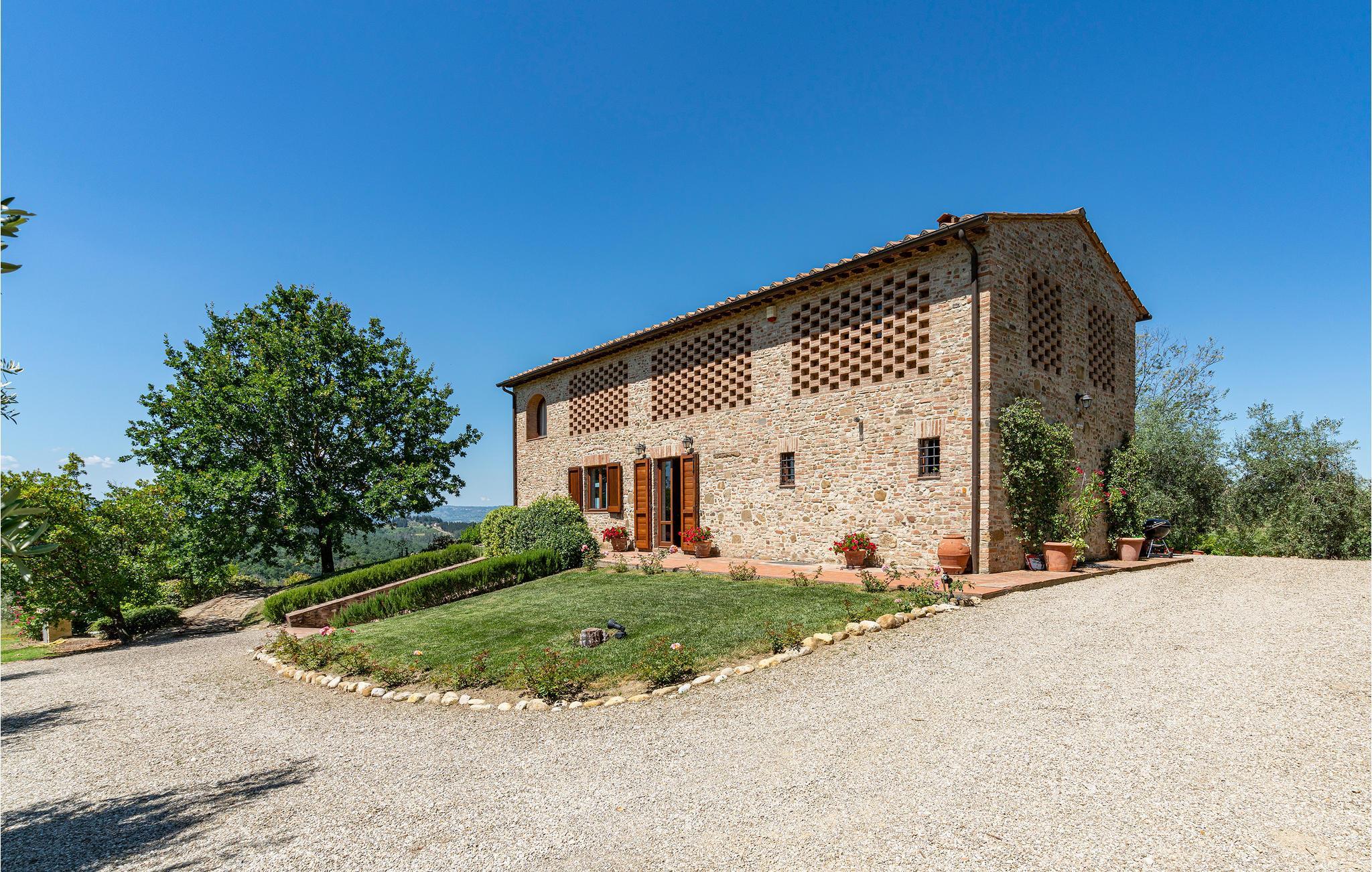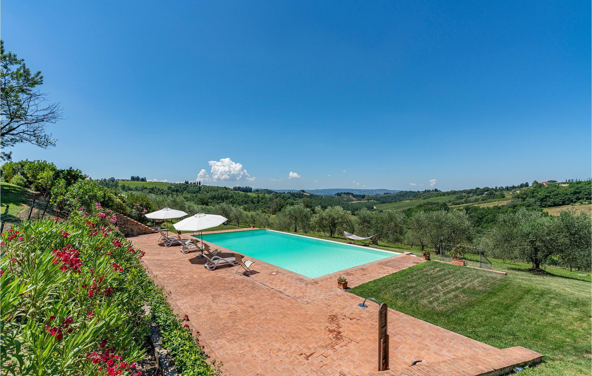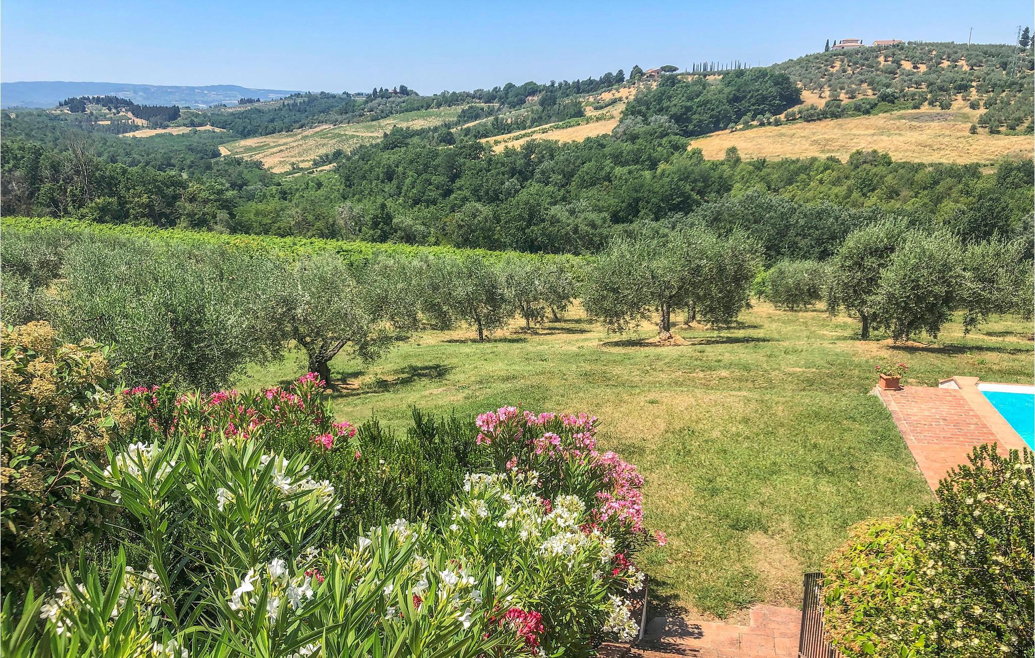 Det här vackra, fristående semesterhuset i tre våningar på de gröna kullarna i Florentinska Chianti, bara 2 km från Fiano, har skapats genom en noggrann renovering av en gammal höloft. Det stora och vackra boendet ligger på en kulle med utsikt över den vackra omgivande landsbygden. Den panoramiska infinitypoolen med terrakottaområde, parasoller och solstolar, omgiven av trädgårdens grönska, är den idealiska platsen för dem som vill tillbringa en vistelse i kontakt med naturen och upptäcka de otaliga konstnärliga skatterna i det omgivande området. Den välskötta trädgården erbjuder gott om utrymme för avkoppling och lek. Fotbollsplan i utkanten av trädgården.