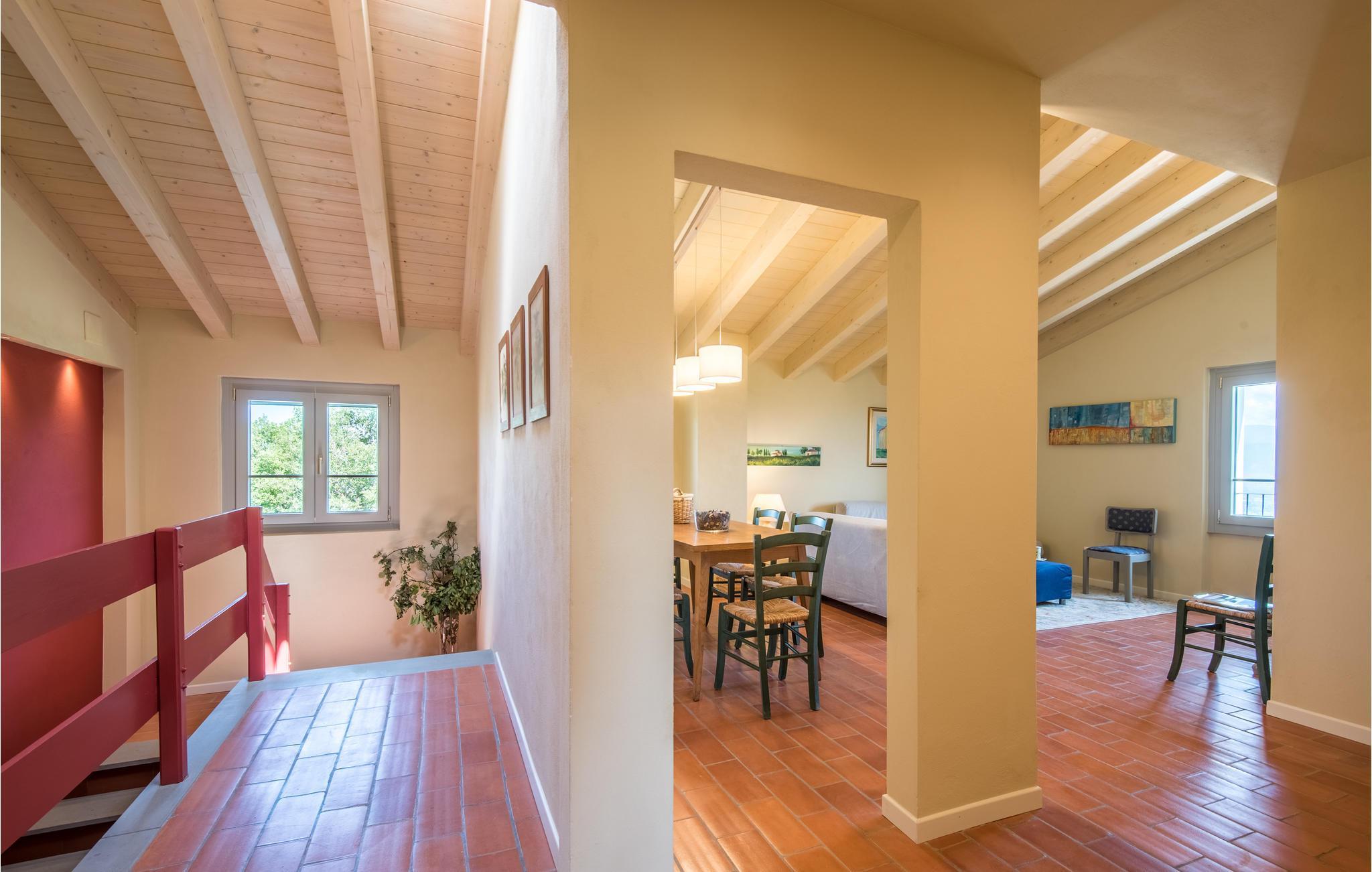 De enkelt men attraktivt inredda rummen har alla fönster med myggnät. På morgonen kan du njuta av din frukost på terrassen bredvid köket, där du kan göra dig bekväm under parasollet vid frukostbordet och titta ut över poolen, och från vardagsrummet med stor öppen spis har du tillgång till en täckt terrass med vidsträckt utsikt över Arnodalen, där du kan koppla av och avsluta dagen med middag utomhus. Poolområdet med solterrass ligger också på den stora naturtomten med gräsmatta, olivlund och skog. Alla fönster har flugnät. Avstånd: den lilla byn Moncione (affär, restaurang) 1.5 km; Florens och Siena 50 km bort, Arezzo och Chianti-regionen ca 35 km. Ridcenter 2 km, golfbana 10 km.