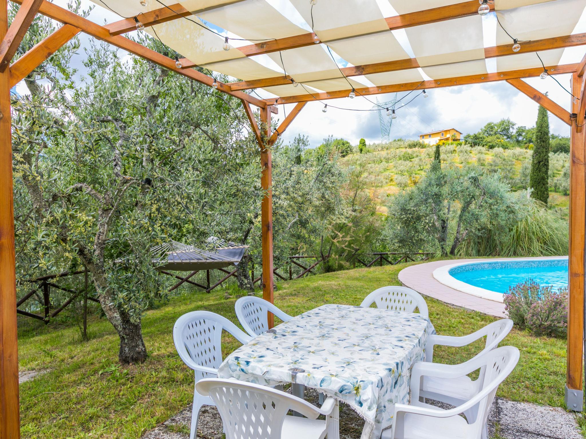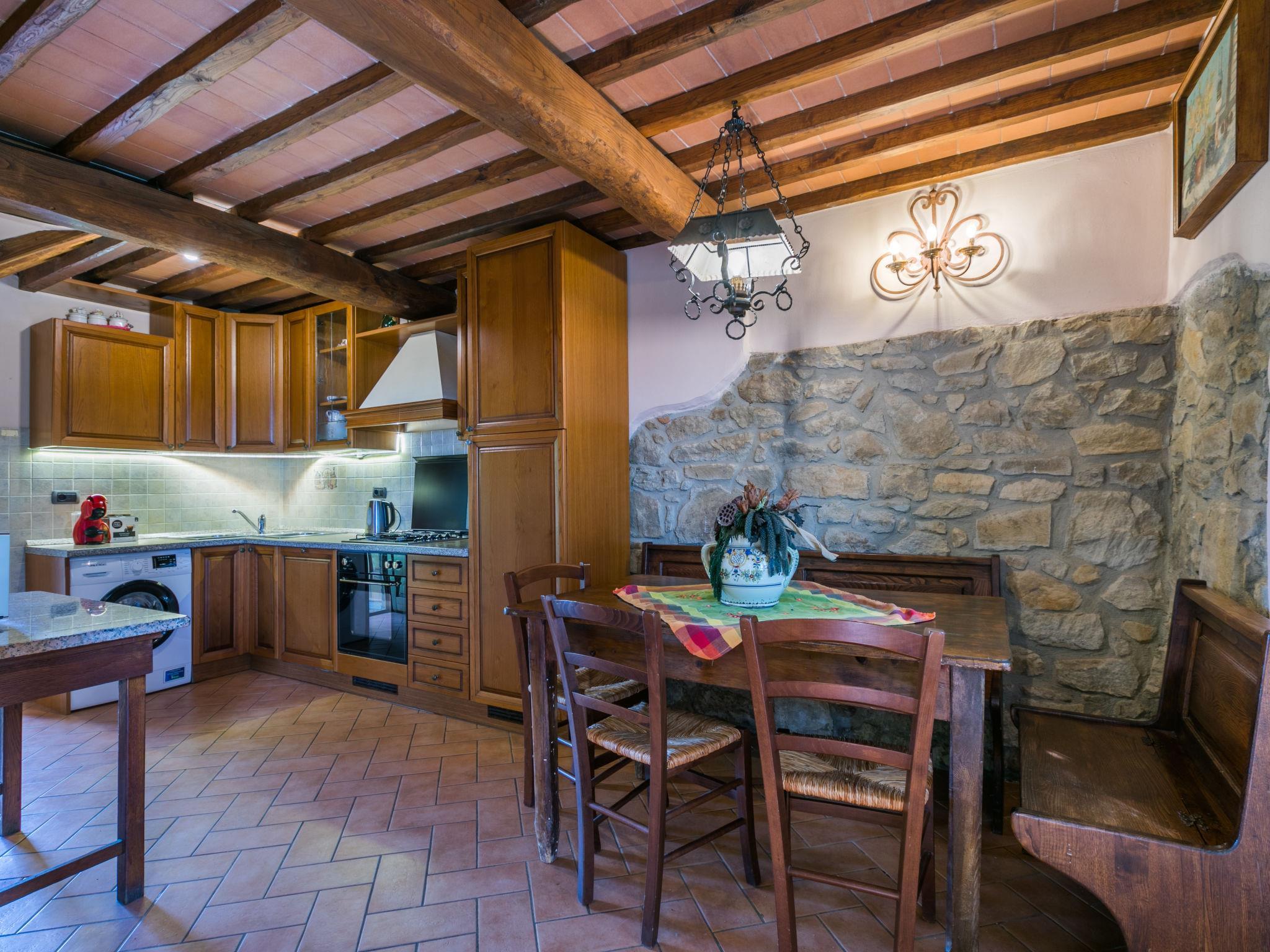 Typical Tuscan stone house whose main floor has been restored to provide a holiday home. Situated on the east hills of the Chianti among olive groves and in a remote panoramic position. Beautiful country house "Tegliaia", 400 m a.s.l., detached, renovated. 5 km from the centre of Montevarchi, 45 km from the centre of Siena, 50 km from the centre of Firenze, in a quiet, sunny position on a slope, in the countryside. Private: property, swimming pool fenced (5 x 10 m, depth 140 cm, seasonal availability: 27.May. - 30.Sep.). Outdoor shower, arbour (20 m2), terrace, garden furniture, barbecue. In the house: internet access, WiFi, central heating system, washing machine, heating to be paid on the spot (01.Nov. - 15.Apr.), heating available only from 01.Nov. - 15.Apr.. Narrow motor access to the house (50 m via unmade road). Parking on the premises. Grocery 2 km, shopping centre 5 km, restaurant 2 km, railway station "Montevarchi" 5 km. Nearby attractions: Montegonzi 7 km, Bucine 10 km, Gaiole in Chianti 24 km, Castello di Meleto 27 km, Radda in Chianti 28 km, Castellina in Chianti 39 km.