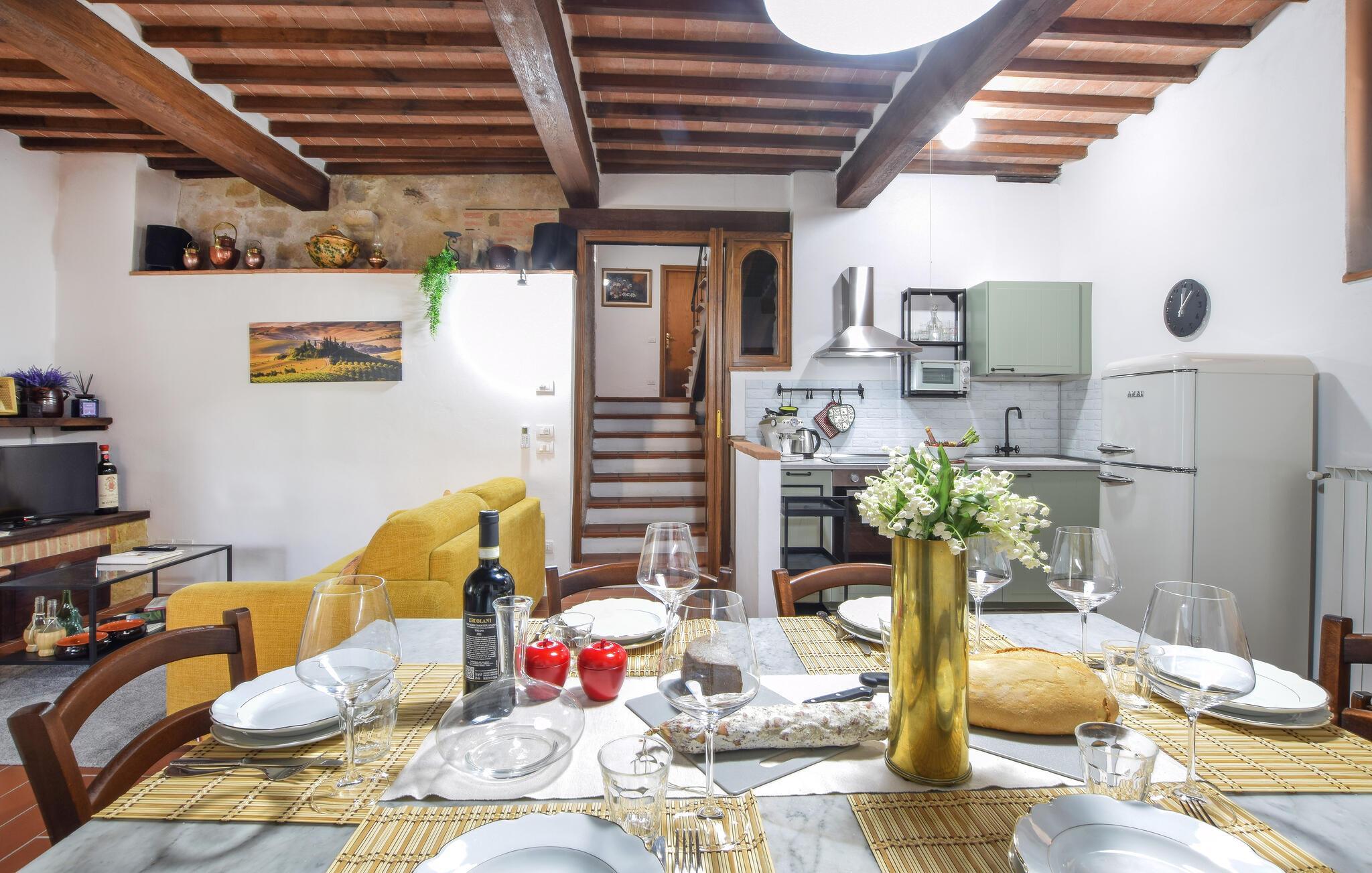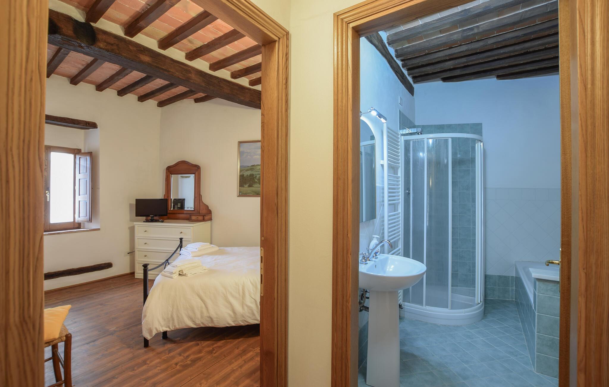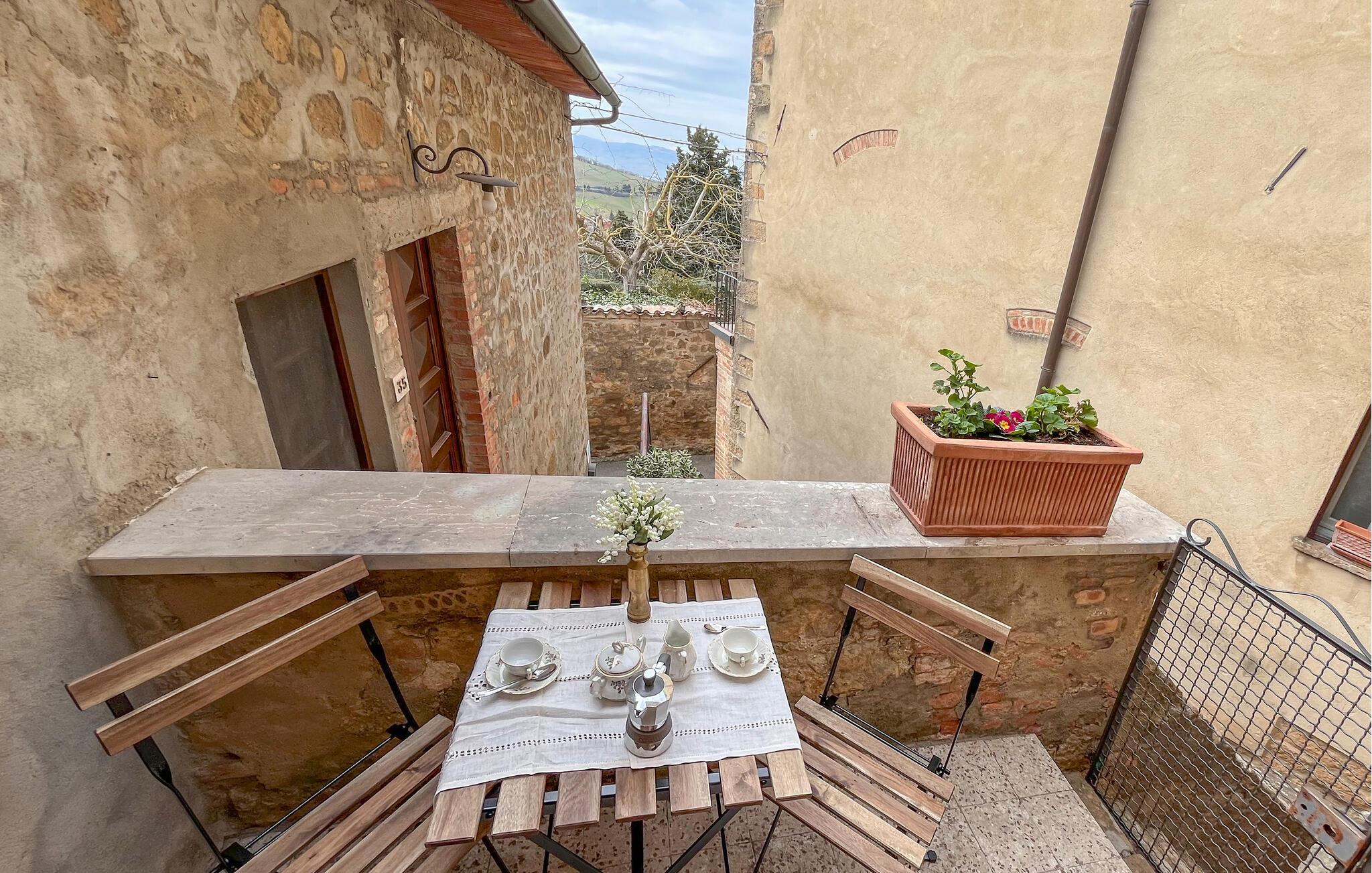 Denna rymliga semesterlägenhet med atmosfär välkomnar dig till den avlägsna, medeltida byn Monticchiello i Val d'Orcia.