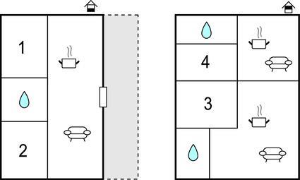 Sovrum (nr. 1) - 1 Sovplats. (Enkelsäng(ar)). 2 Sovplats. (Dubbelsäng(ar)).