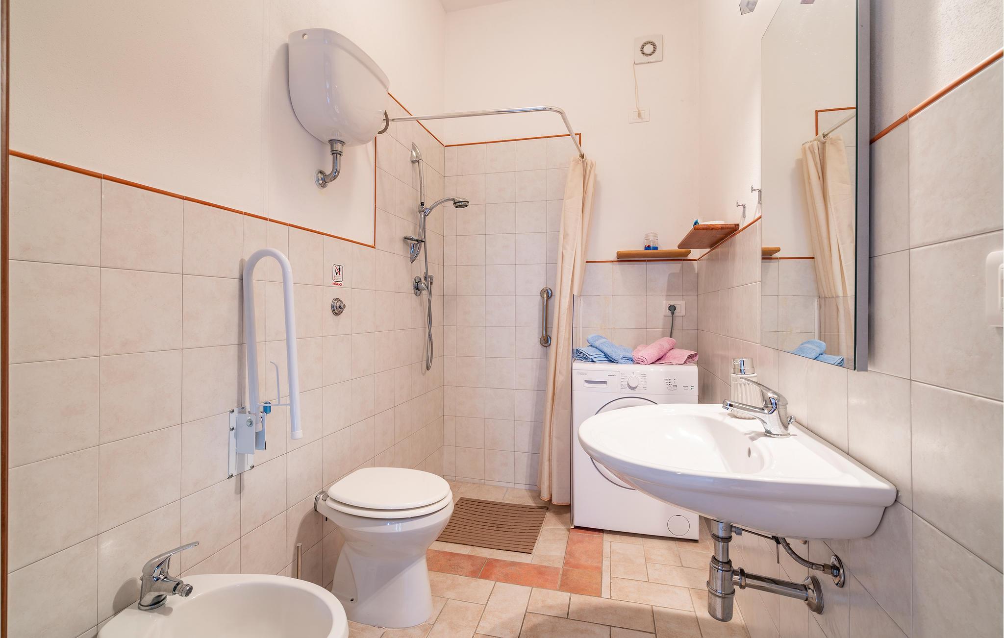 Badrum (nr. 1) - WC: Varmt och kallt vatten. Dusch