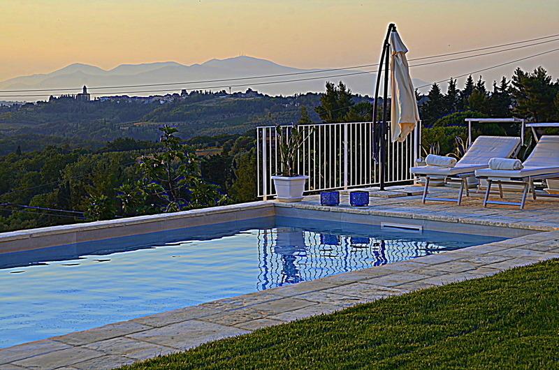 Ausrichtung nach Südwesten des Hauses bietet herrliche Sonnenuntergänge über die Weinberge, die mittelalterliche Kloster von Badia von Morrona, die Hügel von Pisa und die Apuanischen Alpen.