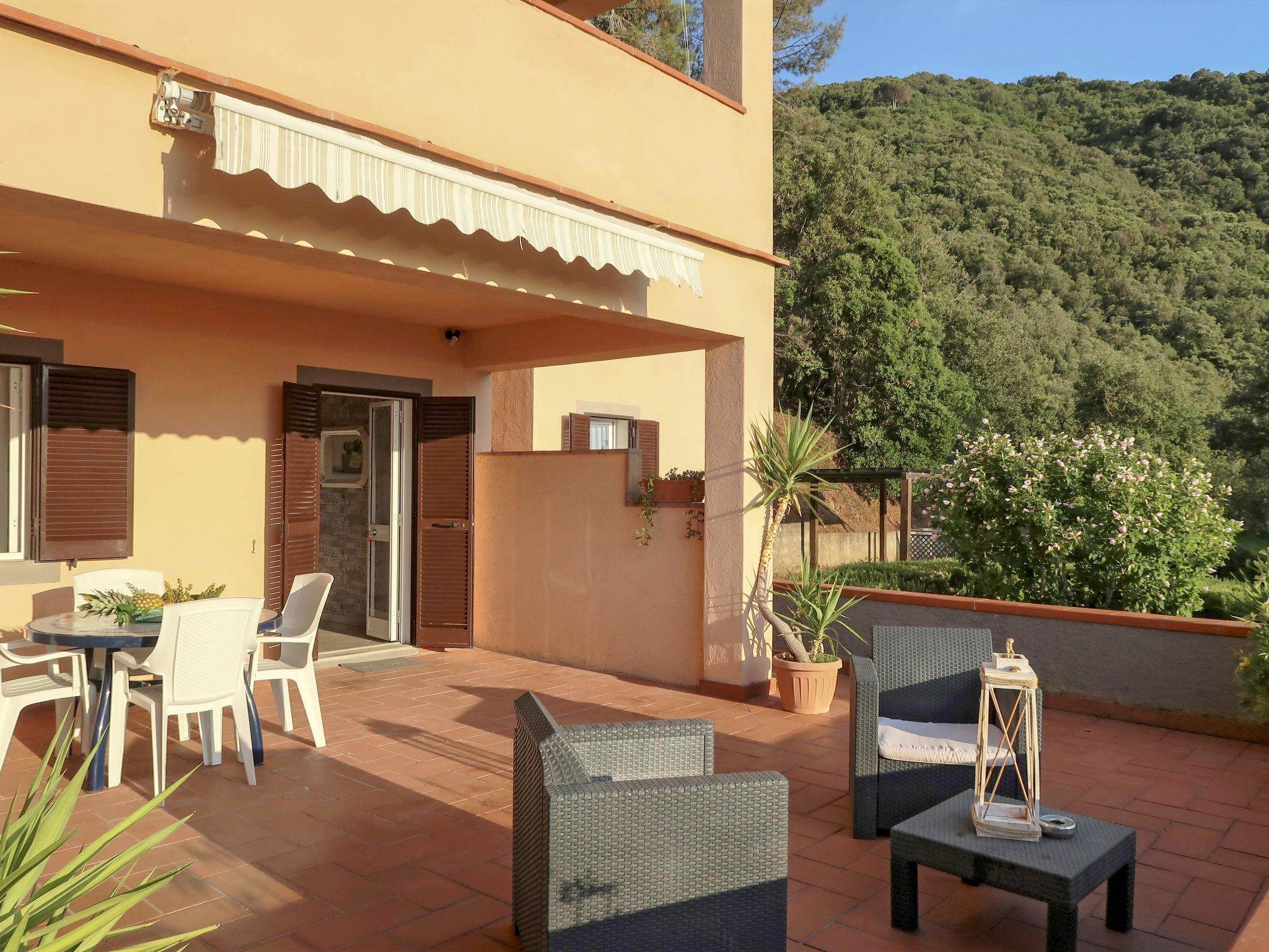 3-family house "La Paradisa", detached, surrounded by trees. 2 houses in the residence. 4 apartments in the property. 700 m from the centre of Nisportino, 4 km from the centre of Nisporto, 9 km from the centre of Rio Marina, in an elevated position on a slope, 700 m from the sea, 1 km from the beach. For shared use: terraced garden (not fenced) with trees, natural garden. Outdoor shower, barbecue. 200 m long steep, narrow motor access. Parking on the premises. Grocery 4 km, supermarket 7 km, restaurant 700 m, bus stop 5 km, ferry "Rio Marina" 7 km, sandy beach "Nisportino" 700 m. Walking paths from the house 100 m. Nearby attractions: Rio Elba 7 km, Cavo 16 km, Porto Ferraio 23 km.