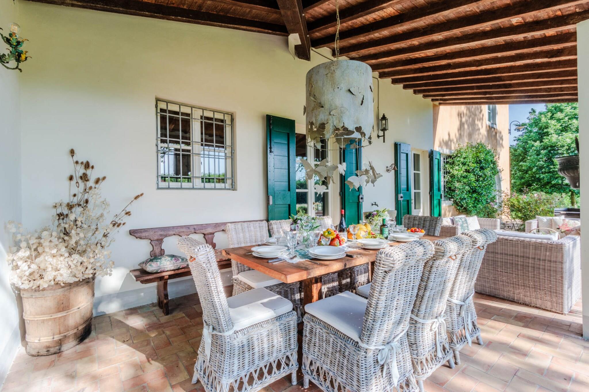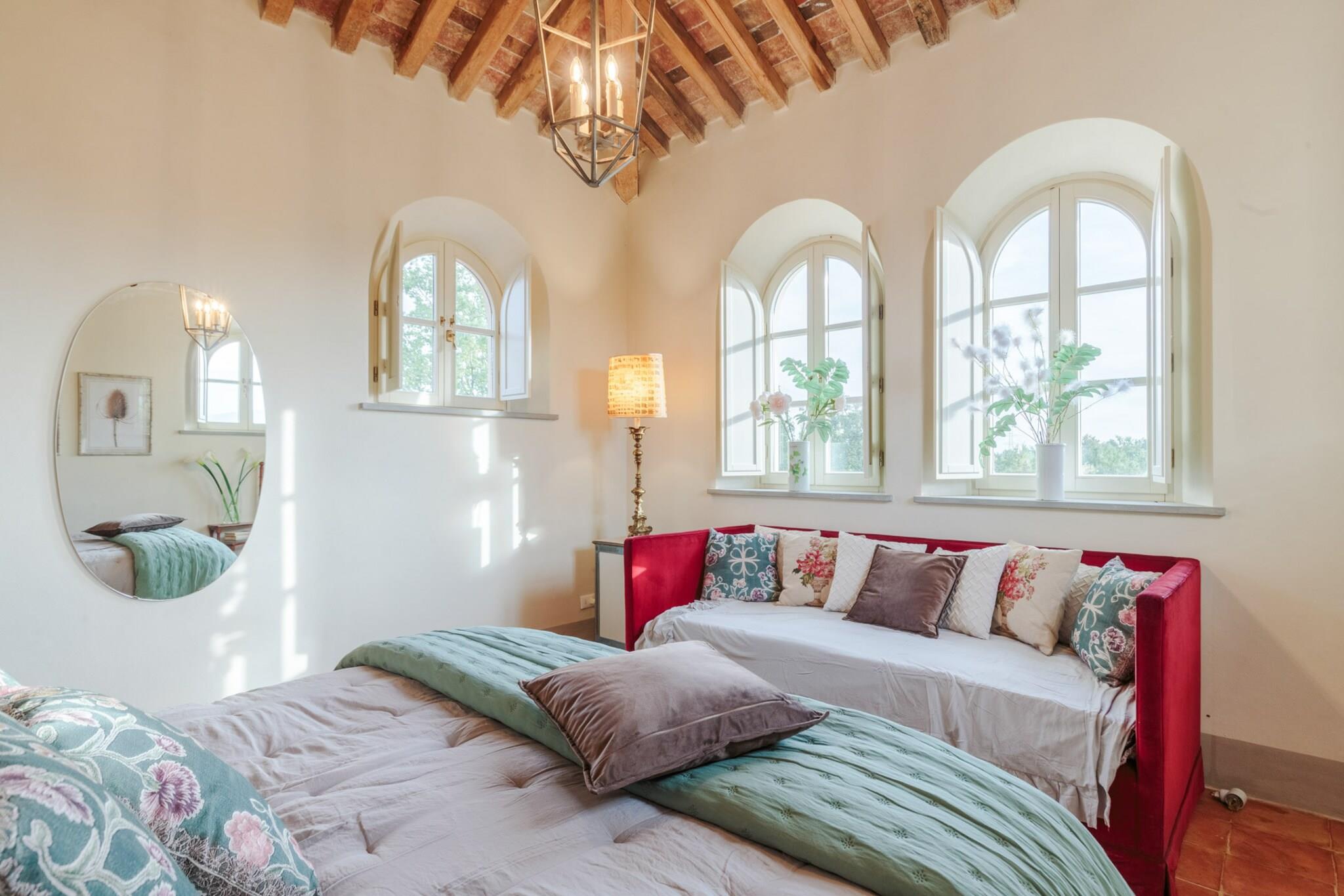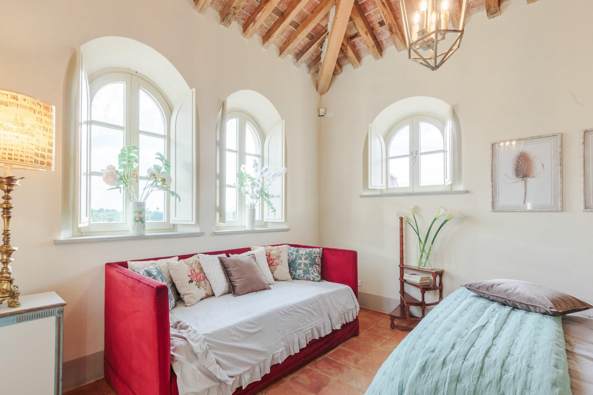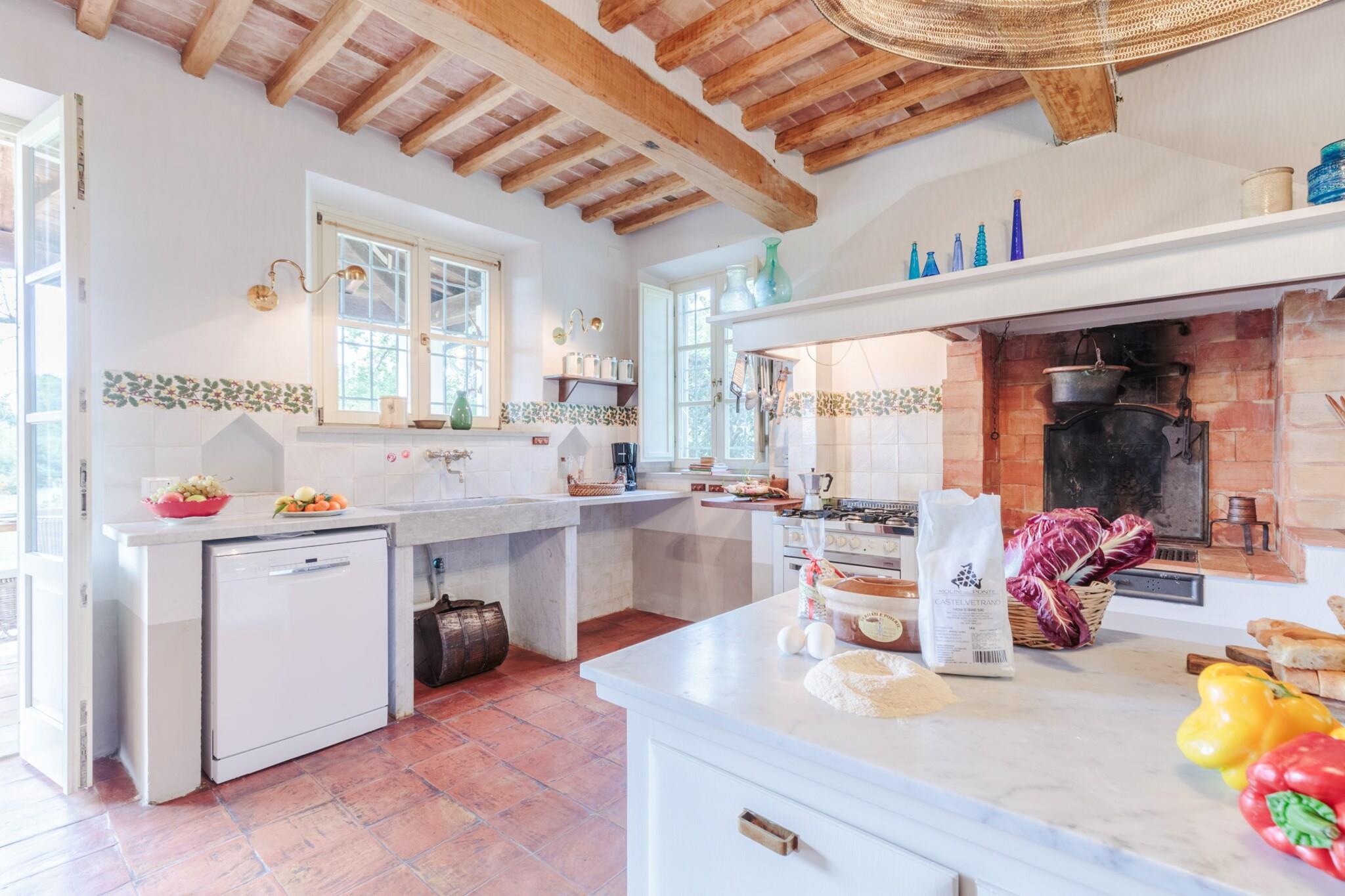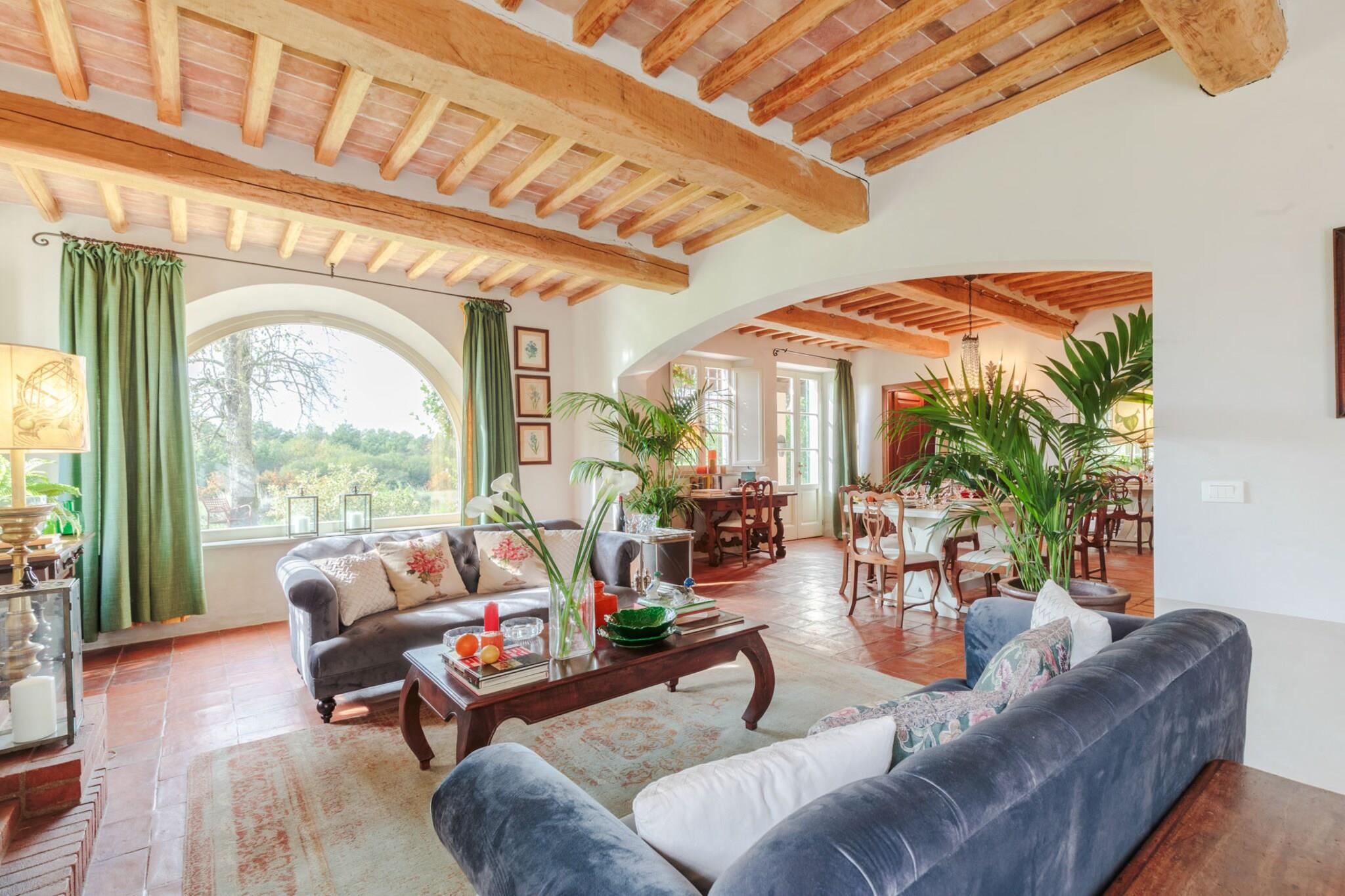 Denna vackert restaurerade villa på landet är en del av en historisk egendom som ägs av en välkänd lokal vinmakare, inbäddad i de böljande kullarna nära Orentano. Omgiven av tusentals hektar orörd skog erbjuder villan en lugn och privat tillflyktsort med privat pool, vidsträckta trädgårdar och panoramautsikt över det toskanska landskapet. Det 300 m² stora huset har fyra rymliga sovrum och flera vardagsrum, med bekväm plats för upp till 8 gäster. Bottenvåningen har ett stort kök, matsal, mysigt vardagsrum med öppen spis och ett badrum. På övervåningen hittar du en mastersvit med eget badrum, ytterligare två sovrum och två badrum. Ett fjärde sovrum ligger på översta våningen. Utomhuslivet är en höjdpunkt här, med en stor veranda för måltider utomhus, en skuggig lounge och en terrass vid poolen som är perfekt för att koppla av med ett glas vin. Villan har ett idealiskt läge för att utforska Toscana och ligger inom bekvämt räckhåll från Lucca, Pisa, Florens, San Gimignano och Cinque Terre. Den närliggande byn Orentano erbjuder restauranger, pizzerior och butiker, medan den större staden Altopascio bara ligger en kort bilresa bort. Oavsett om du njuter av den lugna omgivningen, utforskar närliggande historiska städer eller njuter av lokal mat och vin, erbjuder denna villa en oförglömlig toskansk upplevelse. Obs: Turistskatt ska betalas på boendet.