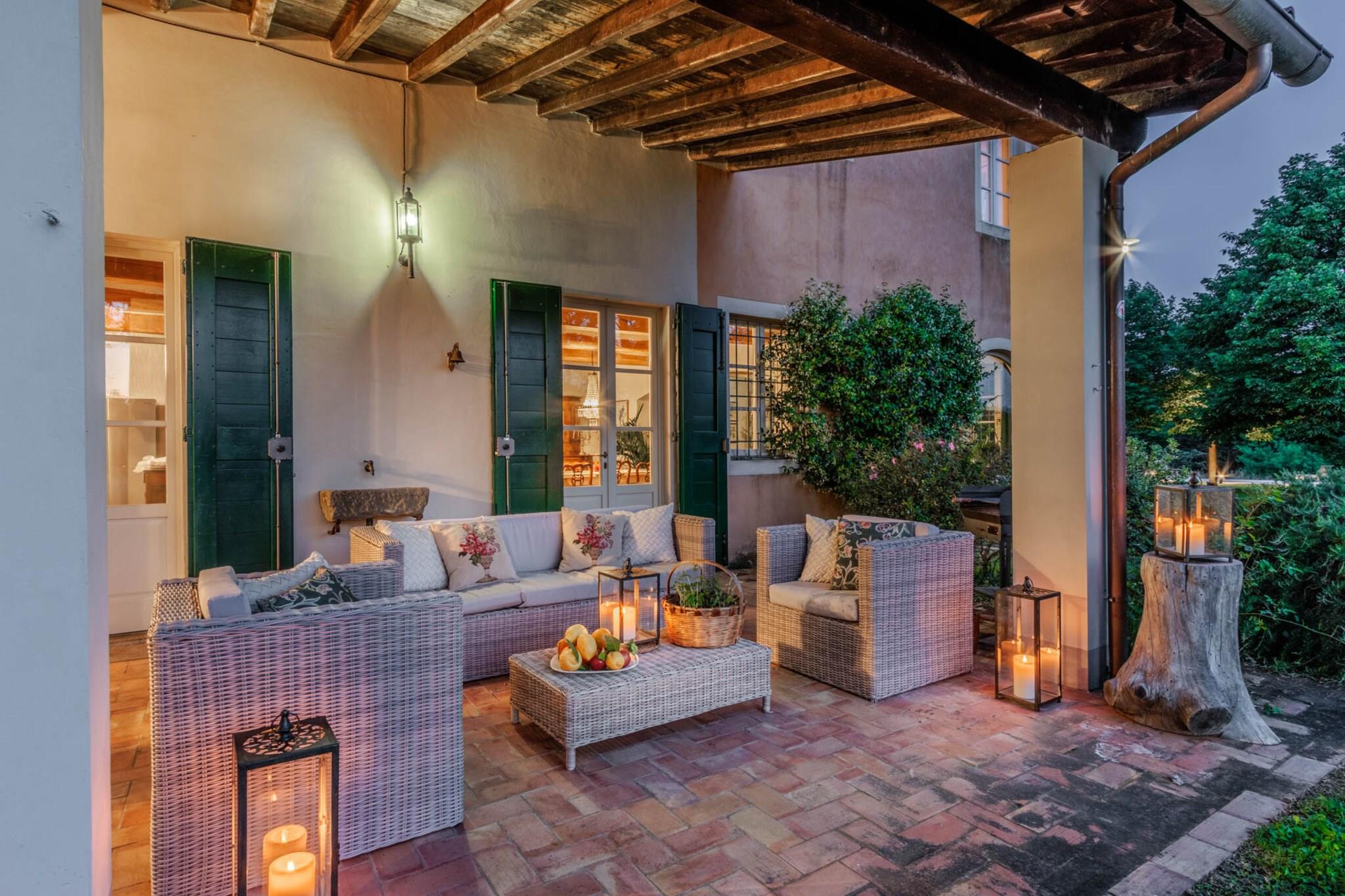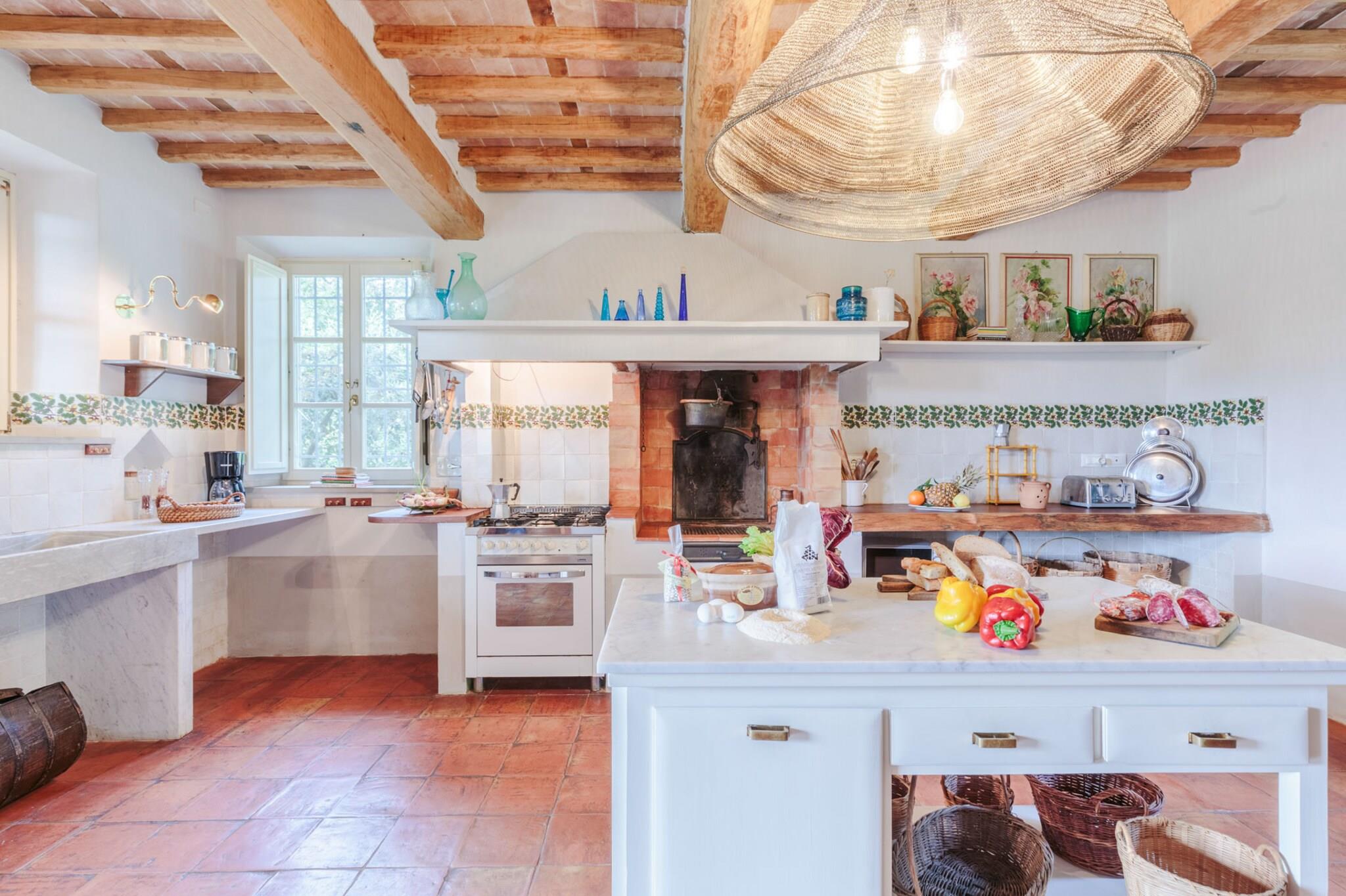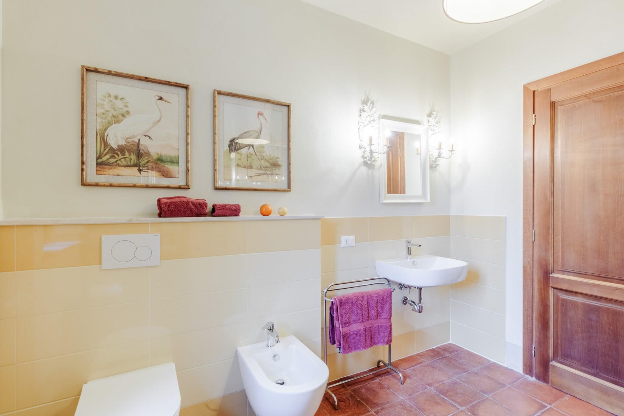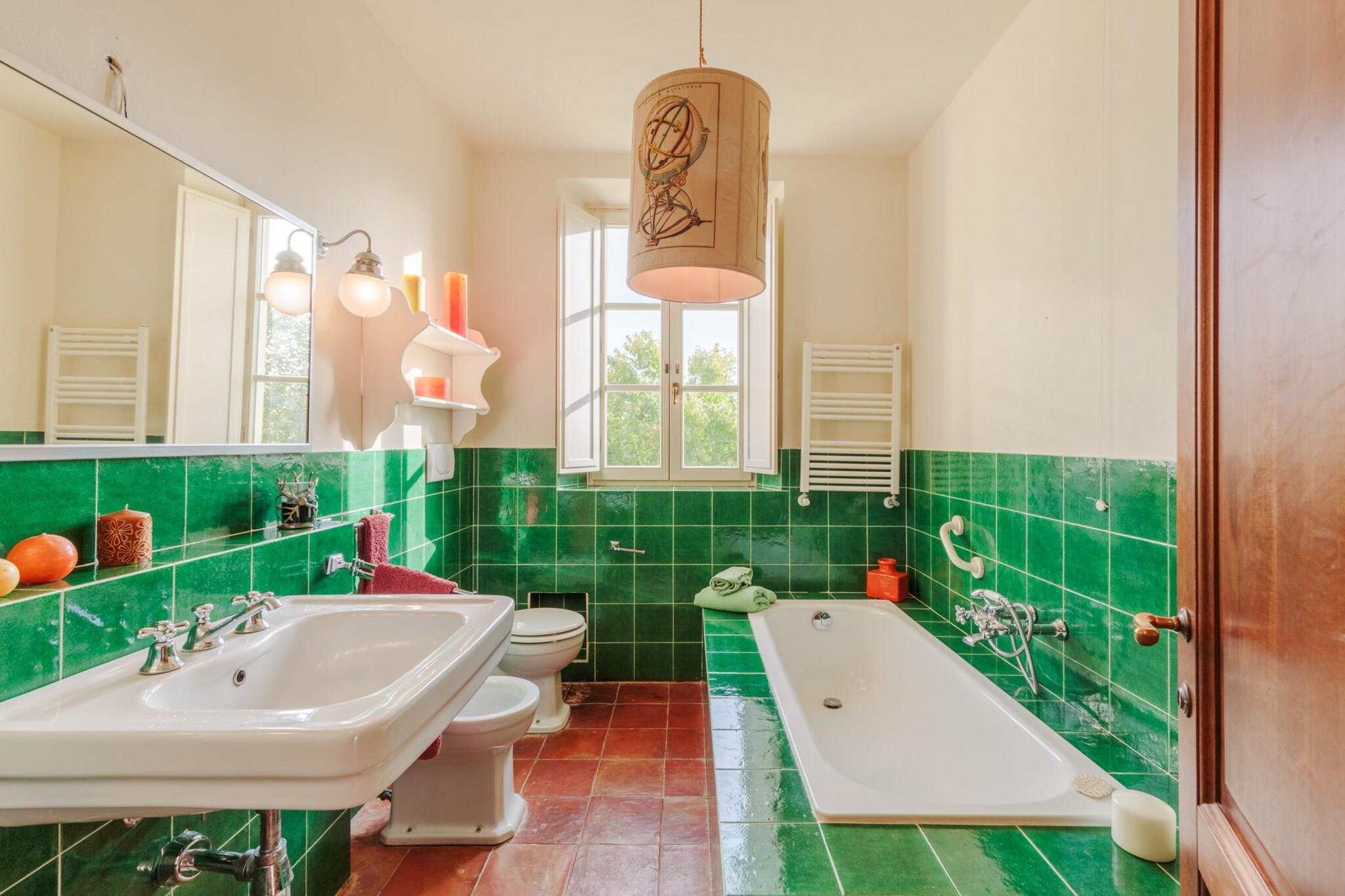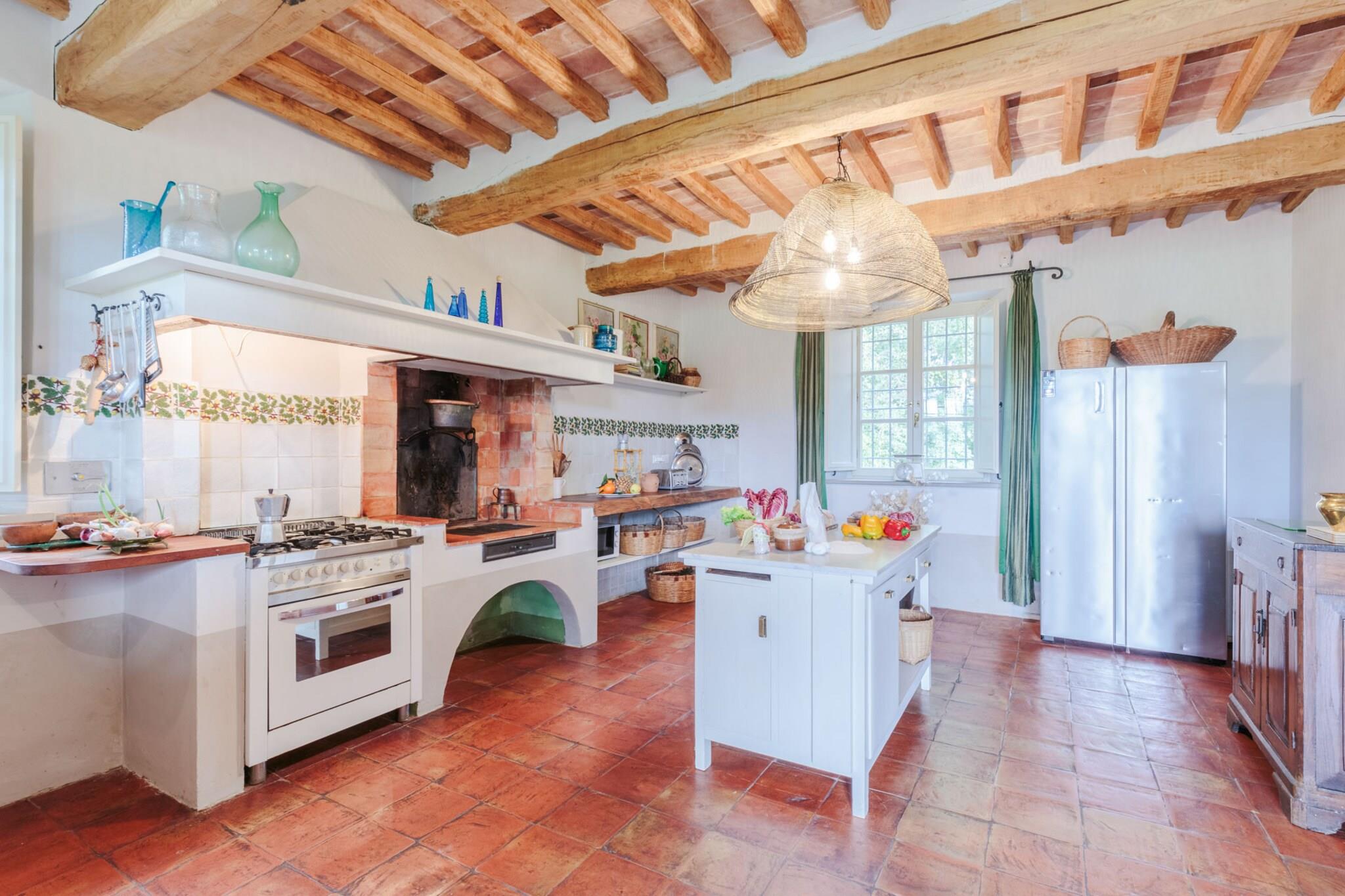Denna vackert restaurerade villa på landet är en del av en historisk egendom som ägs av en välkänd lokal vinmakare, inbäddad i de böljande kullarna nära Orentano. Omgiven av tusentals hektar orörd skog erbjuder villan en lugn och privat tillflyktsort med privat pool, vidsträckta trädgårdar och panoramautsikt över det toskanska landskapet. Det 300 m² stora huset har fyra rymliga sovrum och flera vardagsrum, med bekväm plats för upp till 8 gäster. Bottenvåningen har ett stort kök, matsal, mysigt vardagsrum med öppen spis och ett badrum. På övervåningen hittar du en mastersvit med eget badrum, ytterligare två sovrum och två badrum. Ett fjärde sovrum ligger på översta våningen. Utomhuslivet är en höjdpunkt här, med en stor veranda för måltider utomhus, en skuggig lounge och en terrass vid poolen som är perfekt för att koppla av med ett glas vin. Villan har ett idealiskt läge för att utforska Toscana och ligger inom bekvämt räckhåll från Lucca, Pisa, Florens, San Gimignano och Cinque Terre. Den närliggande byn Orentano erbjuder restauranger, pizzerior och butiker, medan den större staden Altopascio bara ligger en kort bilresa bort. Oavsett om du njuter av den lugna omgivningen, utforskar närliggande historiska städer eller njuter av lokal mat och vin, erbjuder denna villa en oförglömlig toskansk upplevelse. Obs: Turistskatt ska betalas på boendet.