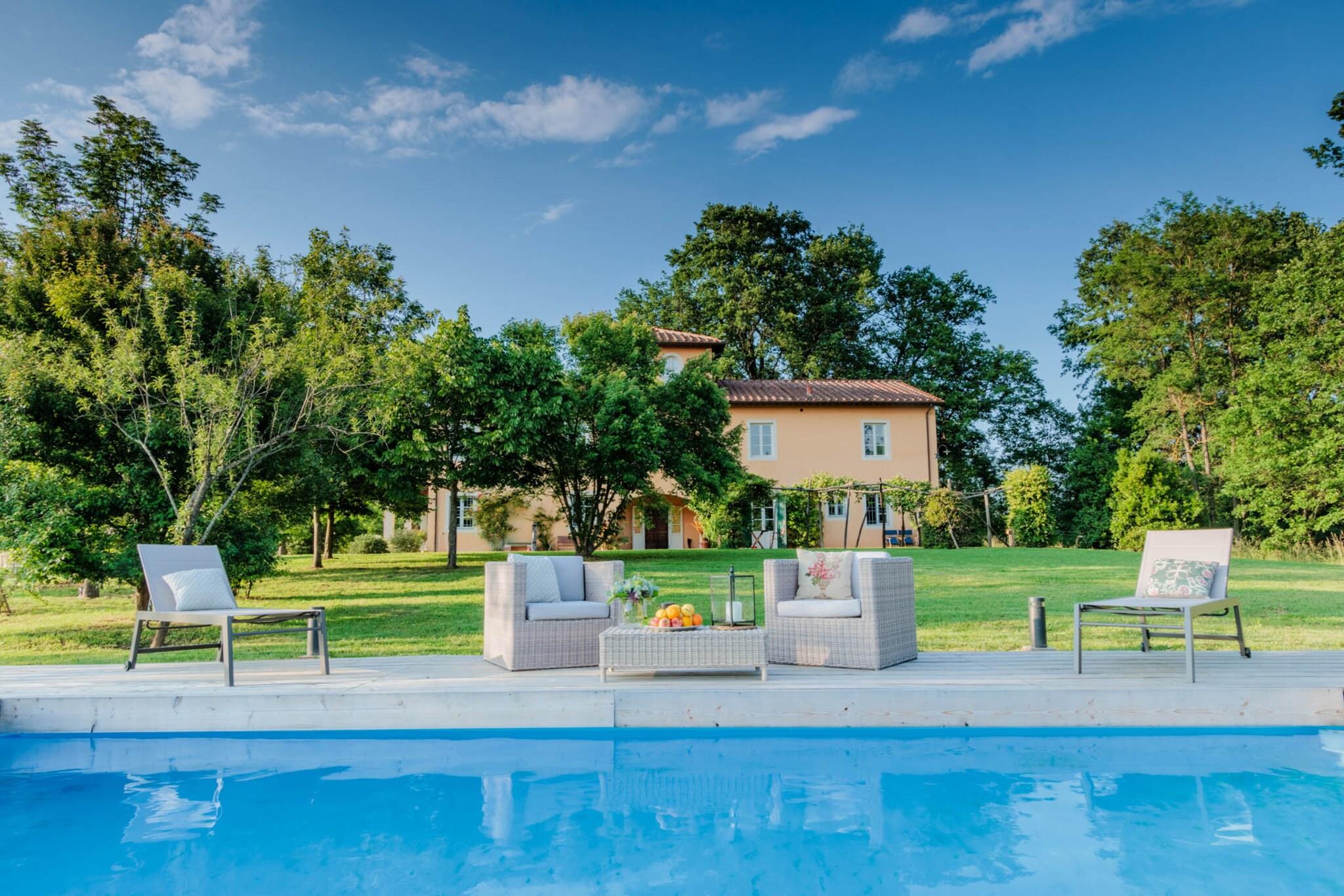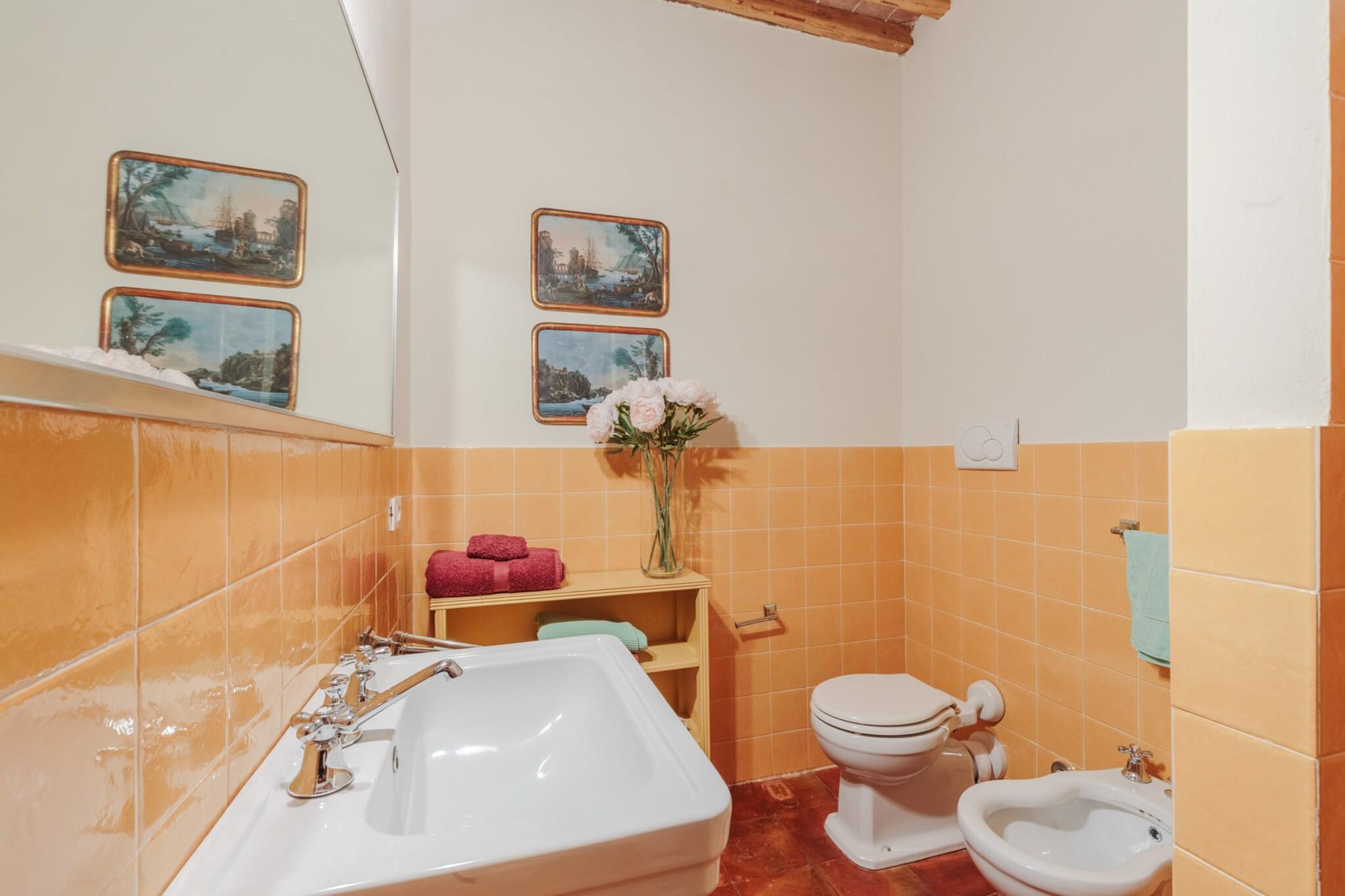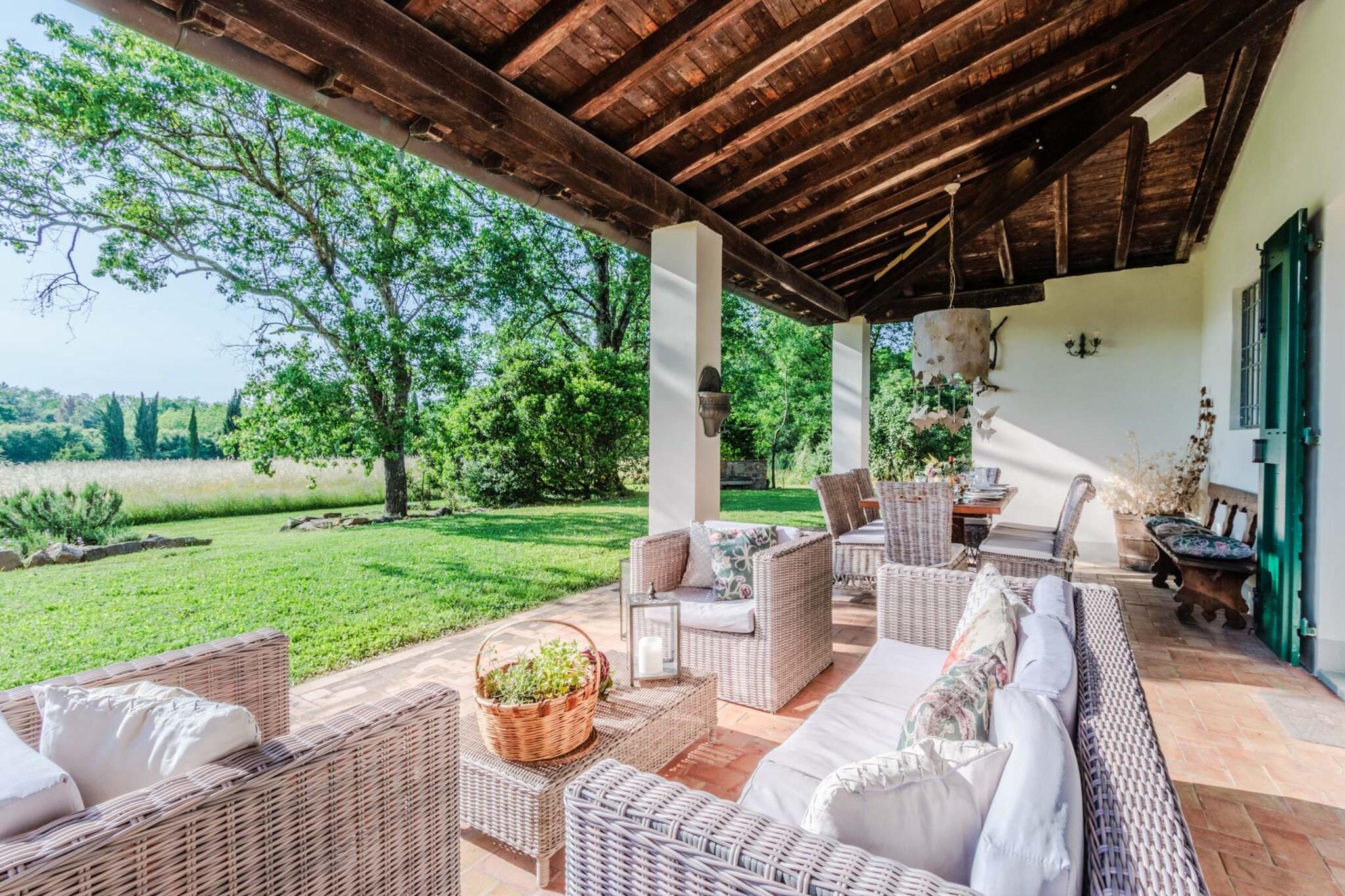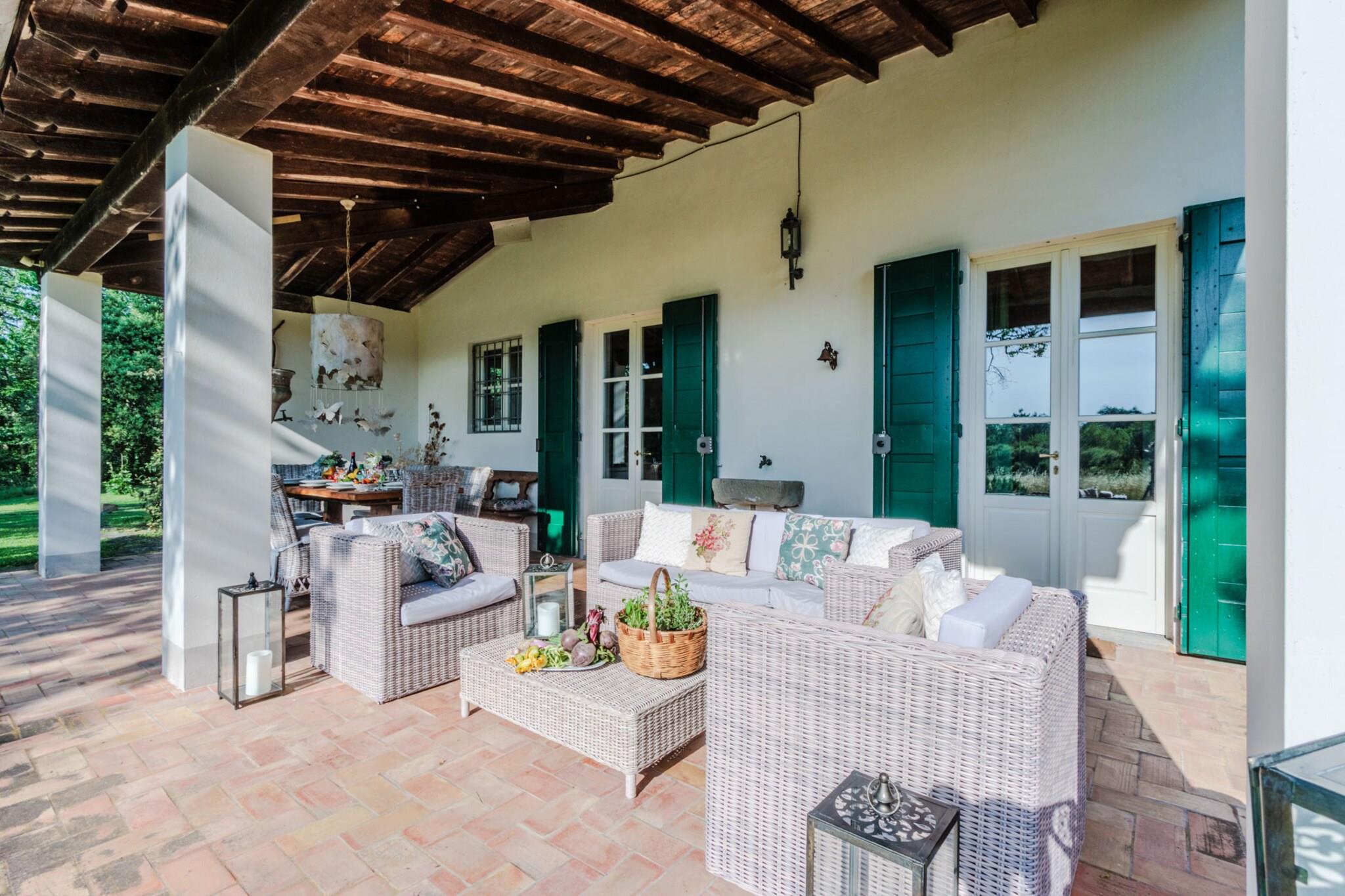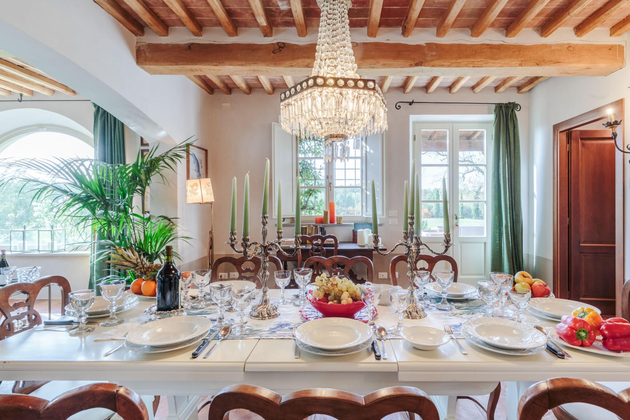 Denna vackert restaurerade villa på landet är en del av en historisk egendom som ägs av en välkänd lokal vinmakare, inbäddad i de böljande kullarna nära Orentano. Omgiven av tusentals hektar orörd skog erbjuder villan en lugn och privat tillflyktsort med privat pool, vidsträckta trädgårdar och panoramautsikt över det toskanska landskapet. Det 300 m² stora huset har fyra rymliga sovrum och flera vardagsrum, med bekväm plats för upp till 8 gäster. Bottenvåningen har ett stort kök, matsal, mysigt vardagsrum med öppen spis och ett badrum. På övervåningen hittar du en mastersvit med eget badrum, ytterligare två sovrum och två badrum. Ett fjärde sovrum ligger på översta våningen. Utomhuslivet är en höjdpunkt här, med en stor veranda för måltider utomhus, en skuggig lounge och en terrass vid poolen som är perfekt för att koppla av med ett glas vin. Villan har ett idealiskt läge för att utforska Toscana och ligger inom bekvämt räckhåll från Lucca, Pisa, Florens, San Gimignano och Cinque Terre. Den närliggande byn Orentano erbjuder restauranger, pizzerior och butiker, medan den större staden Altopascio bara ligger en kort bilresa bort. Oavsett om du njuter av den lugna omgivningen, utforskar närliggande historiska städer eller njuter av lokal mat och vin, erbjuder denna villa en oförglömlig toskansk upplevelse. Obs: Turistskatt ska betalas på boendet.