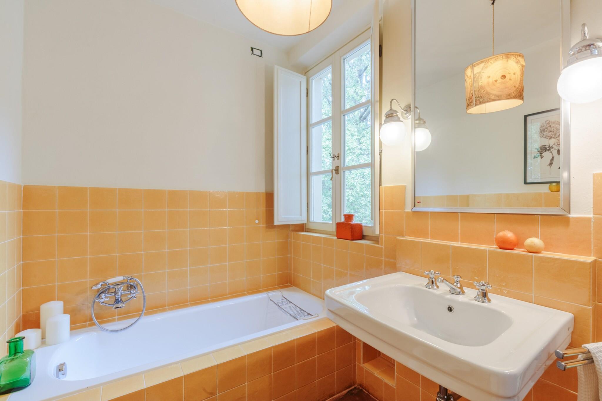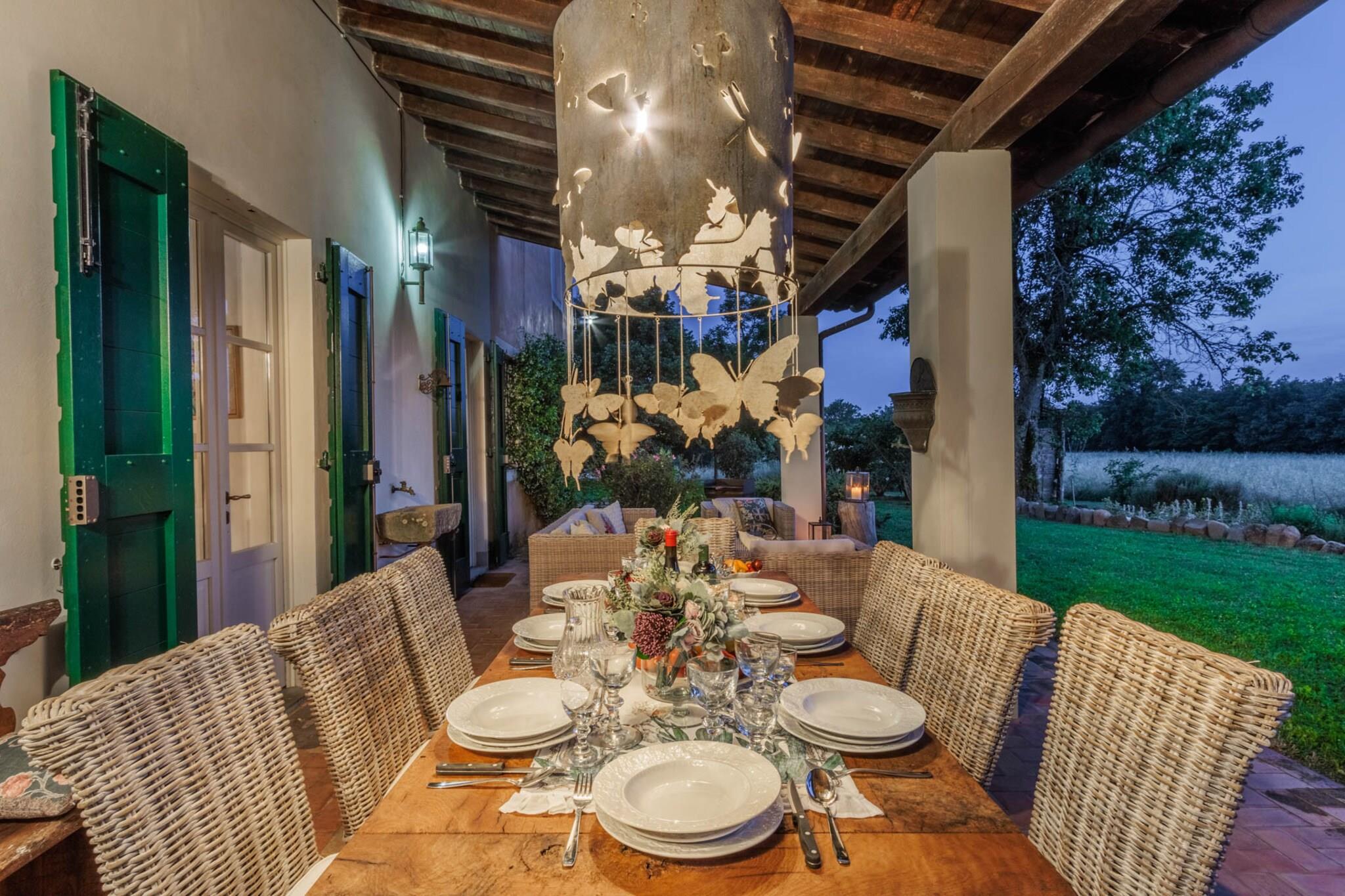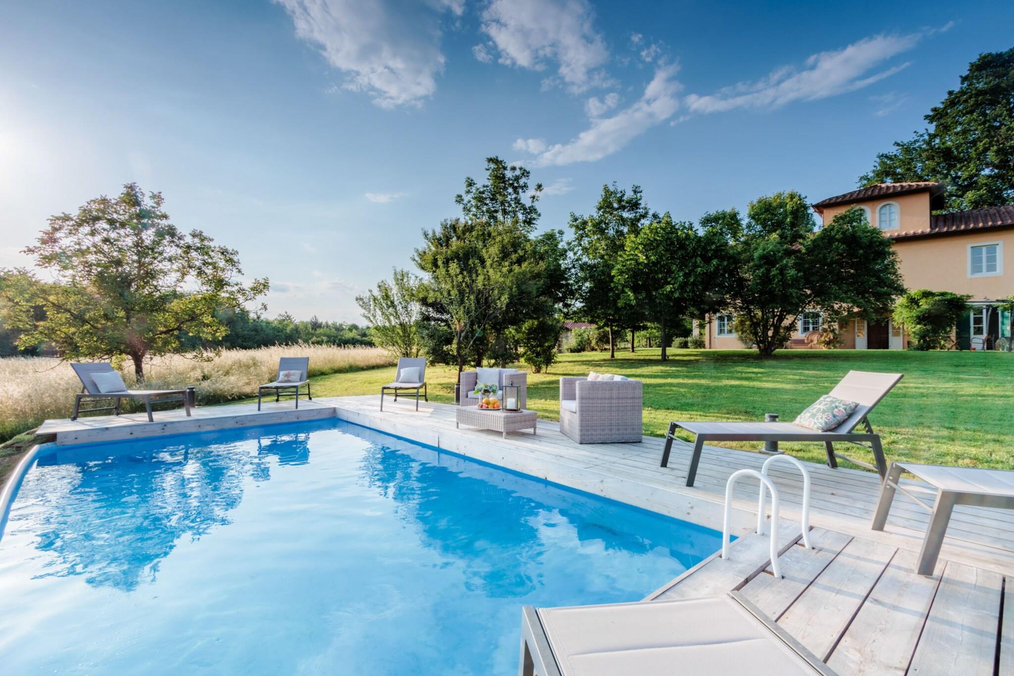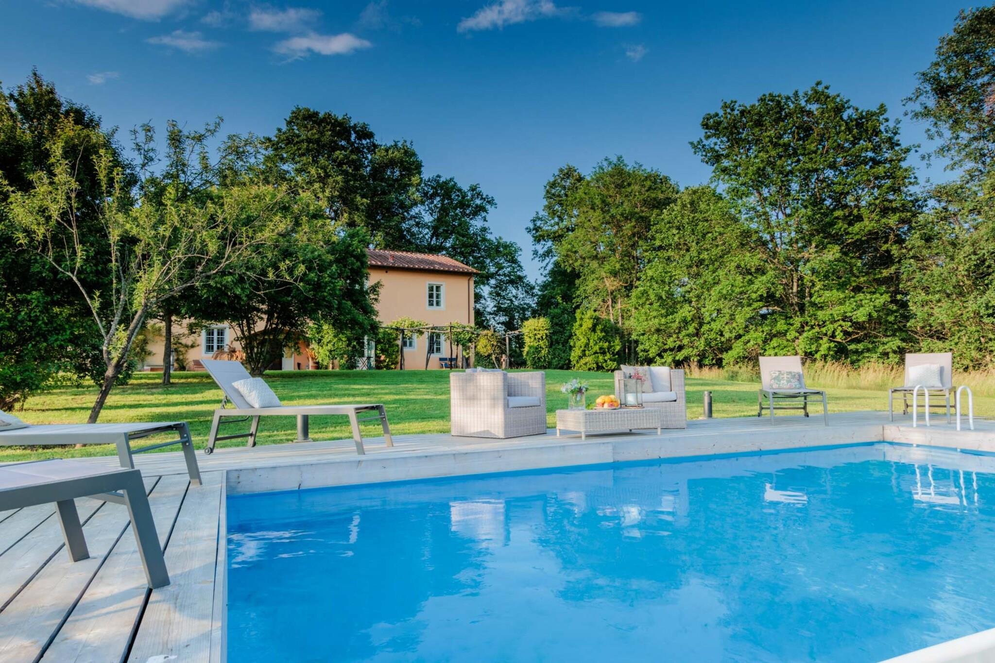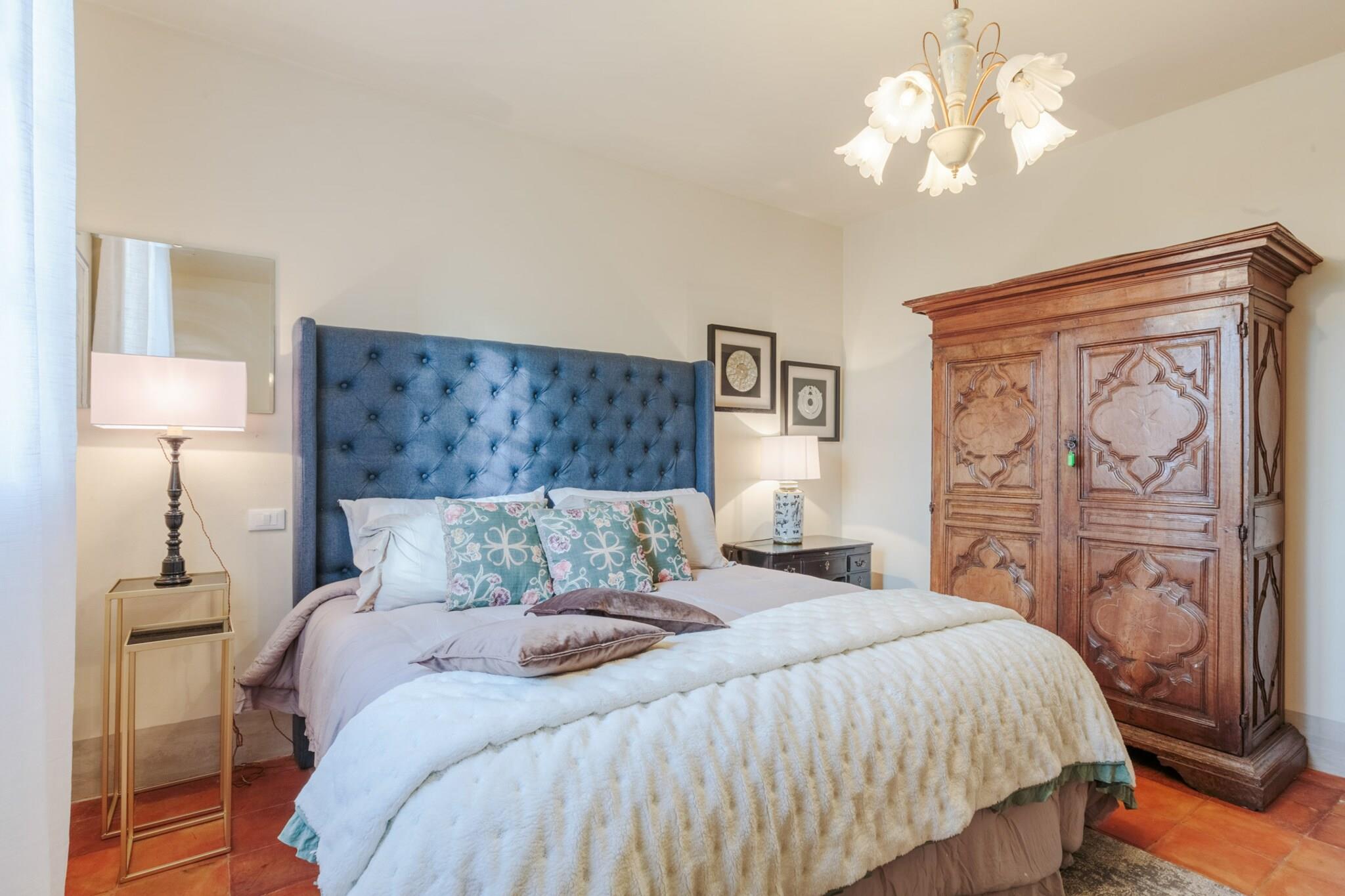 Denna vackert restaurerade villa på landet är en del av en historisk egendom som ägs av en välkänd lokal vinmakare, inbäddad i de böljande kullarna nära Orentano. Omgiven av tusentals hektar orörd skog erbjuder villan en lugn och privat tillflyktsort med privat pool, vidsträckta trädgårdar och panoramautsikt över det toskanska landskapet. Det 300 m² stora huset har fyra rymliga sovrum och flera vardagsrum, med bekväm plats för upp till 8 gäster. Bottenvåningen har ett stort kök, matsal, mysigt vardagsrum med öppen spis och ett badrum. På övervåningen hittar du en mastersvit med eget badrum, ytterligare två sovrum och två badrum. Ett fjärde sovrum ligger på översta våningen. Utomhuslivet är en höjdpunkt här, med en stor veranda för måltider utomhus, en skuggig lounge och en terrass vid poolen som är perfekt för att koppla av med ett glas vin. Villan har ett idealiskt läge för att utforska Toscana och ligger inom bekvämt räckhåll från Lucca, Pisa, Florens, San Gimignano och Cinque Terre. Den närliggande byn Orentano erbjuder restauranger, pizzerior och butiker, medan den större staden Altopascio bara ligger en kort bilresa bort. Oavsett om du njuter av den lugna omgivningen, utforskar närliggande historiska städer eller njuter av lokal mat och vin, erbjuder denna villa en oförglömlig toskansk upplevelse. Obs: Turistskatt ska betalas på boendet.