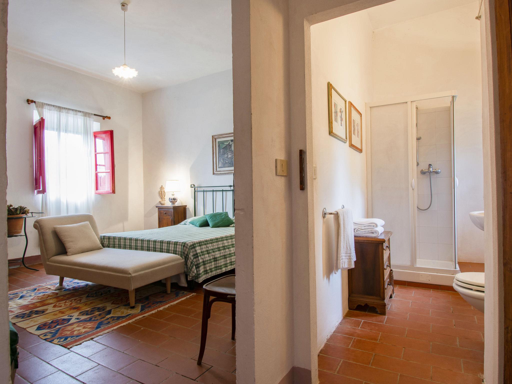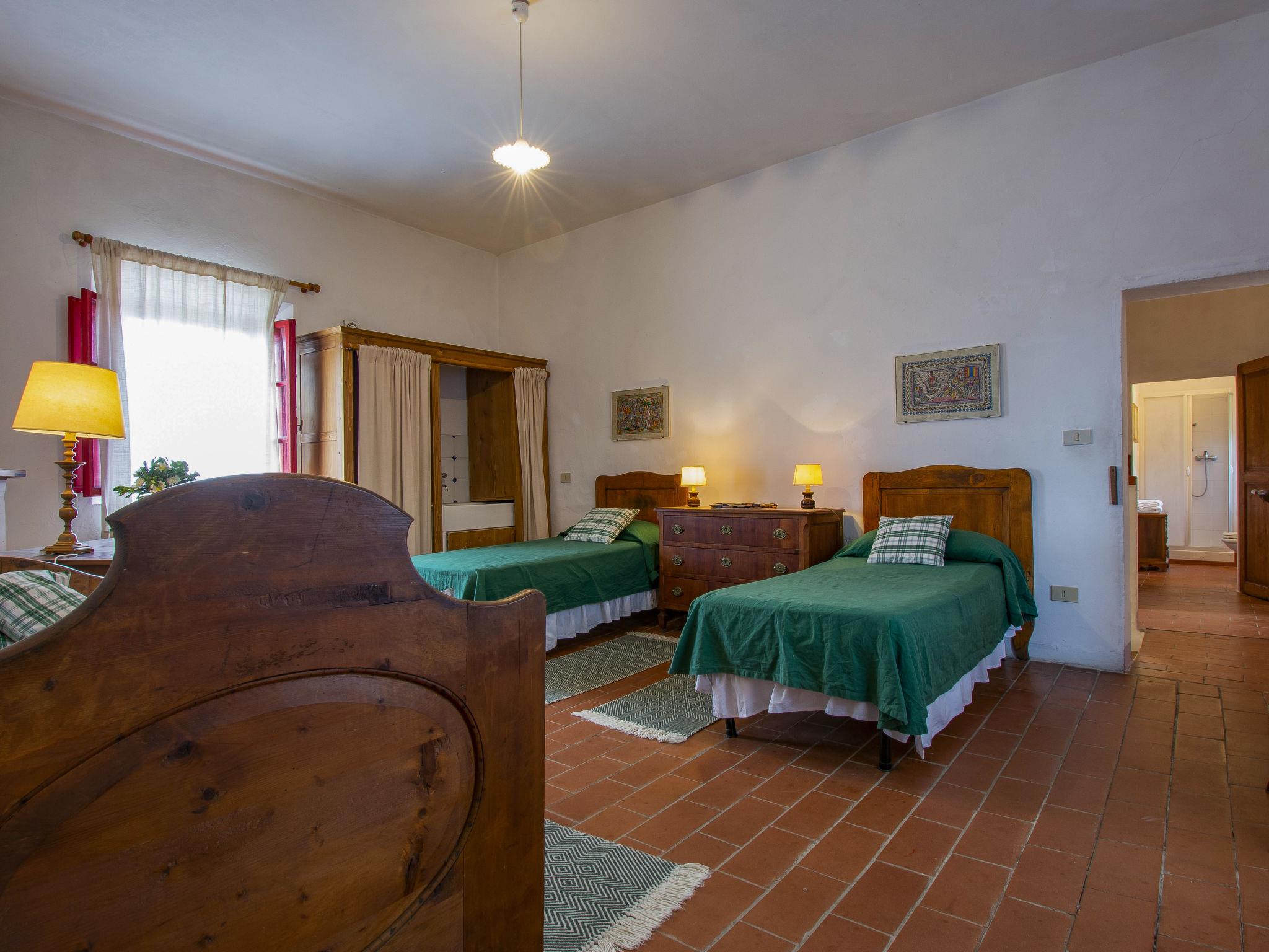6-room farmhouse 200 m2. Tasteful and cosy furnishings: living/dining room with open-hearth fireplace and digital TV. Exit to the garden. 1 double bedroom with shower/bidet/WC. Open kitchen (4 hot plates, oven, dishwasher, toaster, kettle, microwave, electric coffee machine). Exit to the garden. Upper floor: 2 double bedrooms with panoramic window. 1 large children's room with panoramic window with 3 beds and hand-basin. 2 showers/bidet/WC. Comfortable furnishings in the country house style. Porch. Terrace furniture, barbecue, deck chairs. Panoramic view of the valley. Facilities: mosquito net, children's high chair, hair dryer. Internet (WiFi, free). Please note: non-smoking house. Maximum 2 pets/ dogs allowed. Private entrance. IT050024B5EGE9X3B2