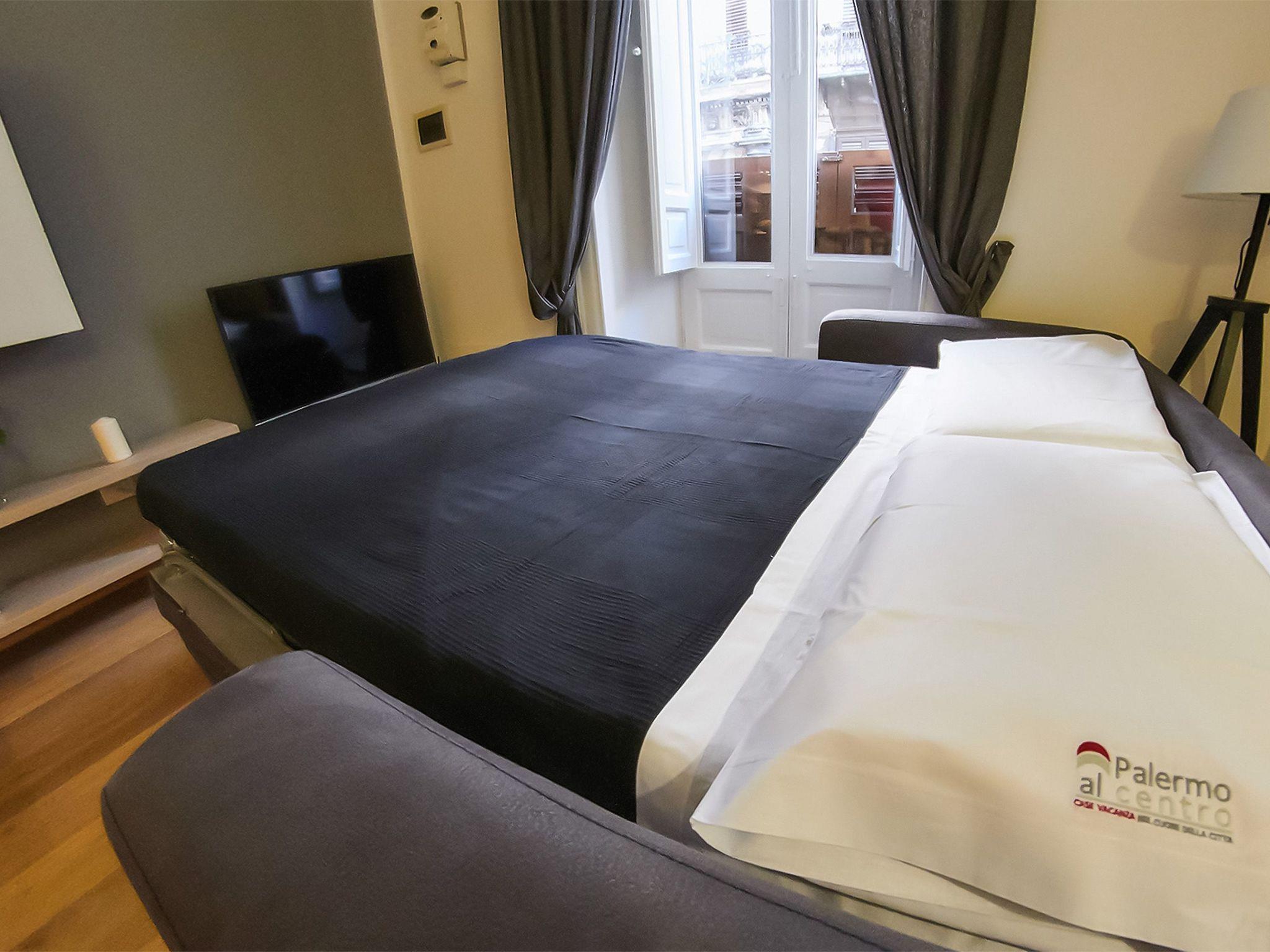 Flat Vittorio The Vittorio flat of Palermo Al Centro is located in a historic building in the centre of the city, a stone's throw from the main monuments of the Arab-Norman route that has been declared a UNESCO World Heritage Site. Palermo Al Centro's Vittorio flat combines tradition and modernity, recreating relaxing and evocative atmospheres that will make your stay unforgettable. Maintaining the fascinating references to the historicity of the building that houses it, the flat has been furnished in a modern style, with particular attention to detail so that our guests can enjoy every comfort. Reminiscences of the past and contemporary elements give the environment an elegant and exclusive style. The favourable location of the Vittorio flat will allow you to easily visit the city's main monuments. The flat has a private bathroom equipped with every comfort for your relaxation, a kitchen with everything you need to make your stay comfortable and a bright and cosy bedroom.