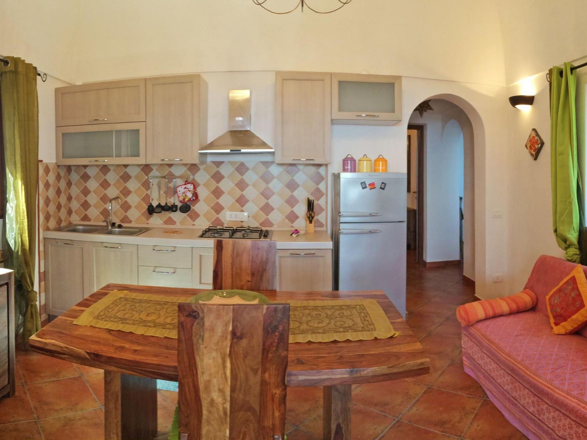 The dammuso comprises a large living room-kitchen with a sofa bed, a bedroom with a double bed, and a bathroom with a shower. The furnishing is very comfortable and well-kept.