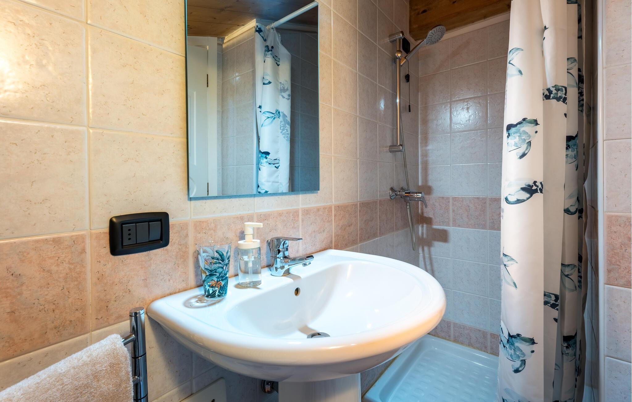 Badrum (nr. 1) - WC: Varmt och kallt vatten. Dusch och badkar