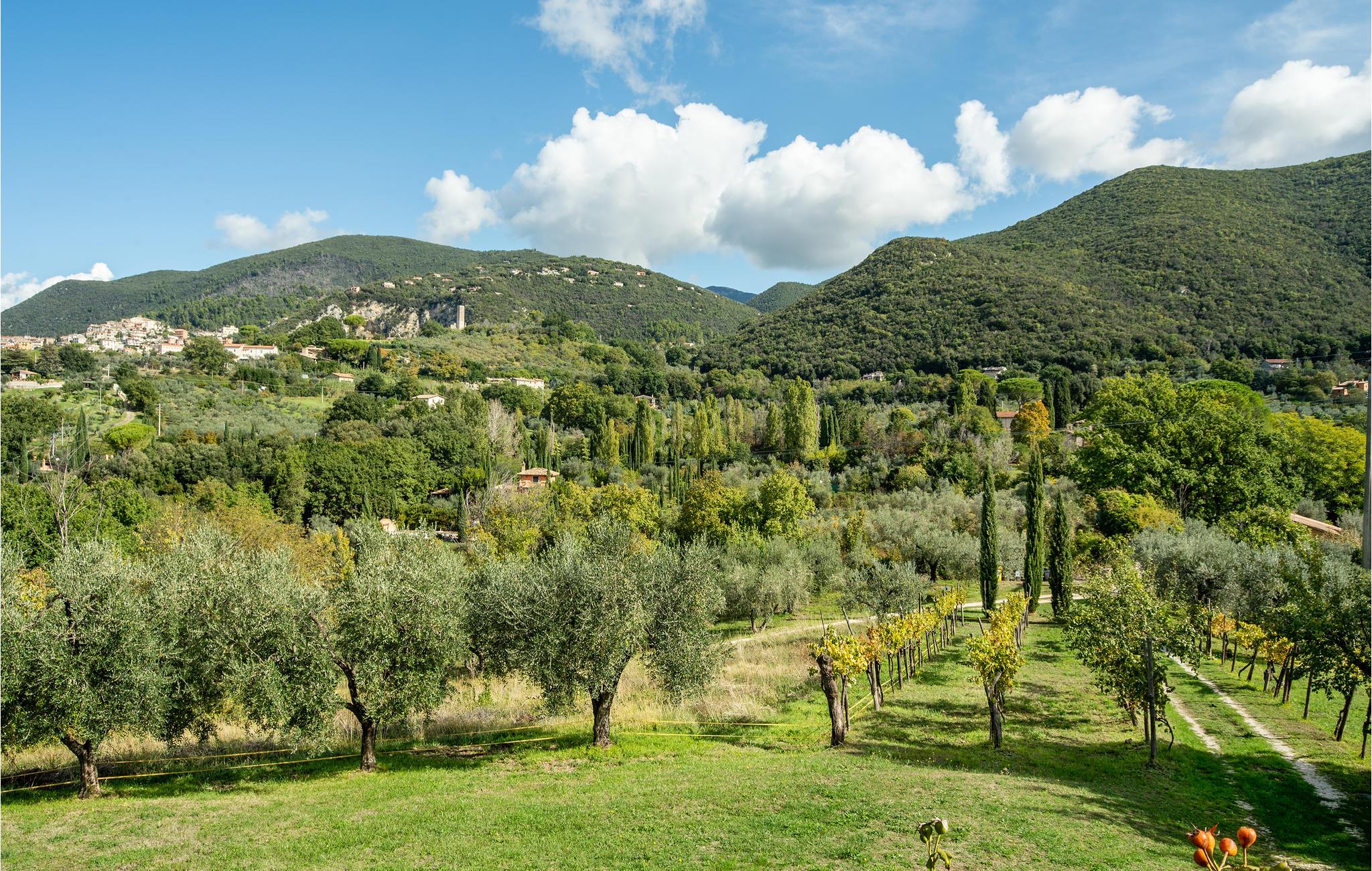 Antik lantgård i ett vackert kuperat läge, idealisk för utflykter till Monti Sabini-området med arkeologiska lämningar, klostret Farfa från 1100, Roccantica och Casperia. Njut av den vida utsikten över dalen och Monte Soratte i fjärran. Fastighet på ca 6 ha med olivlund och vingårdar, ängar och tallskog, sekelskiftesålderslånga almar och en liten fotbolls-/handbollsplan. På 200 m avstånd finns en bondgård som bebos av förvaltaren. Tillträde via 1,5 km oasfalterad väg. Ankomst endast kl. 16-20.