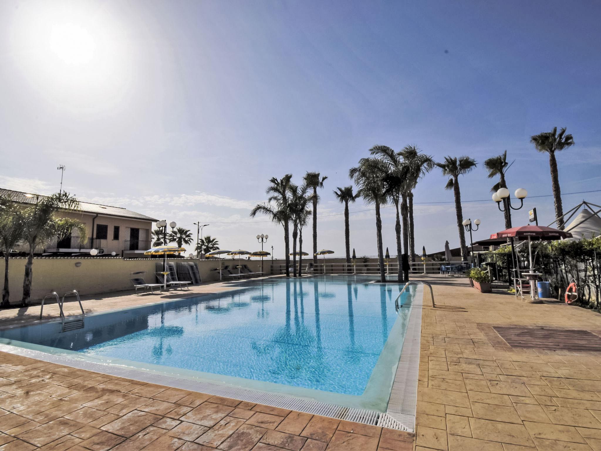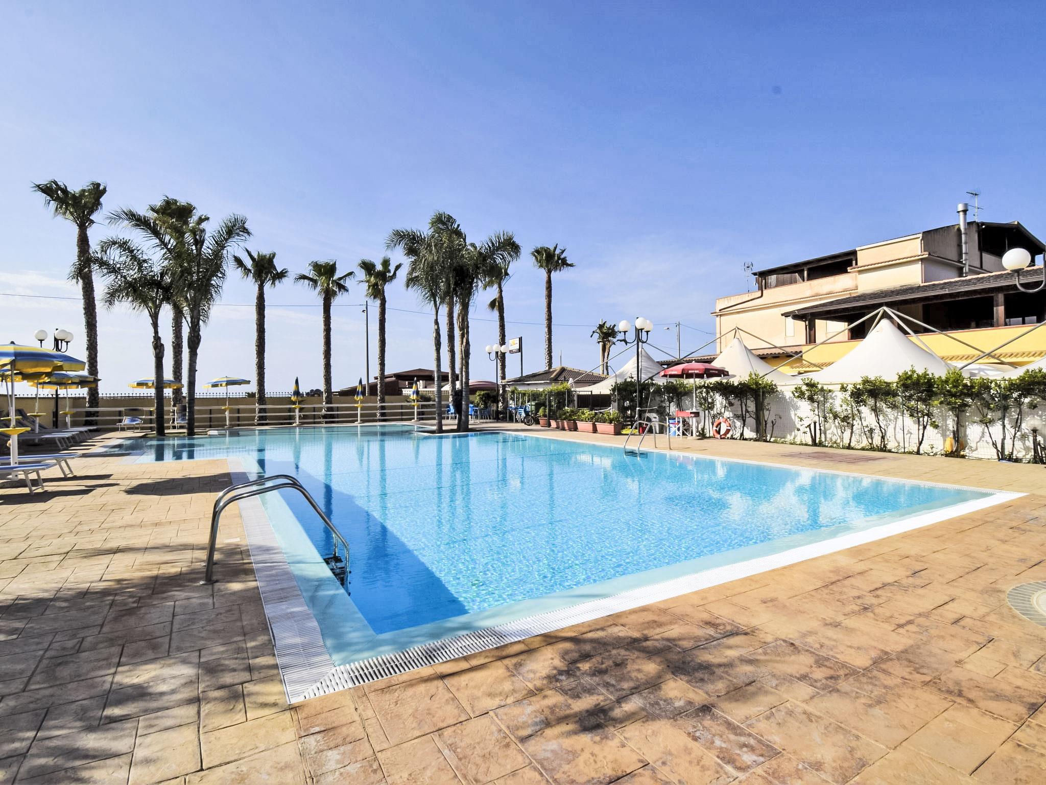 Please note: the bar and the restaurant are opened from May to September. Residence "L'Ancora". 19 houses in the residence. 3 km from the centre of Porto Empedocle, 11 km from the centre of Agrigento, from the sea, 10 m from the beach. For shared use: property 3'000 m2 (fenced), swimming pool (196 m2, depth 50 - 200 cm, seasonal availability: 01.Jun. - 30.Sep. pool opening hours: 09:00-19:00). Unconventional pool shape. Shower/WC in the pool area, garden furniture, pool maintenance by the owner/gardener. In the complex: reception, restaurant, bar, breakfast room, WiFi, table football, washing machine (extra) (for shared use), heating available only from 01.Dec. - 31.Mar.. Parking on the premises. Grocery 200 m, supermarket 3 km, restaurant, bar 5 m, bus stop 3 km, railway station "Agrigento" 18 km, ferry "Porto Empedocle" 3 km, sandy beach "Lido Azzurro" 10 m. Nearby attractions: Scala dei Turchi Patrimonio Unesco 3 km, Cattedrale di Sale di Realmonte 4.5 km, Casa Natale di Luigi Pirandello 6 km, Valle dei Templi di Agrigento 10 km, Piazza Armerina Villa Romana del Casale 102 km, Catania 176 km. Well-known lakes can easily be reached: Lago Arancio 78 km. Please note: car recommended.