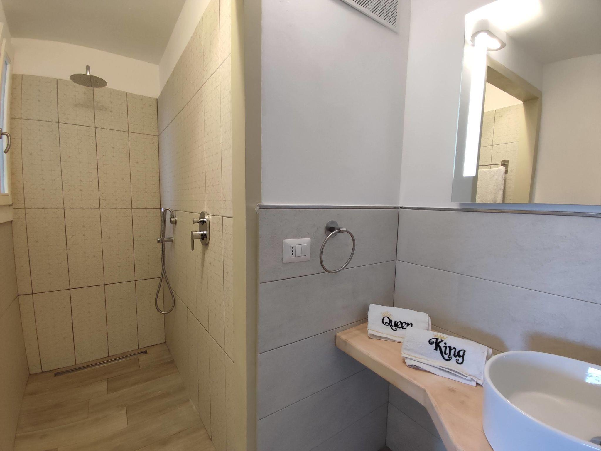 4-room villa 90 m2 on 2 levels. Modern and cosy furnishings: living/dining room with dining table and TV. Exit to the garden, to the terrace. Kitchenette (oven, dishwasher, 4 induction hot plates, electric coffee machine, Capsules for coffee machine (Nespresso)). Shower/bidet/WC. Underfloor heating, boiler. On the lower ground floor: 1 room with Dressing room with 1 double bed and shower/WC. Exit to the terrace. 1 room with 1 double bed and shower/WC. Exit to the terrace. 1 room with Dressing room with 1 double bed. Exit to the terrace. Terrace 33 m2, small terrace 14 m2. Terrace furniture. Very beautiful distant view of the sea and the resort. Facilities: washing machine, iron, hair dryer. Internet (WiFi, free). Please note: non-smoking house. Private entrance. When there are less than the maximum number of guests staying at the property, not all of the bedrooms will be available for use. IT090084C2000R3352