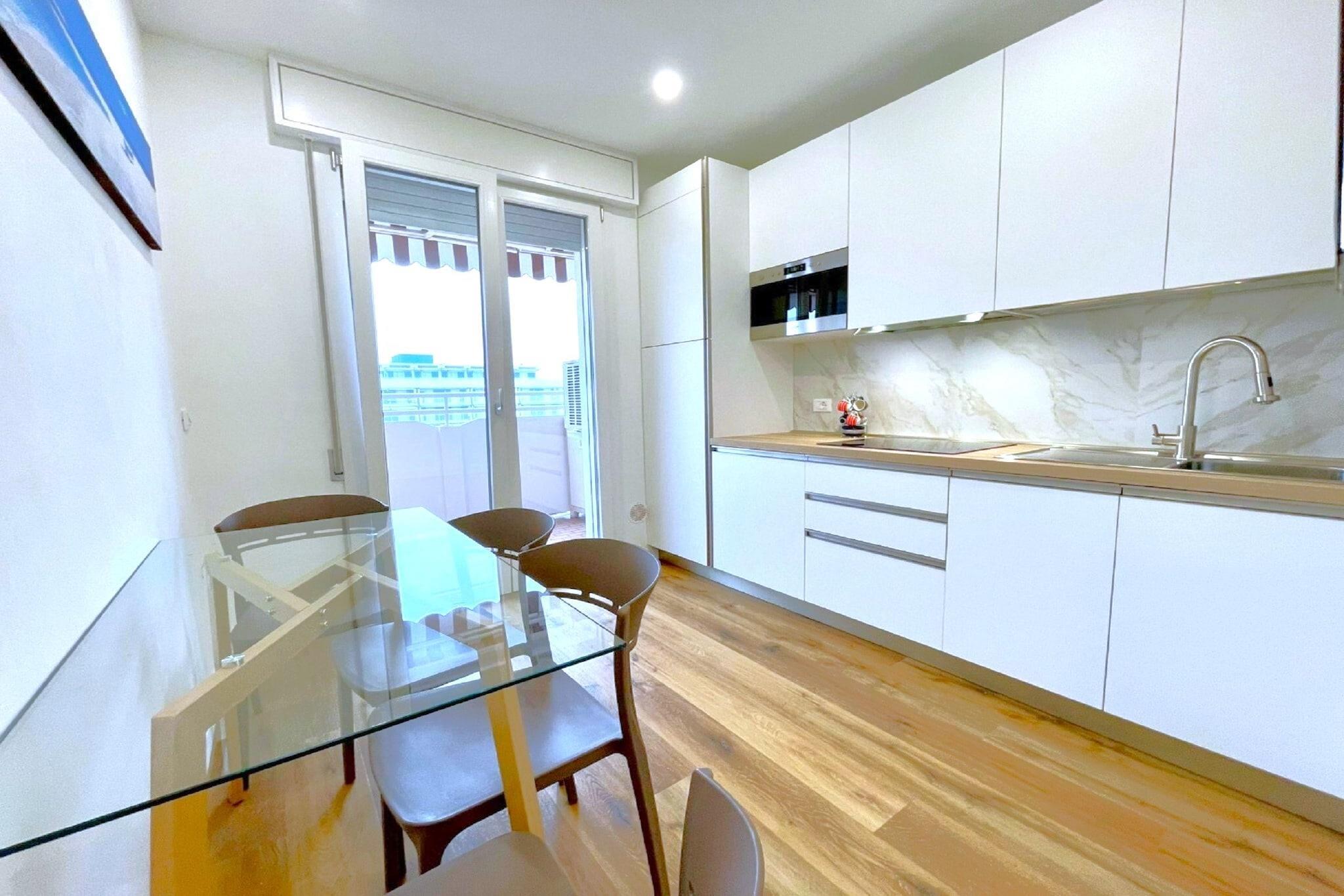 Denna rymliga lägenhet ligger på 7:e våningen och erbjuder en perfekt miljö för din vistelse. Det stora köket är välutrustat med TV, spis, mikrovågsugn, diskmaskin, tvättställ och tvättmaskin, vilket säkerställer att du har alla moderna bekvämligheter för att känna dig som hemma. Det är ett bra utrymme för att laga mat eller njuta av lite stillestånd efter en hektisk dag. Sovrummet har en dubbelsäng och en våningssäng, vilket gör det lämpligt för familjer eller grupper. Rummet har även en TV för underhållning, så att du kan koppla av bekvämt. Badrummet är komplett med dusch, handfat, toalett och bidé, och erbjuder allt du behöver för en uppfriskande start på dagen. Gå ut på balkongen för att njuta av den friska luften och utsikten över det omgivande området. Lägenheten är utrustad med luftkonditionering, vilket garanterar en sval och bekväm vistelse. För extra bekvämlighet finns även parkering. Oavsett om du är här för affärer eller nöje, kombinerar denna lägenhet praktisk och komfort för en njutbar upplevelse.