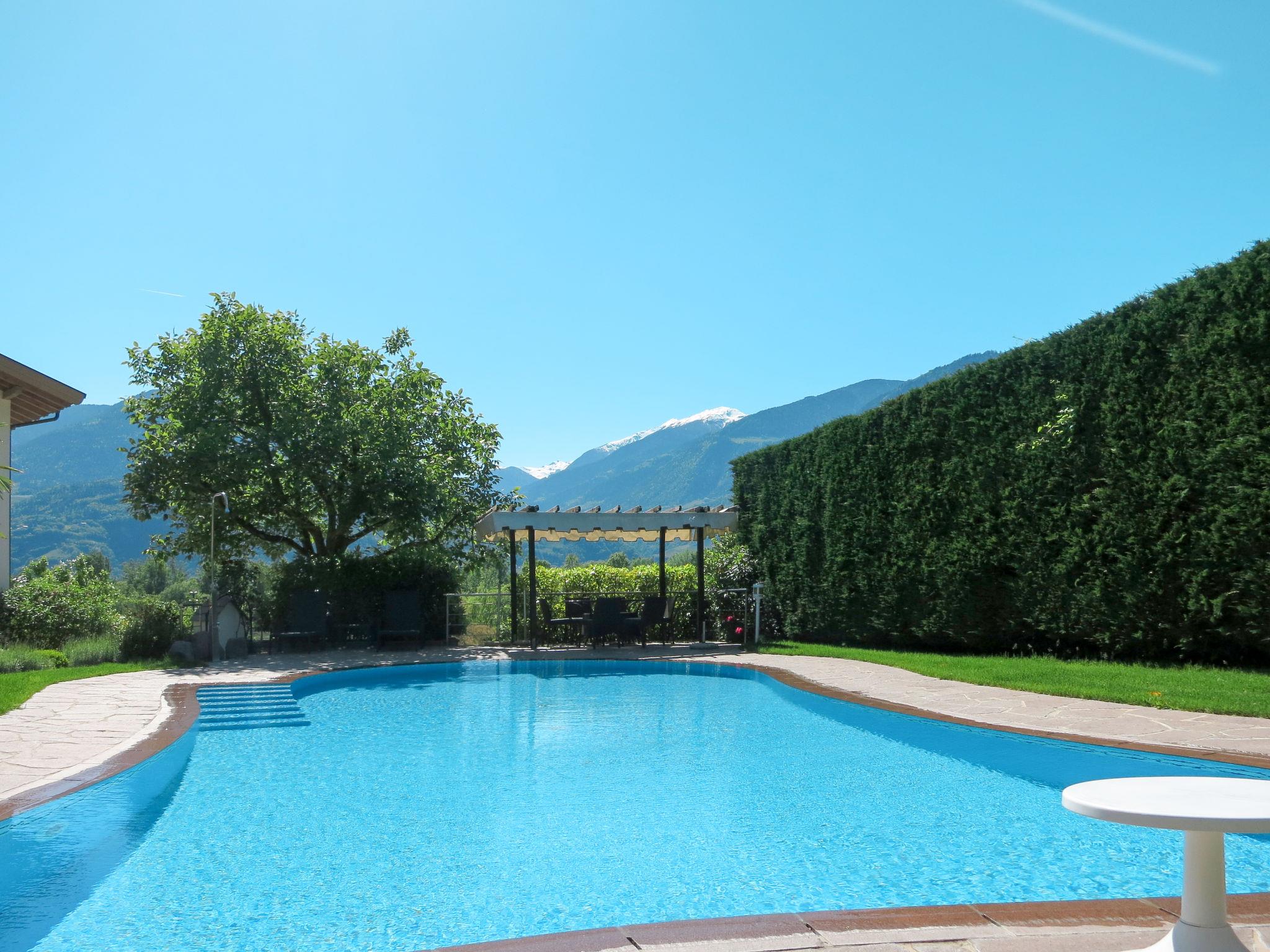 Cosy, comfortable residence "Graf Volkmar", 270 m a.s.l., 4 storeys. 12 apartments in the residence. On the outskirts, 1 km from the centre of Postal / Burgstall, 10 km from the centre of Merano / Merano, on a slope, in the countryside, south-west facing position. For shared use: property 2'000 m2, well-kept terraced garden with lawn, swimming pool, indoor pool (11 x 6 m, seasonal availability: 01.Apr. - 15.Oct.). Table tennis, children's playground. In the complex: reception, bar, breakfast room, sauna, steam room, hot tub (all included), storage room for bicycles. Linen change weekly. Towel change 2 times per week. Beverage service and breakfast possible on request (extra). Parking at the house on the premises, communal covered parking at the house. Supermarket 1.5 km, bus stop 150 m, railway station "Lana-Postal (Bolzano-Merano)" 2.4 km, outdoor swimming pool 2.5 km, thermal baths "Merano" 7 km. Golf course (9 hole) 5 km, cycle lane 50 m, cable car 5 km, mountain railway 2.6 km. Nearby attractions: Trauttmansdorff 5 km, Merano 7 km, Messner Mountain Museum 22 km, Bolzano 25 km. Well-known ski regions can easily be reached: Meran 2000 8 km, Val Senales / Schnalstal 55 km, Val Ultima Schwemmalm Area / Schnalstal 27 km. Hiking paths: Verano / Vöran 2.6 km, Monte San Vigilio / Vigiljoch 5 km. Please note: baby equipment on request (extra).