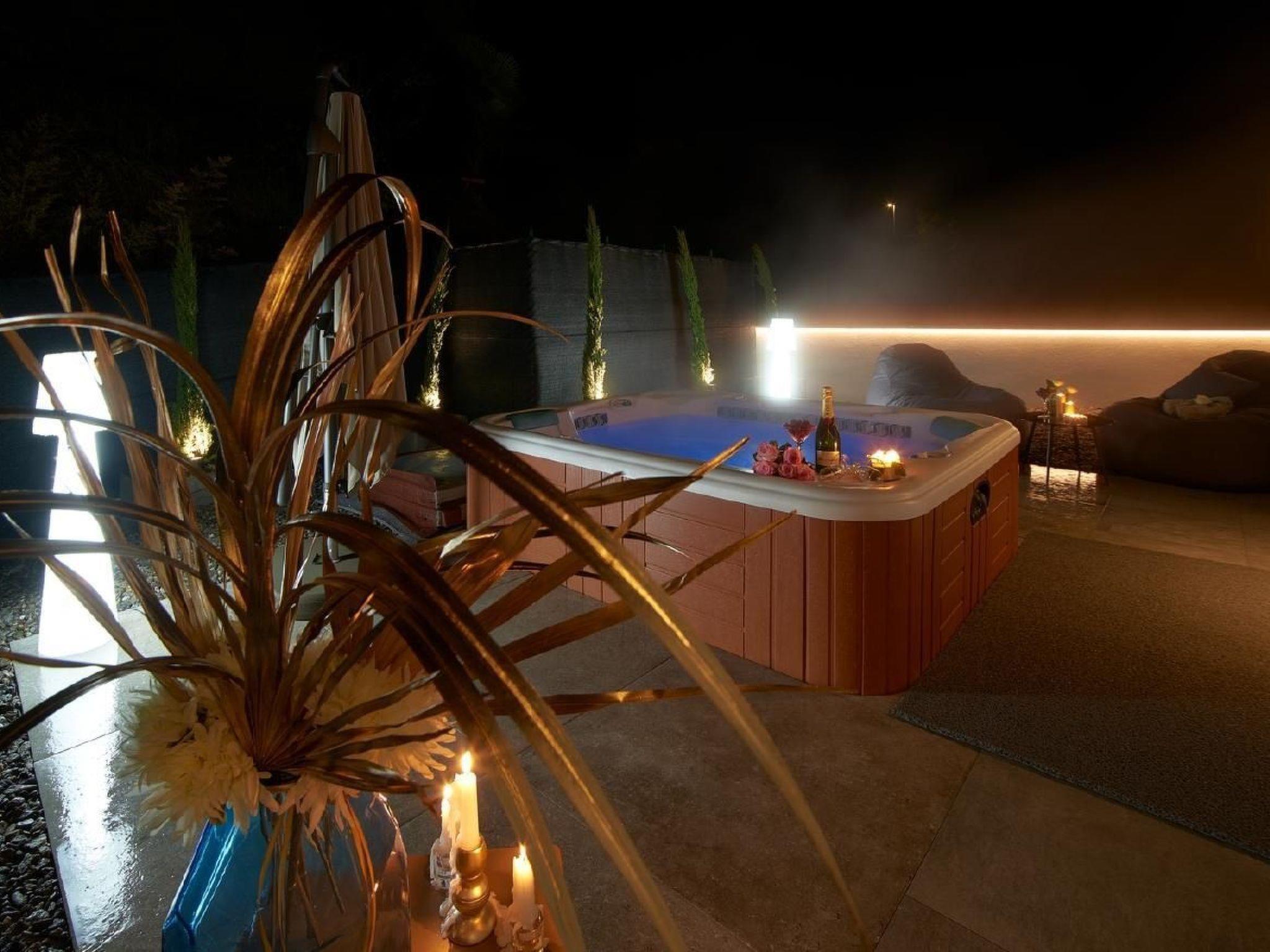 Due to the steep slope on which the building was constructed, there is a large outdoor wellness area on the mountain side of the penthouse with a whirlpool for five people, various relaxation options and a barbecue area where guests can barbecue all year round.