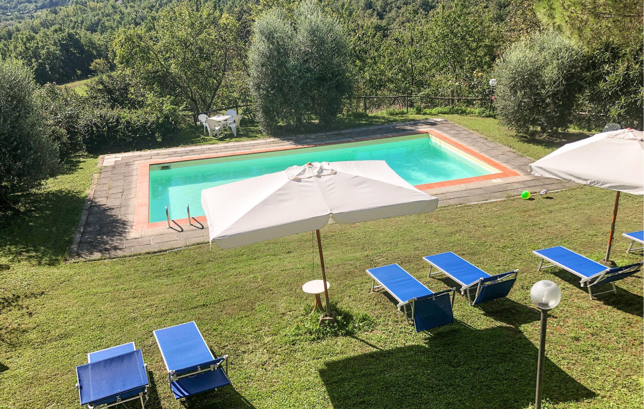 Ladda batterierna mitt på den toskanska landsbygden, där detta charmiga semesterhus med gott om utrymme, avskildhet och autentisk lanthuskänsla väntar på er. Se fram emot den varma atmosfären i de traditionella materialen i inredningen. De synliga träbjälkarna, den stora öppna spisen och möblerna med rustik stil skapar en inbjudande atmosfär. Koppla av i vardagsrummet på de bekväma möblerna eller tillbringa mysiga kvällar med ett glas vin.