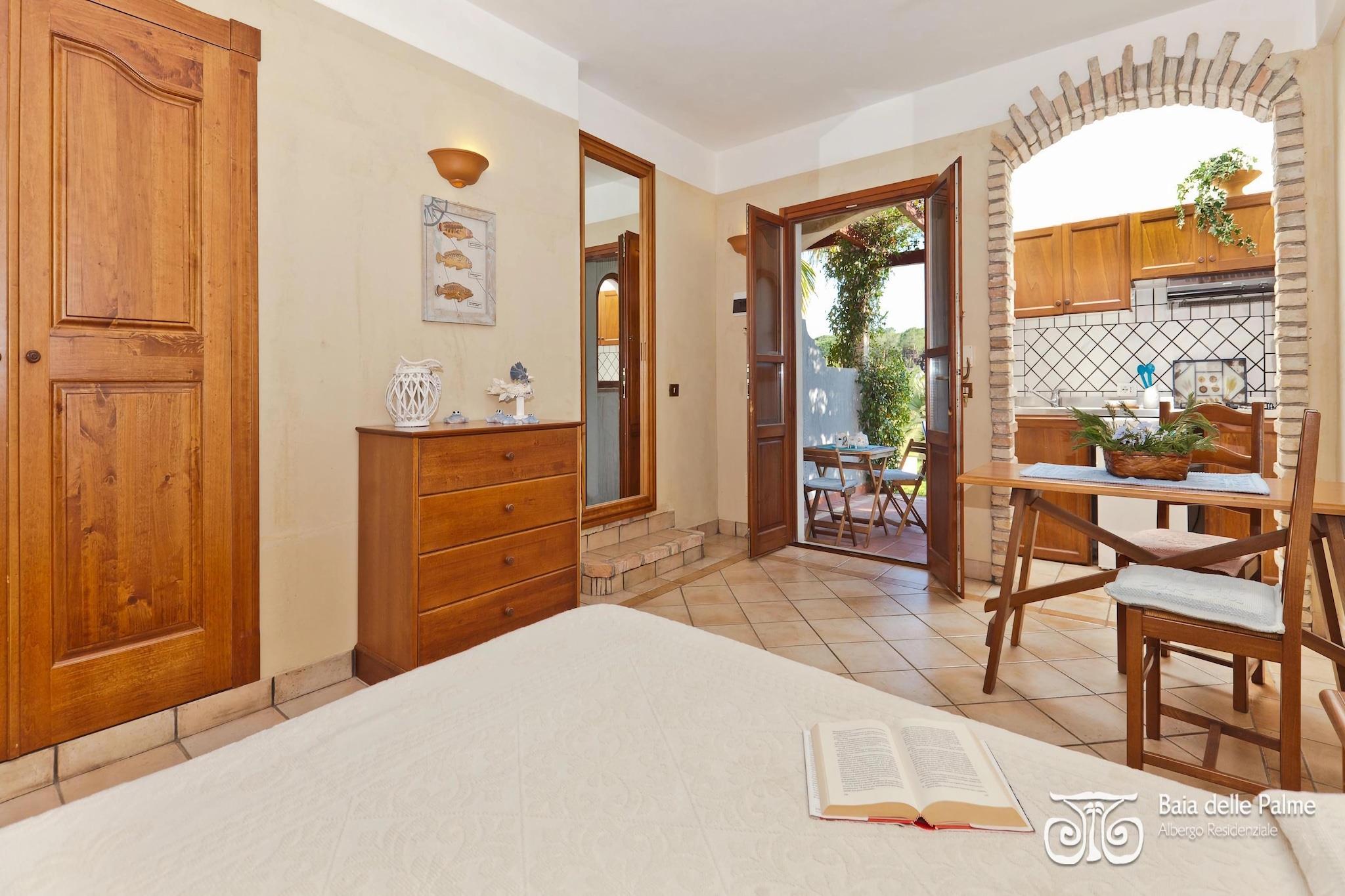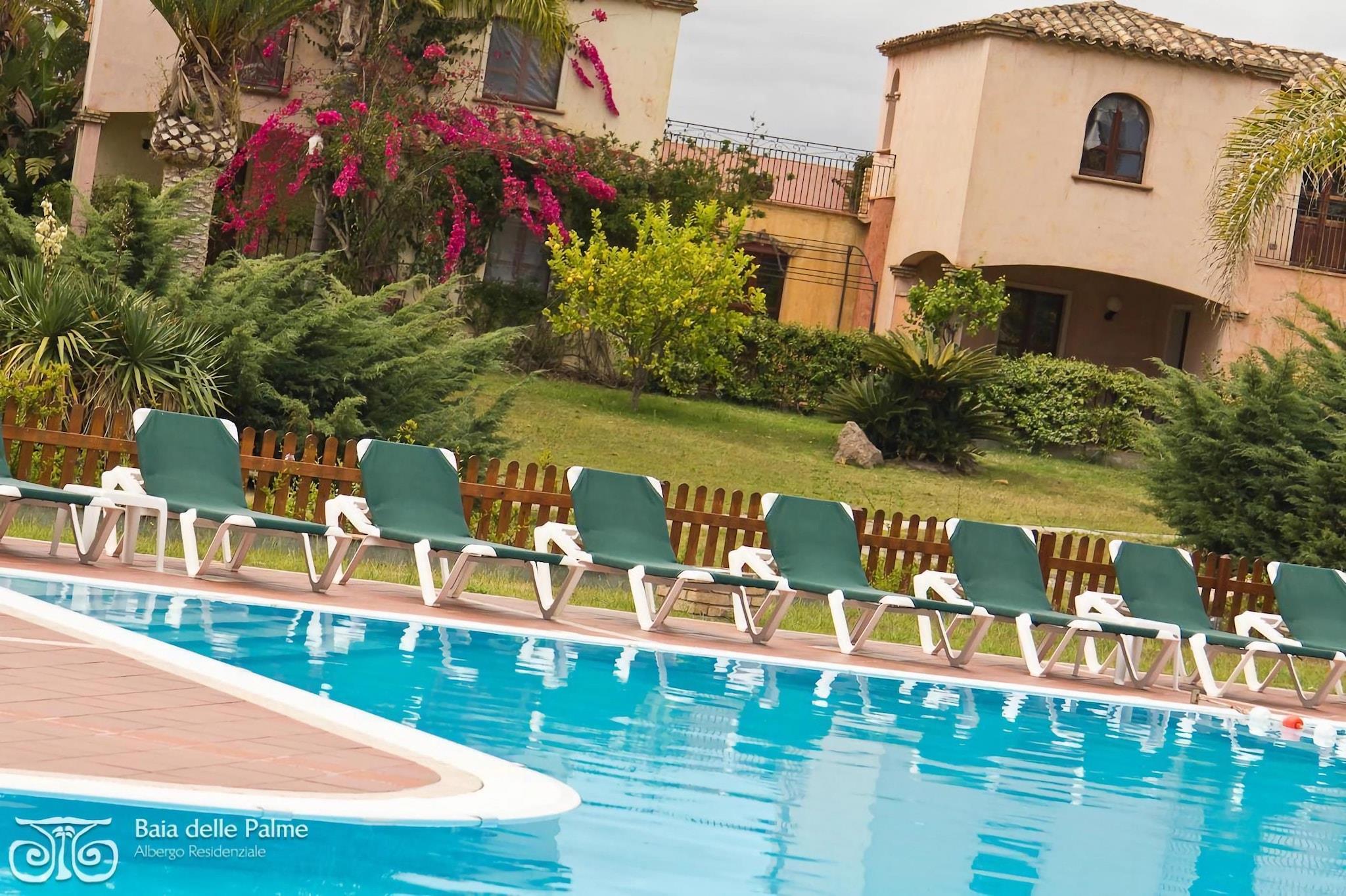 Baia delle Palme Residence ligger i en stor park omgiven av palmer, bakom vilken den kostnadsfria stranden Cala Brianza ligger, bara 250 meter från residenset. Stranden Foxi "e Sali ligger bara 800 meter bort. Residenset ligger i ett lugnt och privat läge och har en saltvattenpool med en stor solterrass, en bar (som drivs av en extern operatör) och ett rymligt relaxområde. Residenset ligger 3 km från Pula och cirka 40 km från Cagliaris hamn och flygplats. En golfbana och ett ridhus finns i närheten. Lägenheterna är arrangerade i en halvcirkel runt poolen och finns tillgängliga på bottenvåningen med terrass eller på första våningen med balkong, båda utrustade med bord och stolar. Alla lägenheter har utsikt över parken. Poolen med barnavdelning är öppen från 13 april till 25 oktober, om vädret tillåter. Anmärkningar: Turistskatt betalas kontant på plats. SLUTSTÄDNING (per lägenhet): Ingår. Pentry och avfallshantering är gästens ansvar eller mot en extra avgift på 50,00 EURO. WiFi endast på balkongen eller uteplatsen. TRANSFÖRING: på begäran. Rörlighet: Ej lämplig för personer med begränsad rörlighet.
