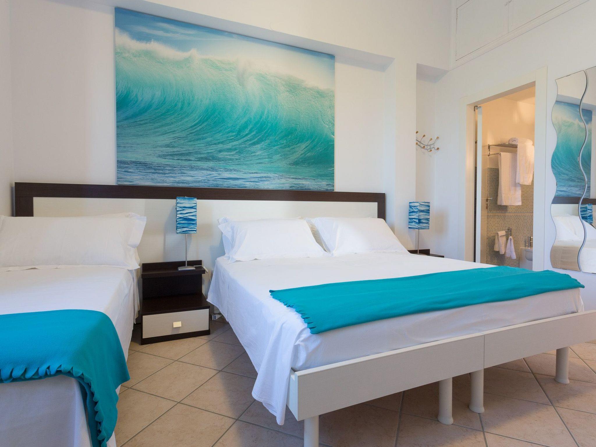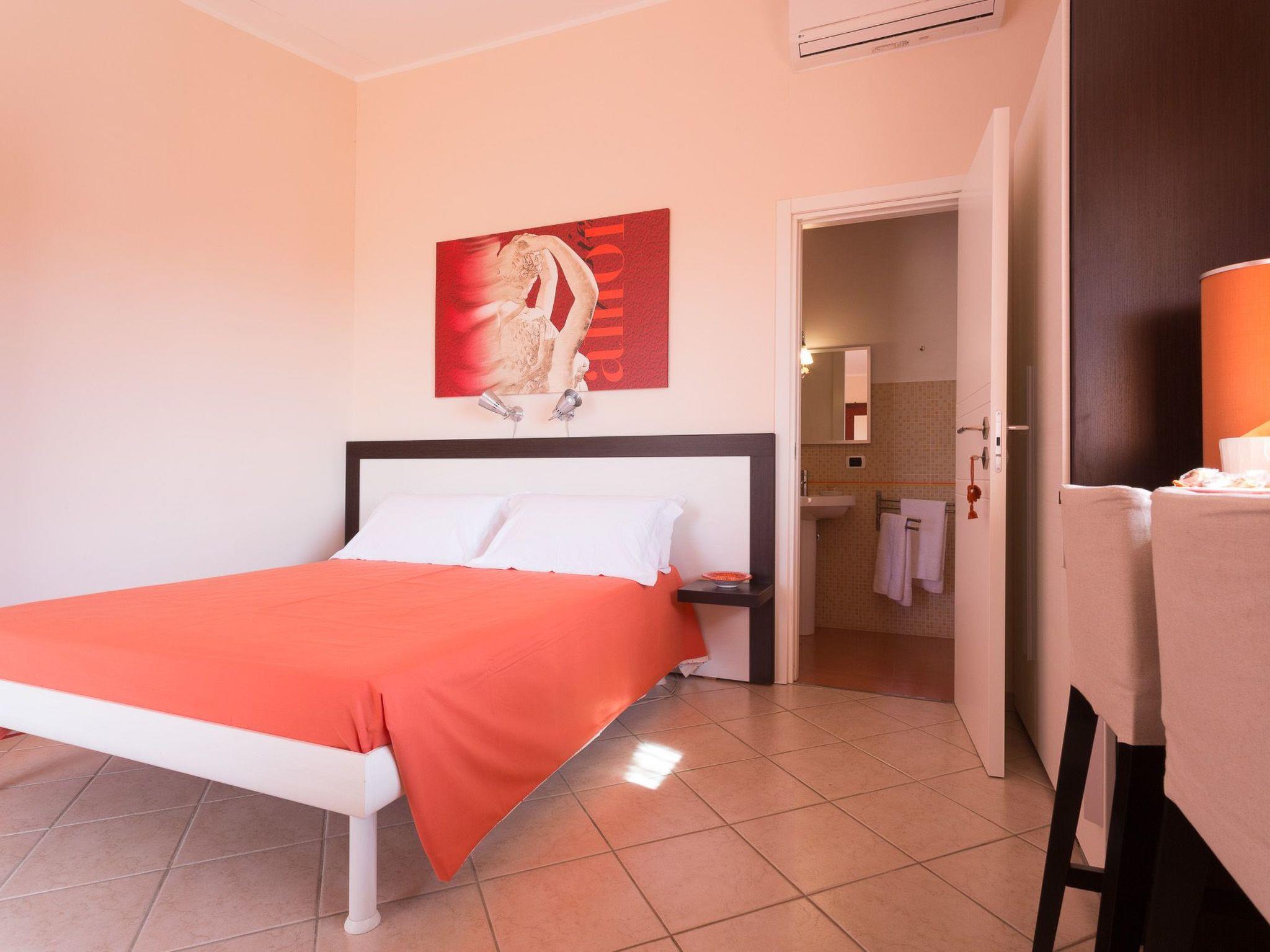 The orange room is very large and has a double bed and a sofa bed that can extend to become a comfortable bunk bed if necessary. The orange room also has a separate entrance and overlooks the furnished terrace.