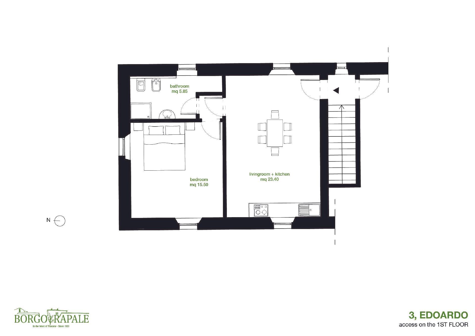 Borgo Rapale is located in the heart of Chianti, where vineyards and family-run wine cellars open their doors for exclusive tastings. Right next to Borgo Rapale, in the countryside that produces the best Florentine steak, more than ten restaurants are within a 10-minute drive, serving authentic, non-touristy flavours handed down from generation to generation. The recently renovated natural hot springs of Rapolano, with beauty treatments and thermal pools, are only 20 minutes away.