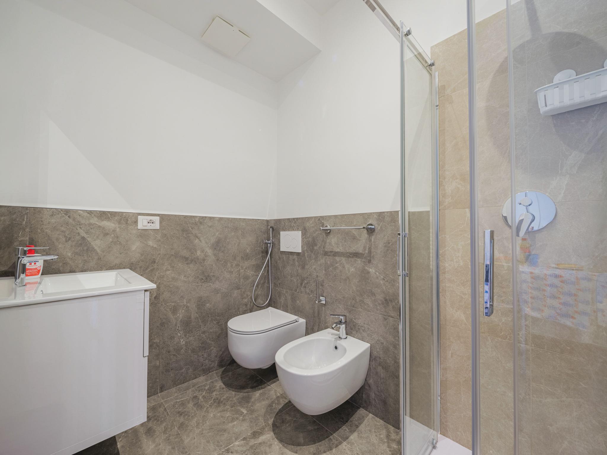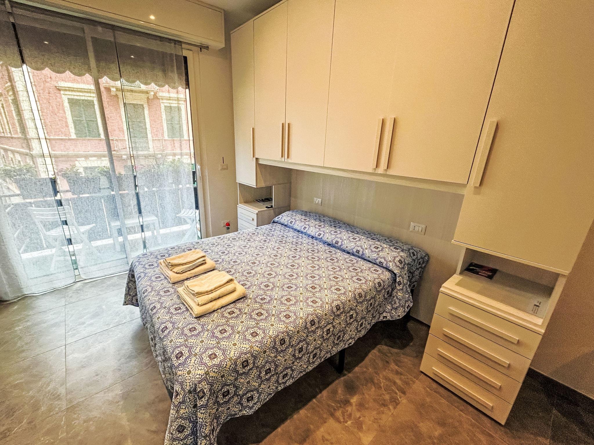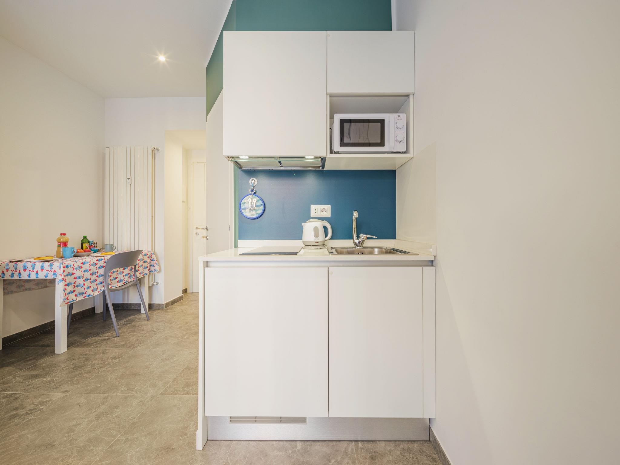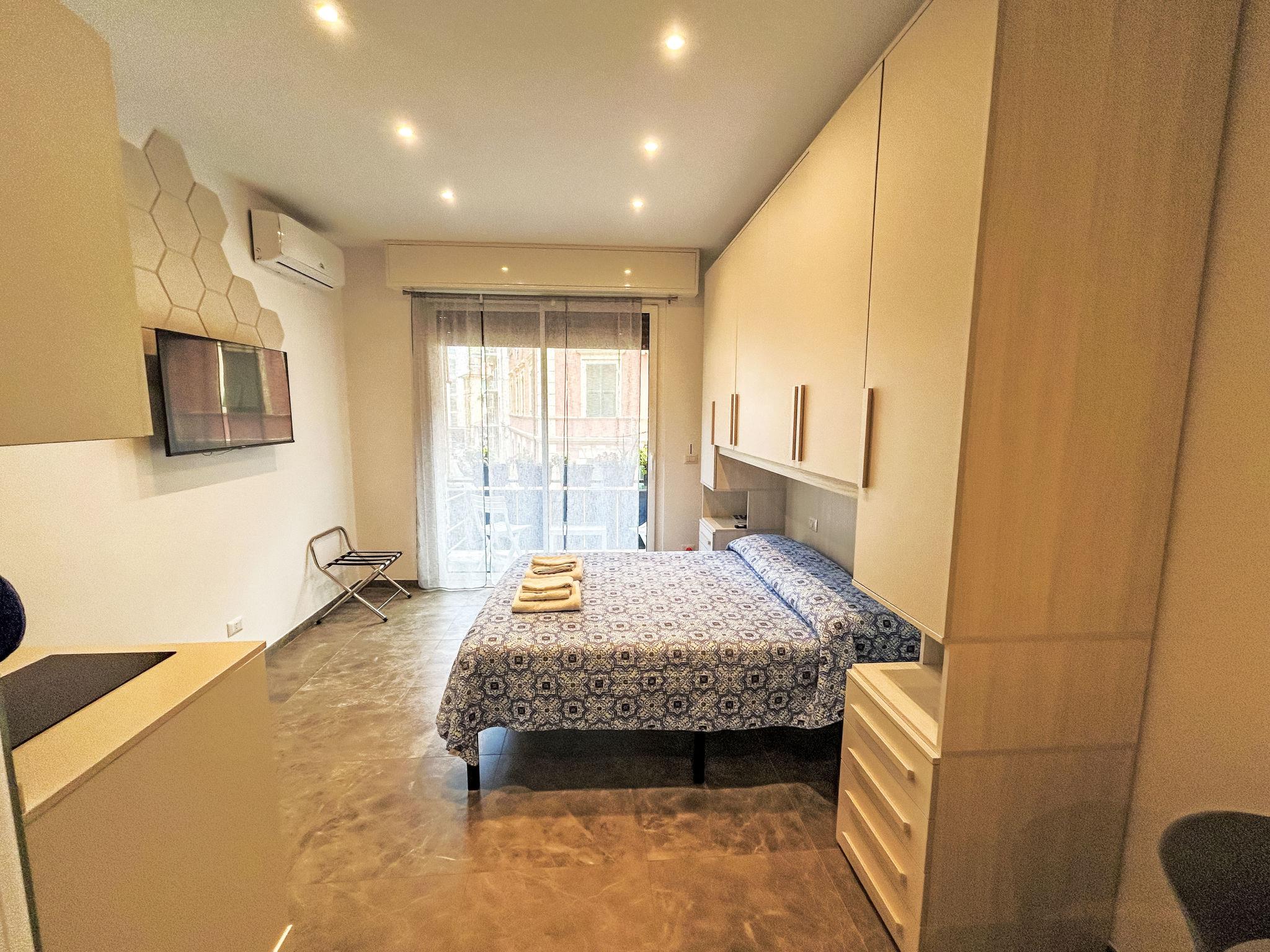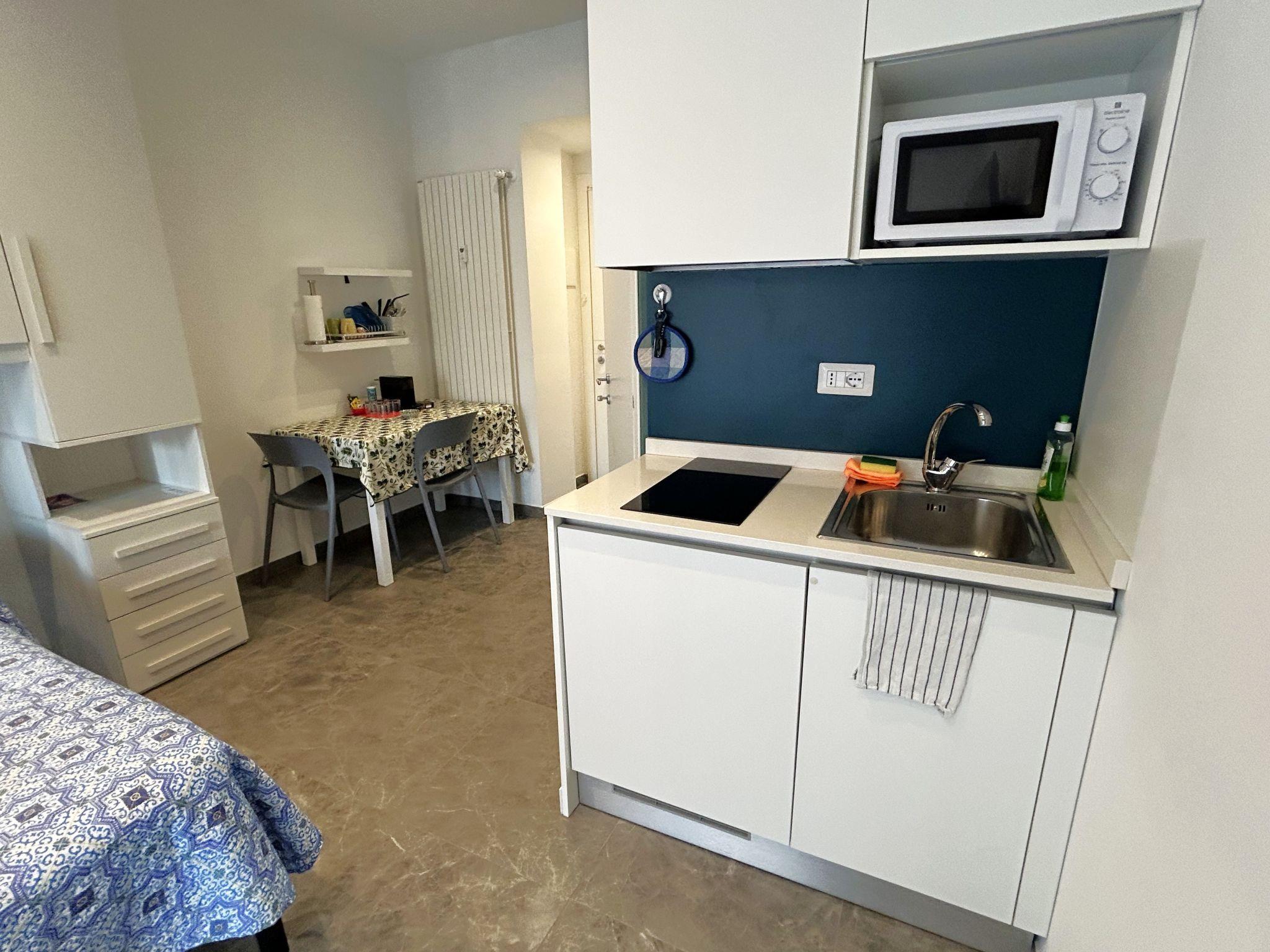 "Blu", 1-room studio 22 m2 on 2nd floor. Fully renovated in 2023, practical and modern furnishings: living/sleeping room with 1 double bed (140 cm, length 190 cm), TV and electric shutters. Small kitchenette (2 induction hot plates, kettle, microwave, electric coffee machine). Shower/bidet/WC. Air-conditioning, forced-air heating. Small balcony. Facilities: hair dryer. Internet (WiFi, free). Please note: fridge without freezer. Smoke alarm. IT010046C2USSHRFCZ