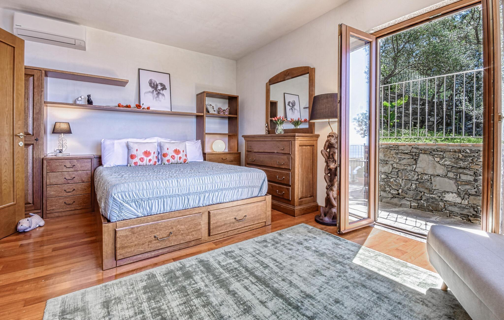 Detta vackra semesterhus nära Recco är fördelat på två våningar och lovar en semester full av komfort och elegans. Den smakfulla inredningen skapar en varm och inbjudande atmosfär som får dig att känna dig som hemma. Njut av de kärleksfullt inredda rummen och upptäck ditt favoritrum.