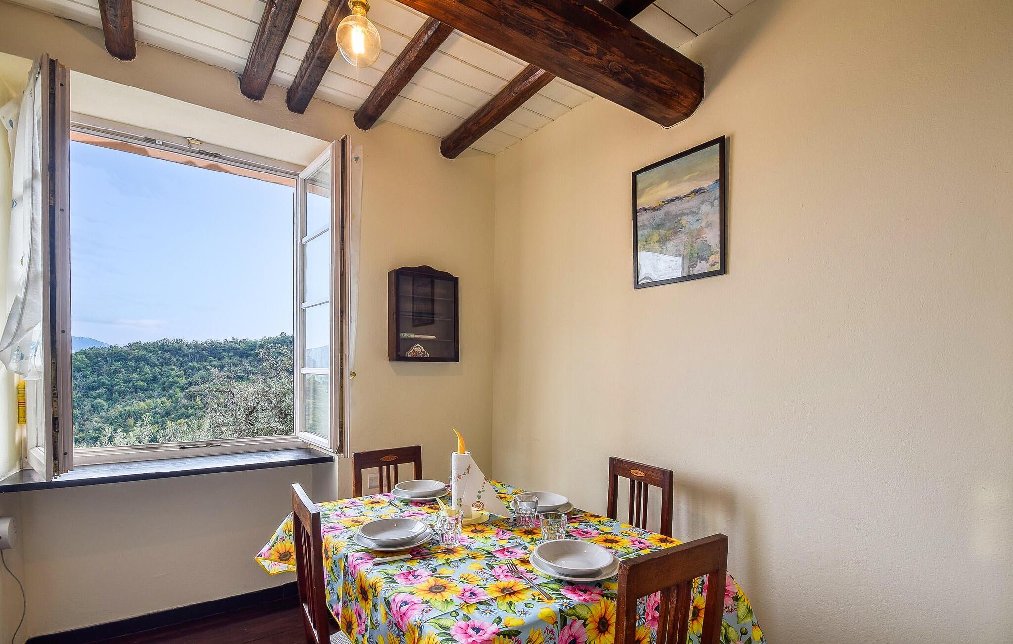 En privat patioträdgård med fantastisk utsikt inbjuder dig att äta utomhus. Den gemensamma poolen erbjuder en idealisk möjlighet att svalka sig och njuta av den liguriska solen. Börja dagen med ett dopp i det svala vattnet eller koppla av med en god bok vid poolen.