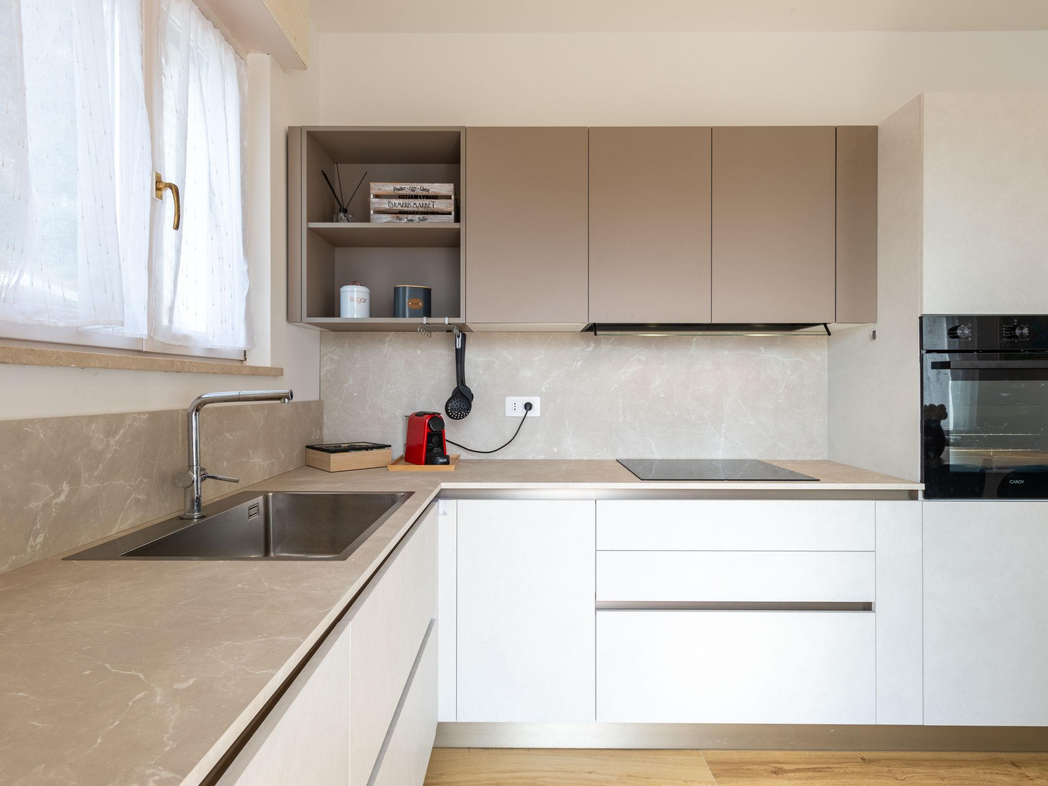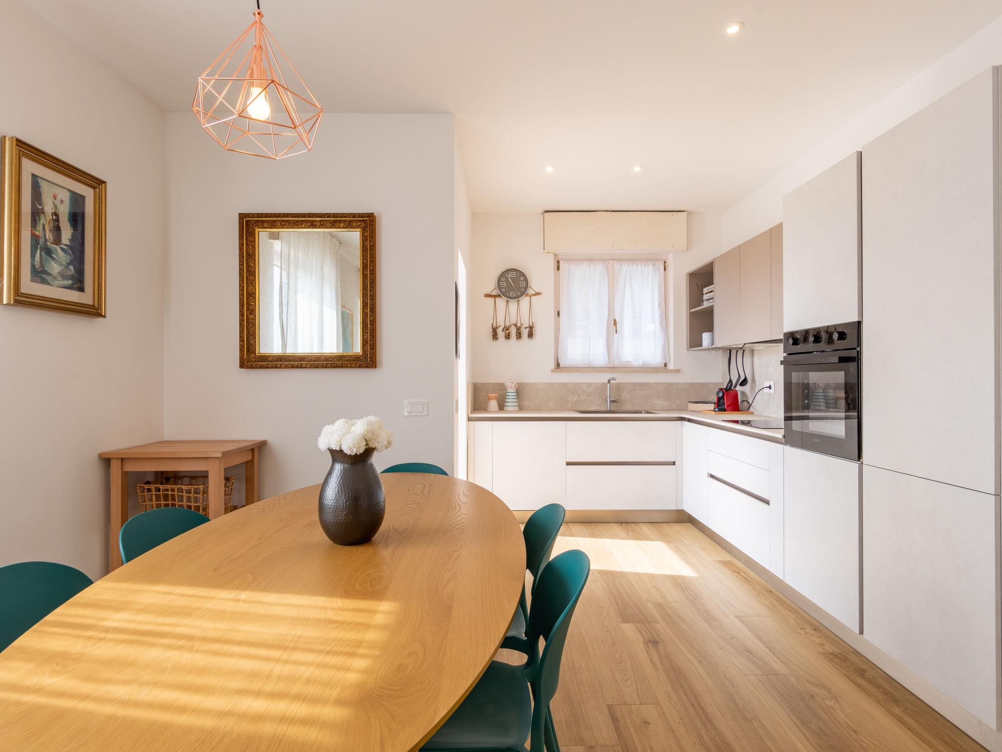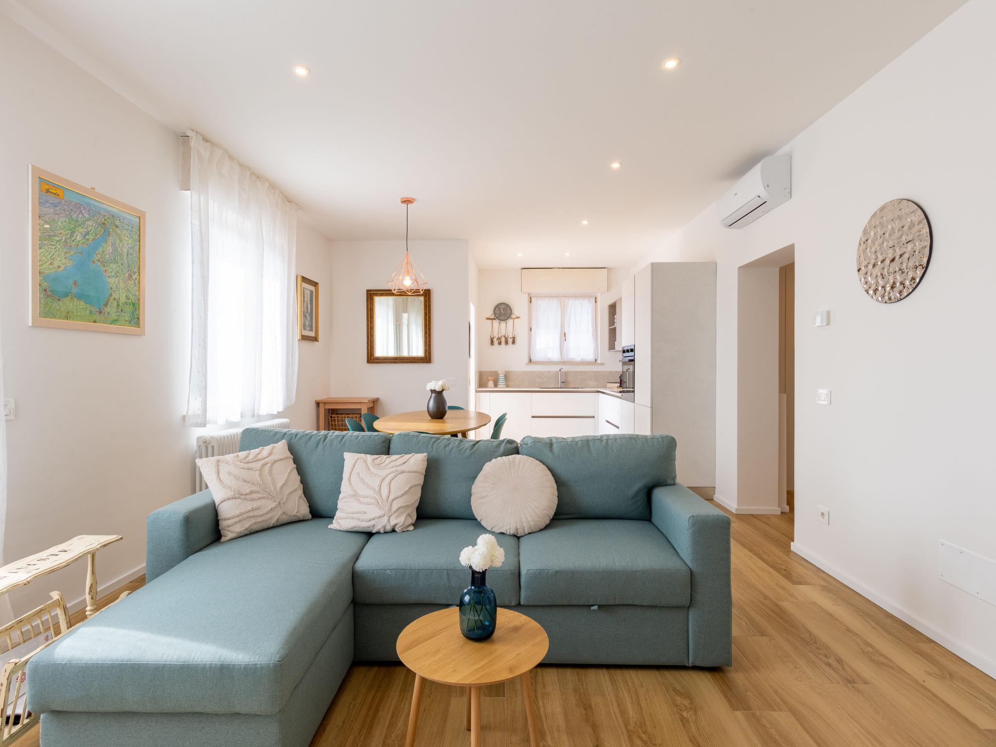 "Lago di Luce", 3-room apartment 90 m2 on 2nd floor. Fully renovated in 2026, modern and cosy furnishings: living/dining room with 1 double sofabed and TV. Exit to the terrace. 2 double bedrooms, each room with 2 double beds. Kitchen (oven, dishwasher, 4 induction hot plates, toaster, kettle, microwave, freezer, electric coffee machine). Exit to the terrace. Shower/bidet/WC. Heating, air-conditioning. Heating available only from 15.11. to 30.04. Wooden floors. Small terrace. Sitting area. Panoramic view of the lake and the mountains. Facilities: washing machine, iron, hair dryer. Internet (WiFi, free). Parking (fenced 1 car). Please note: non-smokers only. Fire extinguisher, no lift. IT022153C24T6Y6ZQE