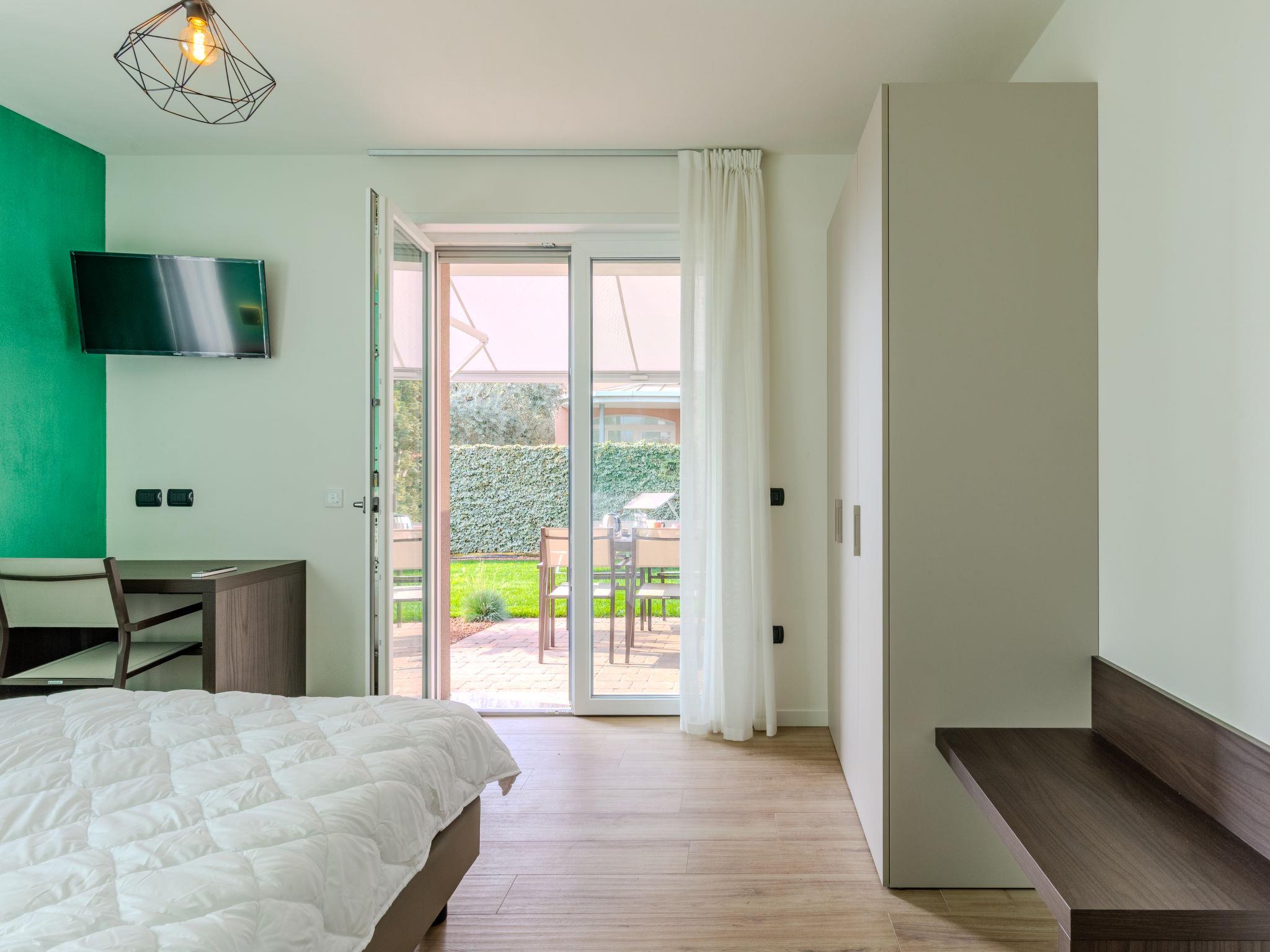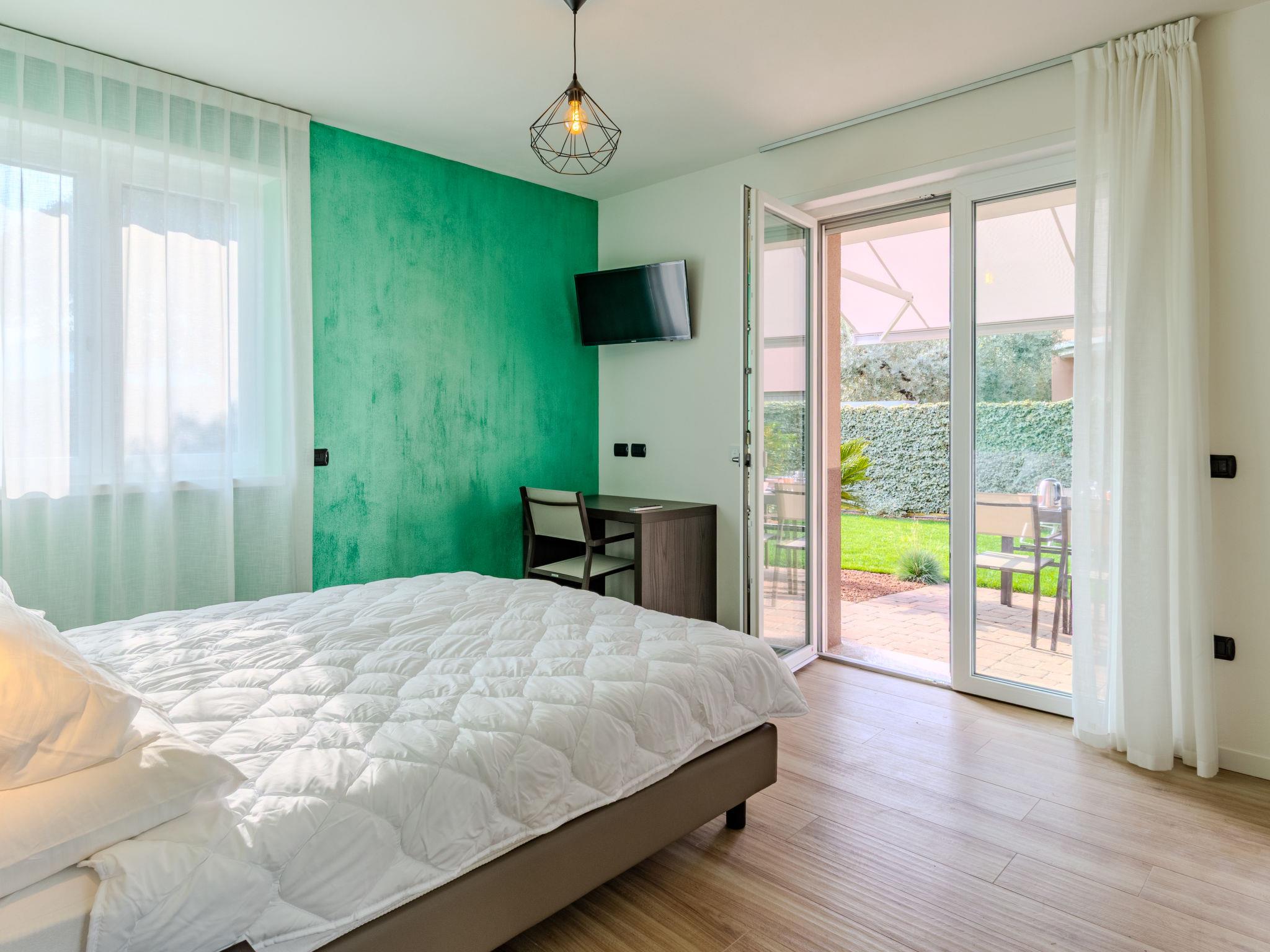 "Garda Oasis and Horizon", 5-room house 116 m2, on the ground floor, south-east facing position. Object suitable for 8 adults. Spacious and bright, fully renovated in 2025, very modern and cosy furnishings: living room with satellite TV. Exit to the garden. 1 double bedroom with 1 double bed and TV. 1 room with 2 beds. Kitchen (dishwasher, 4 induction hot plates, toaster, kettle, microwave, freezer, electric coffee machine) with dining table. Exit to the garden. Shower/bidet/WC. Air-conditioning, floor heating. Heating available only from 15.11. to 30.04. Upper floor: 1 double bedroom with 1 double bed and TV. Exit to the terrace. 1 room with 2 beds. Shower/WC. Air-conditioning, floor heating. Heating available only from 15.11. to 30.04. Wooden floors. Balcony, large terrace, large garden 100 m2, south facing position and, east facing position. Terrace furniture, barbecue, deck chairs (4), sitting area. Very beautiful view of the mountains and the countryside. Facilities: safe, baby cot for up to 2 year olds, hair dryer. Internet (WiFi, free). Parking (fenced 2 cars), garage on the property (1 car). E-charging station. Please note: non-smokers only. Fire extinguisher. No internal connecting door between the separated properties. IT022153B4W1OPZ59S,IT022153B4YXHS7TTA