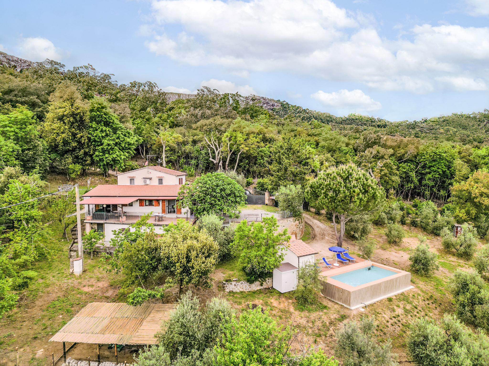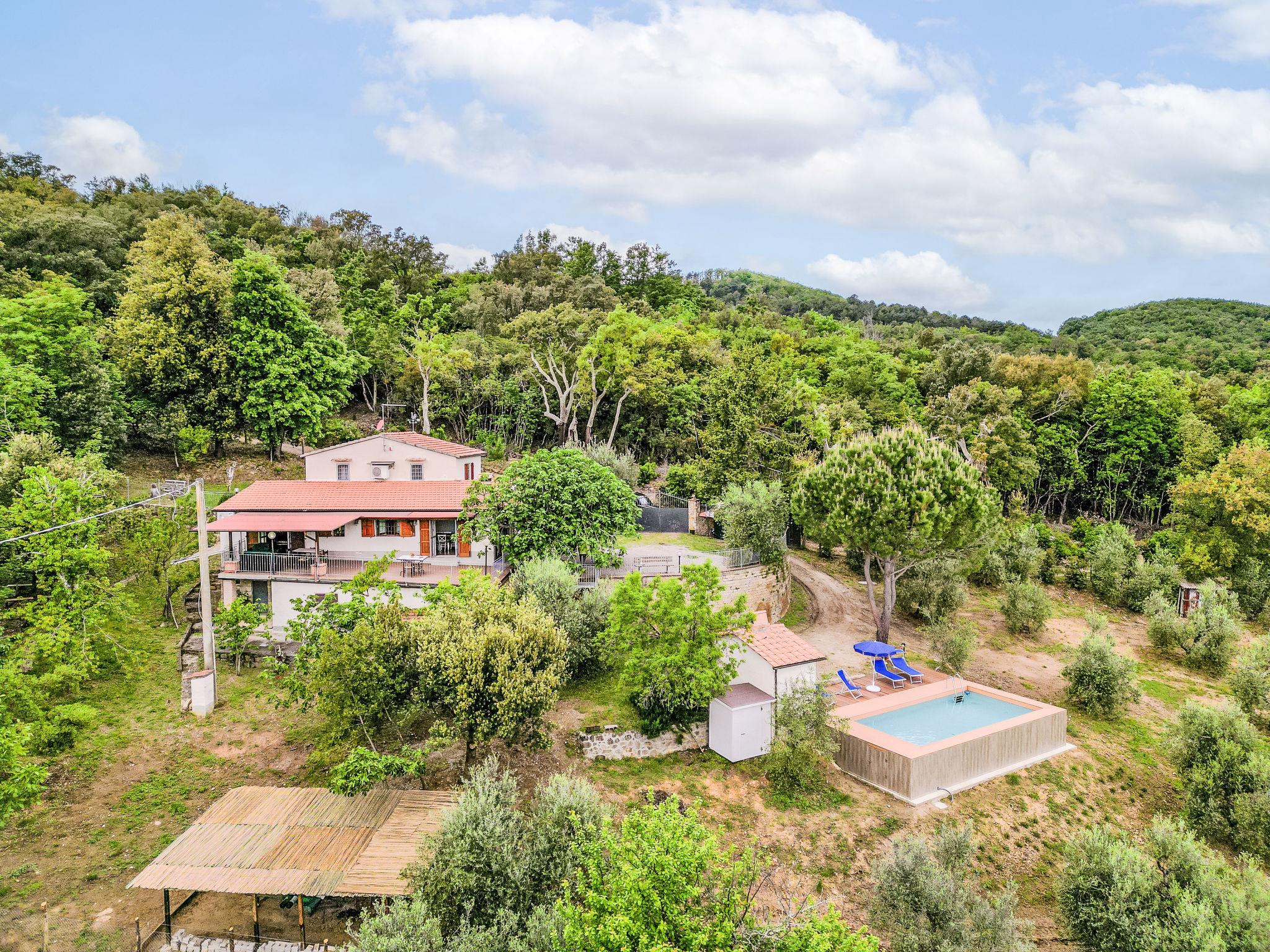 Rustic house "Carla", 2 storeys, surrounded by trees and fields. 1.5 km from the centre of Roccastrada, in a secluded, quiet position, 20 m from the edge of the forest, 43 km from the sea, 43 km from the beach, in the woods. Private: property 1'000 m2 (fenced), terraced garden, swimming pool (9 x 4 m, depth 120 cm, seasonal availability: 15.May. - 15.Oct.). Outdoor shower, garden furniture, barbecue. 350 m long bumpy motor access (via unmade road). Parking at the house. Shop 1.5 km, supermarket 2 km, restaurant 1.5 km, bar 1.5 km, bus stop "Le Pescine" 500 m, sandy beach "Follonica" 43 km, thermal baths "Calidario - Venturina" 60 km.