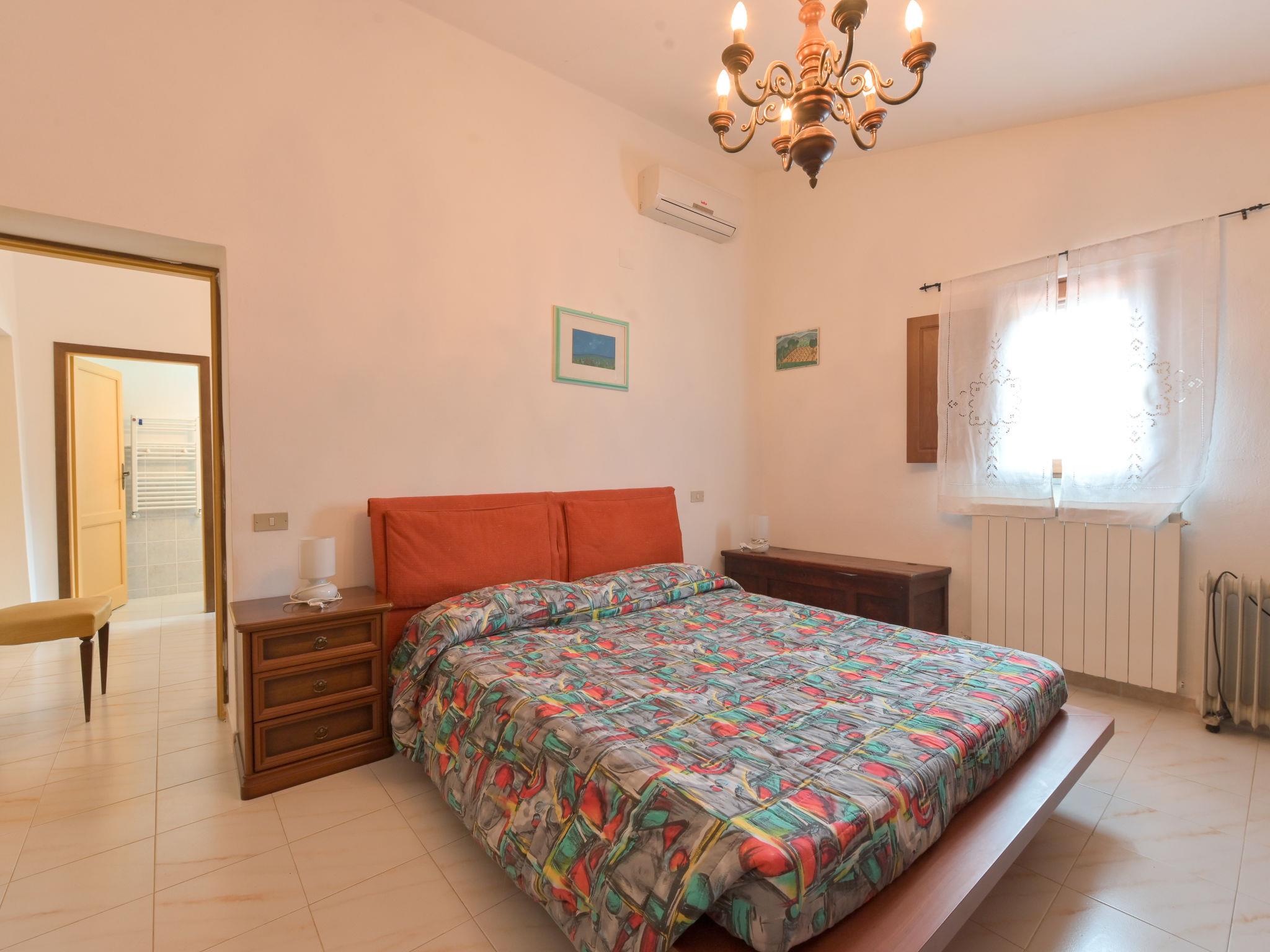 5-room house 150 m2 on 2 levels. Spacious, rustic furnishings: living/dining room with open-hearth fireplace, TV and air conditioning. Exit to the terrace. 1 double bedroom with air conditioning. Exit to the terrace. 1 room with 1 french bed (120 cm). 1 double bedroom. Open kitchen (oven, dishwasher, 4 gas rings, electric coffee machine) with wood-burning stove. Exit to the terrace. 2 showers/bidet/WC. Upper floor: 1 double bedroom with air conditioning. Walk-through room with 1 double bed and air conditioning. Shower/bidet/WC. Heating available only from 15.10. to 15.04. Large terrace partly roofed, patio. Terrace furniture, barbecue, deck chairs. Facilities: washing machine, mosquito net. Internet (WiFi, free). Parking at the house. Please note: non-smokers only. Maximum 2 pets/ dogs allowed. Private entrance, smoke alarm, fire extinguisher. IT053021C2OBCCF9XY