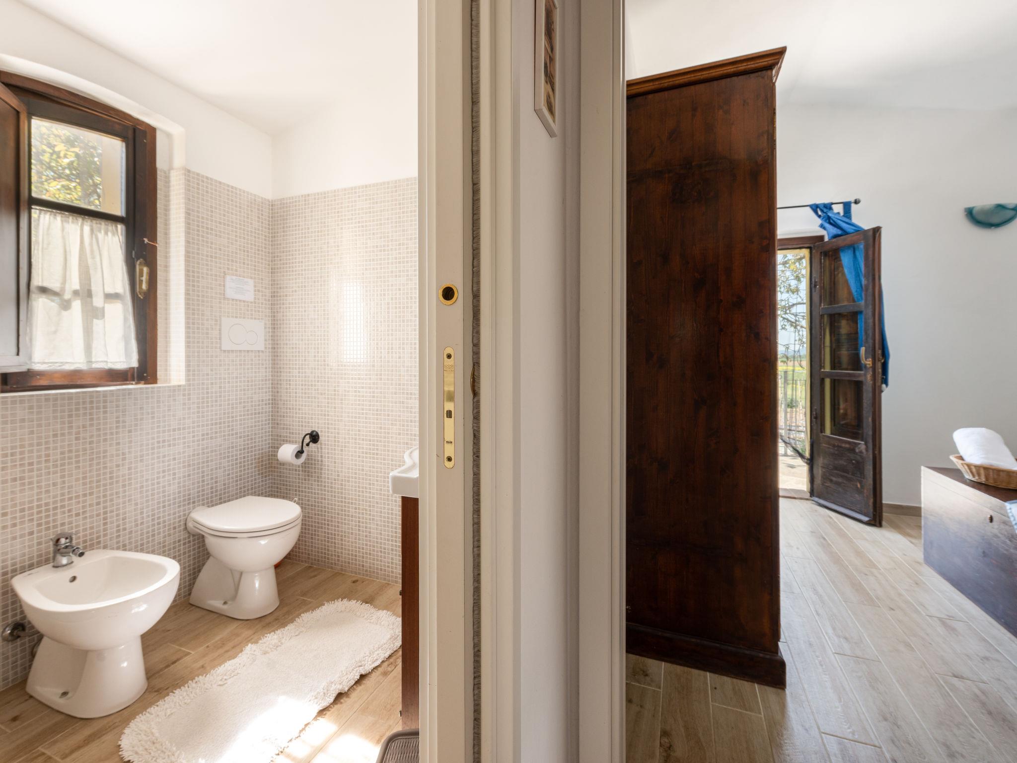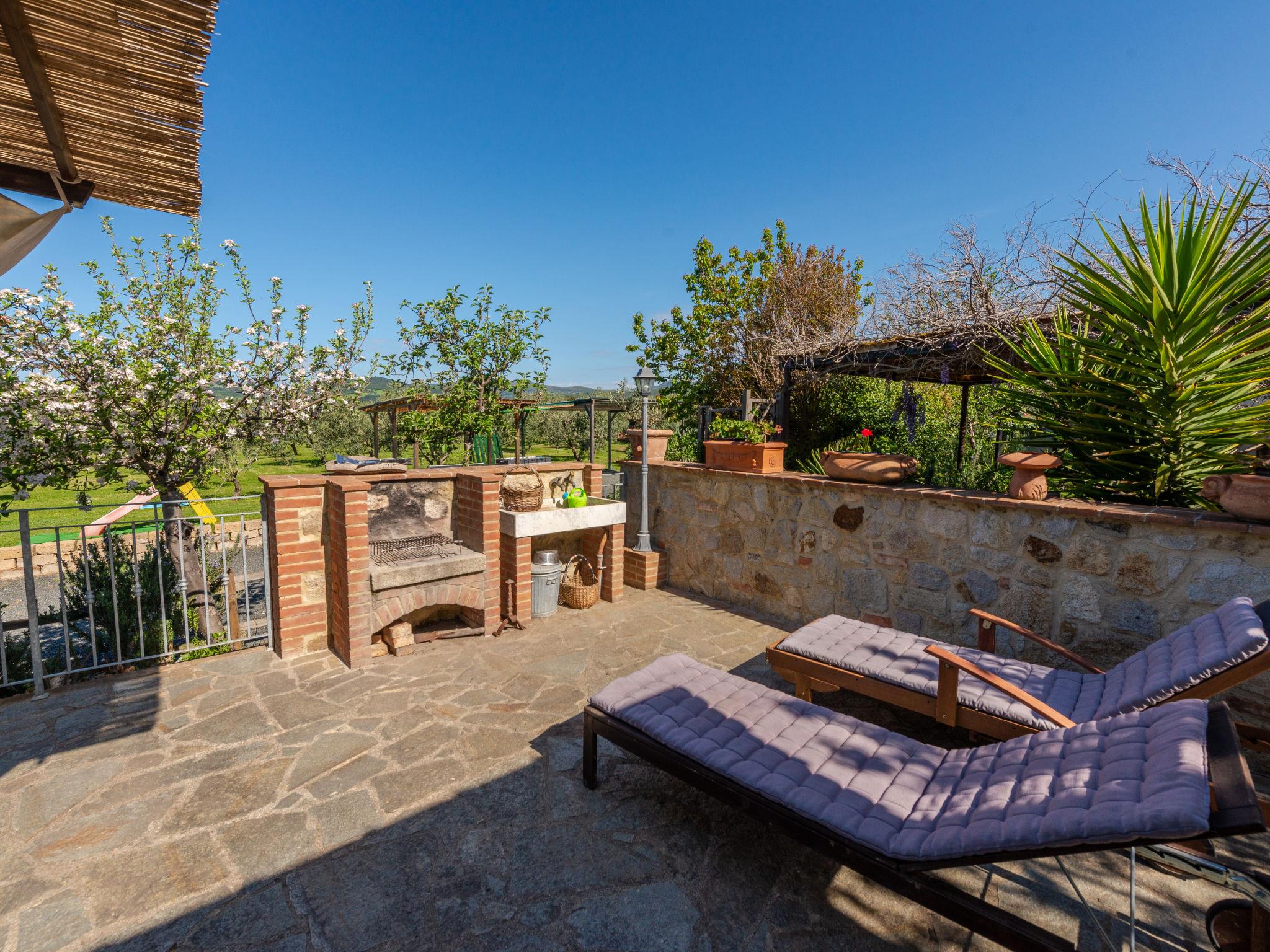 Beautiful country house "Bellosguardo", surrounded by trees and fields. 9 km from the centre of Roccastrada, 5 km from the centre of Montemassi, 35 km from the centre of Follonica, 35 km from the sea. For shared use: property 10 ha, orchard, swimming pool fenced (5 x 3 m, depth 120 cm, seasonal availability: 15.May. - 30.Sep.). Private: table tennis, volleyball court (swing). In the house: table football, heating available only from 12.Oct. - 26.Apr.. Parking on the premises. Shop 5 km, bus stop 500 m, railway station "Montepescali" 15 km, sandy beach 35 km. Golf course (18 hole) 26 km. Nearby attractions: Grosseto 28 km. Hiking paths: Mountain-bike 4 km. On the estate animal husbandry. Local sale of farm products. Please note: the owner lives on the same property. The owner has a dog.