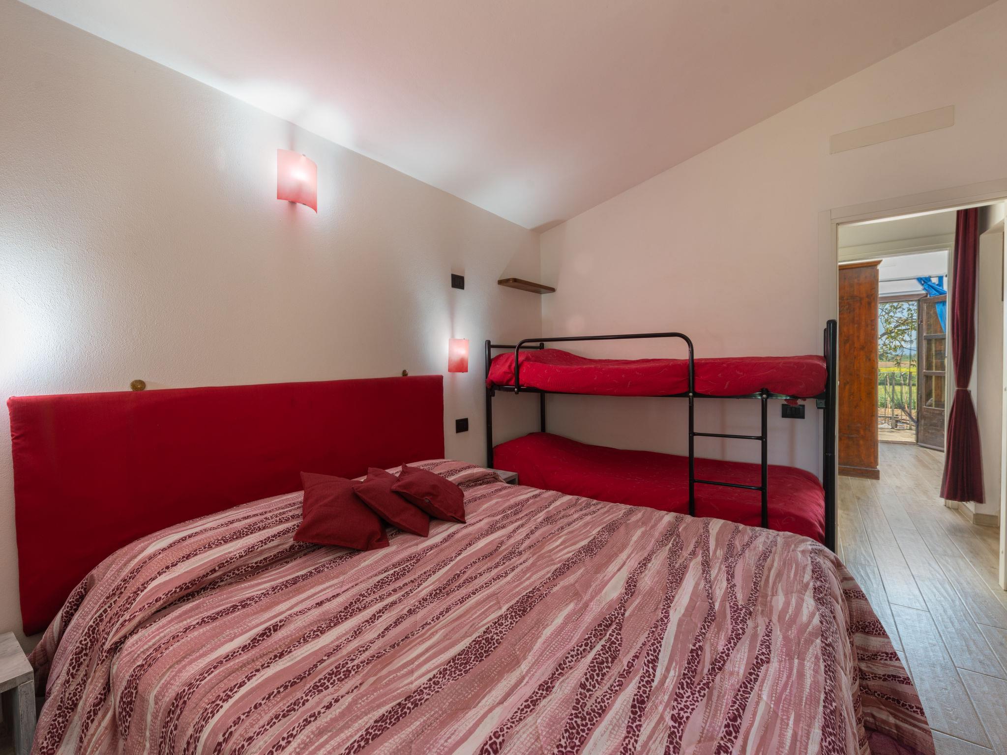 "Bellosguardo", 3-room house 60 m2. Modern furnishings: living/sleeping room with 1 sofabed, open-hearth fireplace, dining table and satellite TV. Exit to the terrace. 1 room with 1 x 2 bunk beds, 1 french bed (160 cm). 1 room with 1 french bed (160 cm), bath/bidet/WC. Exit to the terrace. Open kitchen (oven, dishwasher, 4 gas rings, toaster, freezer, electric coffee machine). Shower/bidet/WC. Gas heating, air-conditioning. Heating available only from 12.10. to 26.04. Terrace 90 m2. Terrace furniture, barbecue, deck chairs, box-room. Panoramic view. Facilities: washing machine, mosquito net, children's high chair, baby cot. Internet (WiFi, free). Please note: non-smokers only. Maximum 2 pets/ dogs allowed. Bed layout is flexible. There are more sleeping options available than the maximum number of people allowed which may, however, not be exceeded. IT053021B5TKLGMTS4