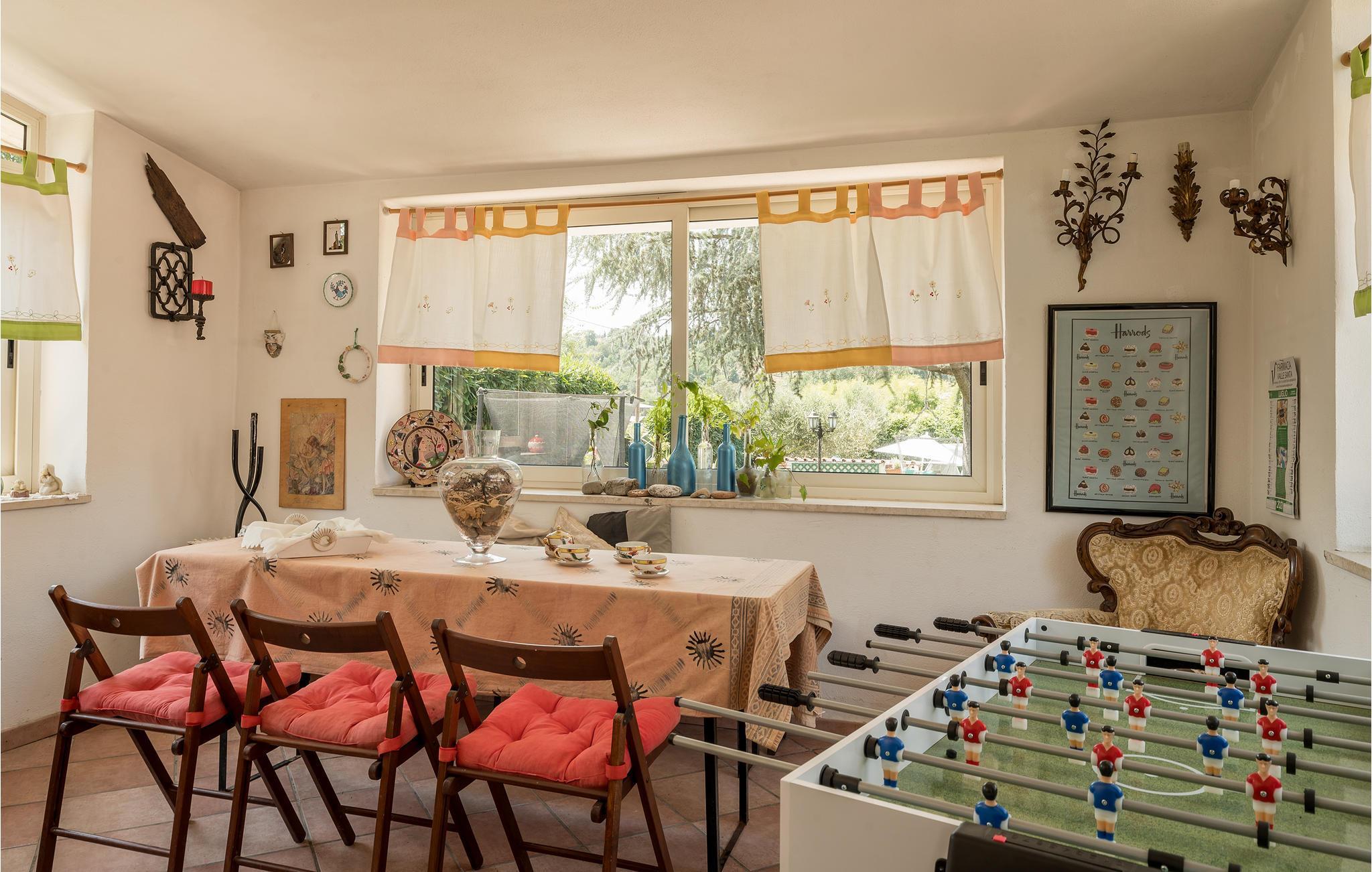 Denna vackra och rymliga semesterbostad på landet ligger bara 16 km från Braccianosjön och 23 km från centrum av den charmiga staden Rom. I den välskötta trädgården finns avkopplande hörn med hängmattor i skuggan av träden, ett vackert uthus med kök, spis, grill/kamin och vedeldad spis för matlagning, perfekt för dina måltider utomhus. Huset har myggnät på alla fönster, rummet på 1:a våningen har luftkonditionering förutom en stor terrass/solarium. Parkering på den helt inhägnade fastigheten. Boendet erbjuder en mångfacetterad semester, det är idealiskt för barnfamiljer och husdjur som kan koppla av fritt i trädgården eller i poolen. För dem som älskar havet kan du på mindre än en halvtimme nå sandstranden (Fregene 20 km), sjön (Anguillara 16 km). För golfälskare finns det en 18-hålsbana bara 18 km bort. Den unika staden Rom erbjuder inte bara kultur utan också mycket goda shoppingmöjligheter.