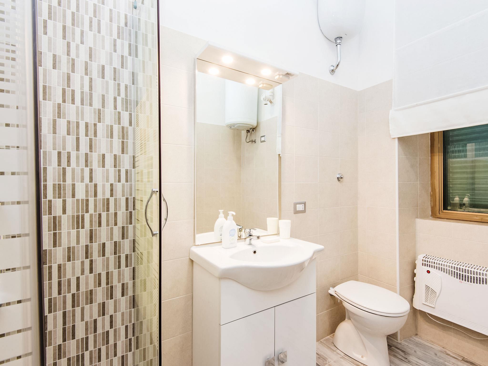 3-room apartment 90 m2, on the upper ground floor. Spacious, partly renovated in 2020, practical furnishings: large entrance hall. Living/dining room with 1 double sofabed, digital TV and flat screen. 1 double bedroom. 1 room with 2 beds and 1 sofabed. Kitchenette (oven, dishwasher, 4 induction hot plates, microwave, freezer). 2 showers/bidet/WC. Electric heating, air-conditioning. Facilities: washing machine, safe, iron, hair dryer. Internet (WiFi, free). Please note: non-smokers only. Maximum 1 small pet/ dog allowed. The beds in the double room can be separated if requested in advance. Check in after 21.00h extra 50 euro. IT058091C2SJRK8PR8