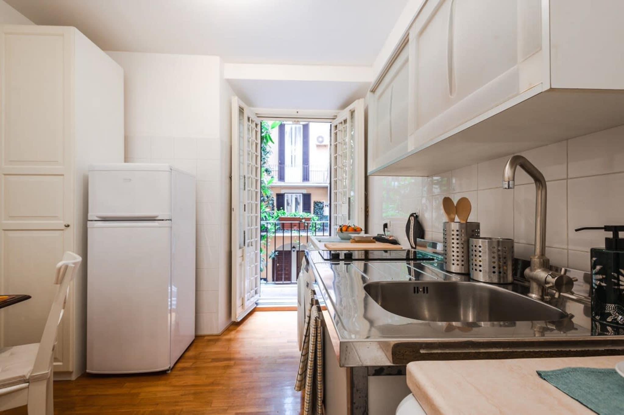 Denna eleganta lägenhet i hjärtat av Roms historiska centrum erbjuder den perfekta balansen mellan komfort, funktionalitet och charm för både fritids- och arbetsresenärer. Belägen i en säker byggnad med concierge-service har den en privat hiss som leder direkt till entrén, vilket ger en exklusiv och lugn tillflyktsort. Inuti är utrymmet fyllt av ljus och karaktär och erbjuder två välutrustade sovrum, två eleganta badrum med duschkabin och ett dedikerat hemmakontor – perfekt för digitala nomader eller längre vistelser. Med luftkonditionering i hela lägenheten, höghastighets-Wi-Fi och genomtänkta bekvämligheter som tvättmaskin, torktumlare och diskmaskin har alla bekvämligheter beaktats. Planläggningen är utformad för att vara både praktisk och varm. Det stora sovrummet har en himmelssäng och inbyggda garderober, med en angränsande arbetsyta och extra dagbädd. Det andra sovrummet är lika mångsidigt med en queen size-säng och en enkel dagbädd, vilket enkelt rymmer olika gästarrangemang. Köket är fullt utrustat och inkluderar en pittoresk balkong som öppnar sig mot den fridfulla innergården, där de frodiga magnoliaträden ger en touch av natur och lugn. Denna lägenhet ligger inbäddad på Via della Scrofa, inom gångavstånd från Roms mest ikoniska sevärdheter – Piazza Navona, Pantheon, Spanska trappan med mera. Omgiven av restauranger och historiska gator är läget idealiskt för resenärer som vill uppleva den autentiska rytmen i den eviga staden. Med möjlighet till en privat kock tillgänglig på begäran och komforten i ett bostadshus är detta hem din port till en förfinad och minnesvärd romersk upplevelse.