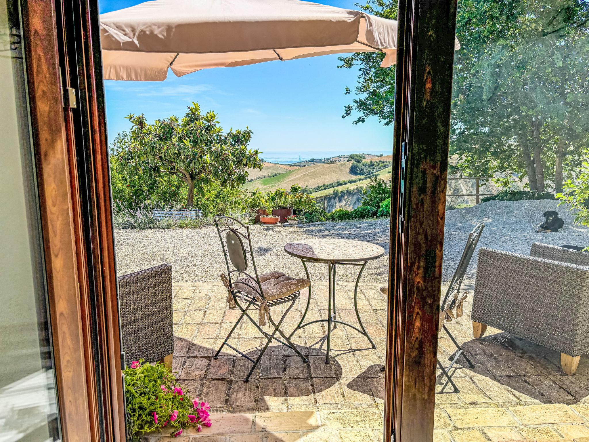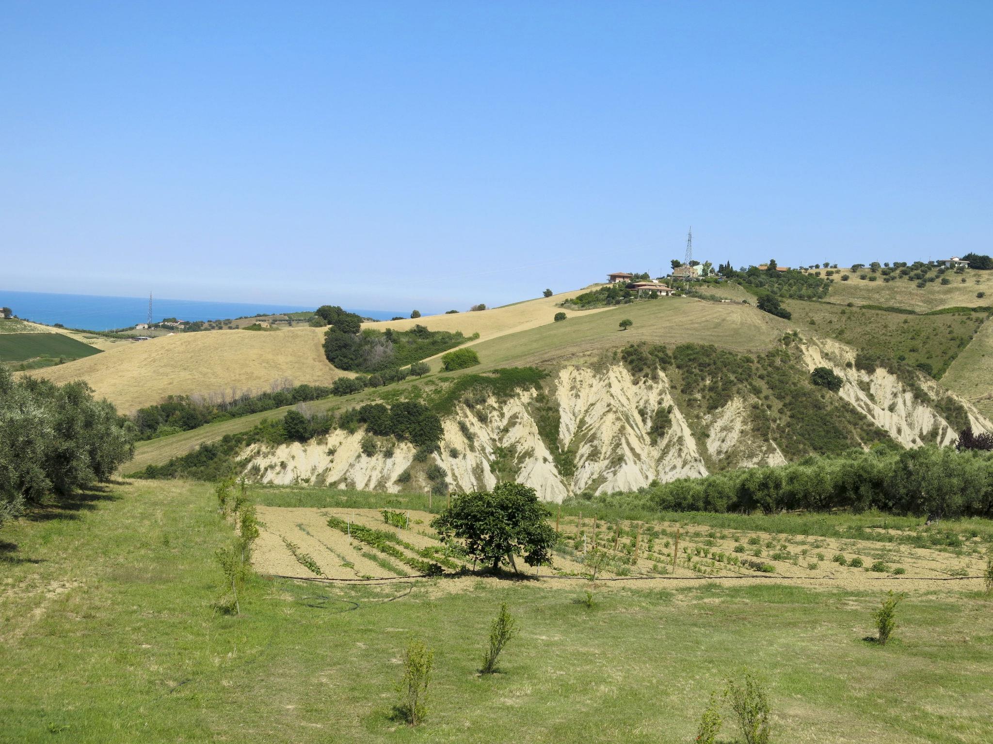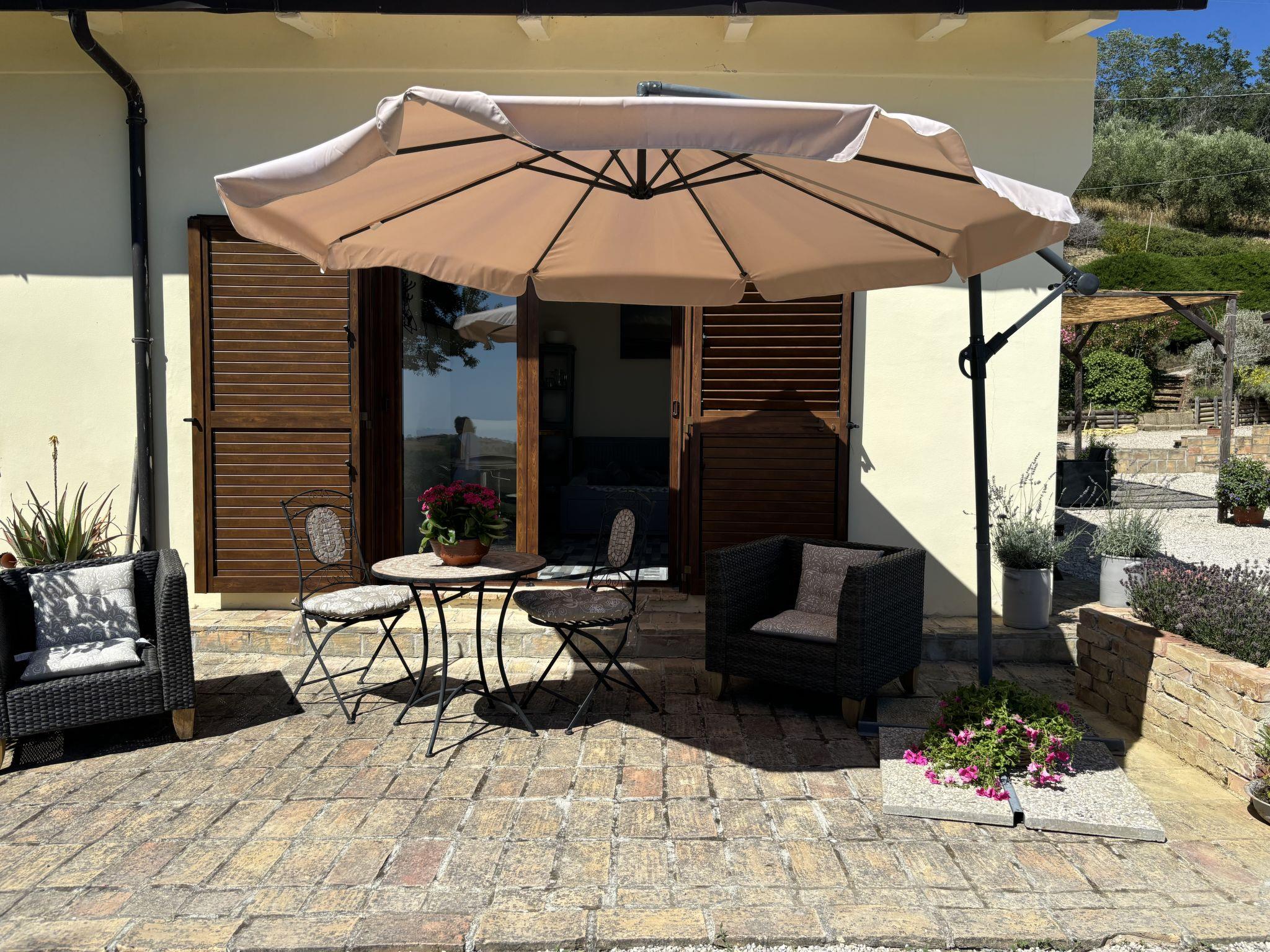Very beautiful, rustic, comfortable country house "Serrani", renovated in 2018, surrounded by meadows and fields. 2 houses in the residence. 4 apartments in the residence. 8 km from the centre of Roseto degli Abruzzi, 13 km from the centre of Giulianova, 17 km from the centre of Pineto, in a secluded, sunny position on a slope, 6 km from the sea, in the countryside. For shared use: natural state property 5 ha, beautiful terraced garden, 5'000 m2 (not fenced) with plants and trees, orchard, lawn for sunbathing, swimming pool (above ground) (10 x 5 m, depth 130 cm, seasonal availability: 01.Jun. - 28.Sep.). Patio, arbour, pergola, garden furniture, barbecue. In the complex: hot tub (extra). Washing machine (for shared use). 100 m long bumpy motor access to the house. Stepped path to the house. Parking on the premises. Shop 1 km, supermarket 8 km, bus stop 500 m, railway station "Roseto degli Abruzzi" 8 km, sandy beach 6 km. Local sale of farm products. Please note: Additional accommodations can be booked.